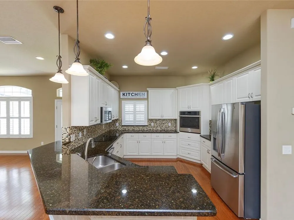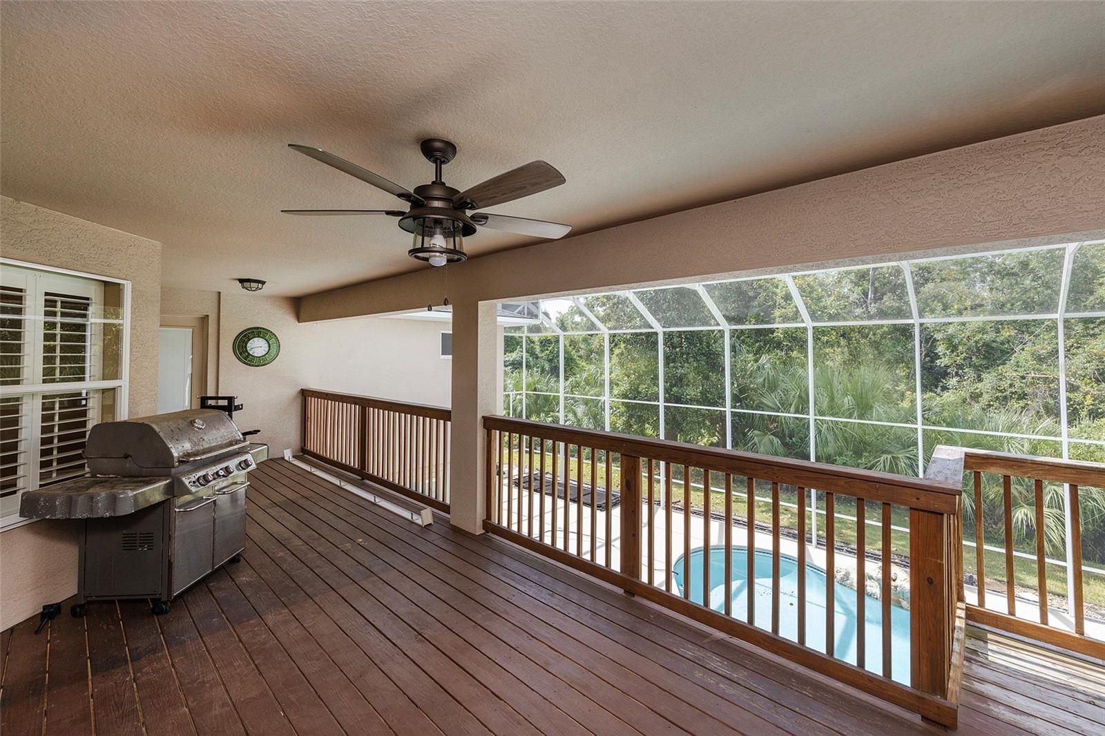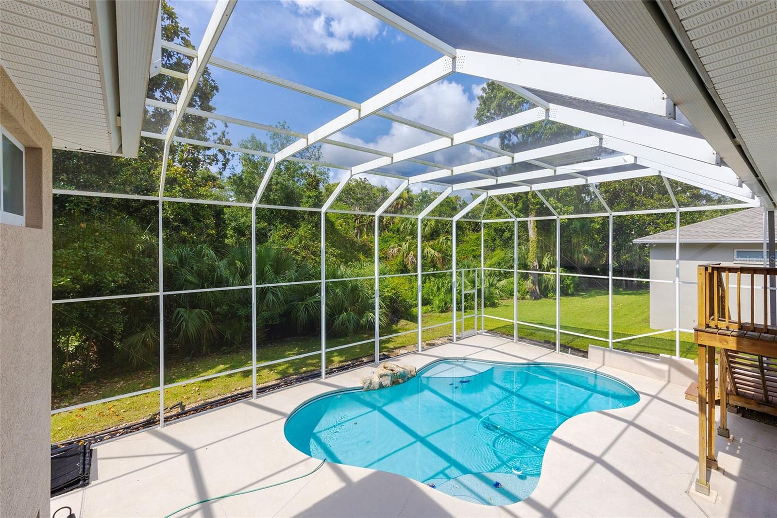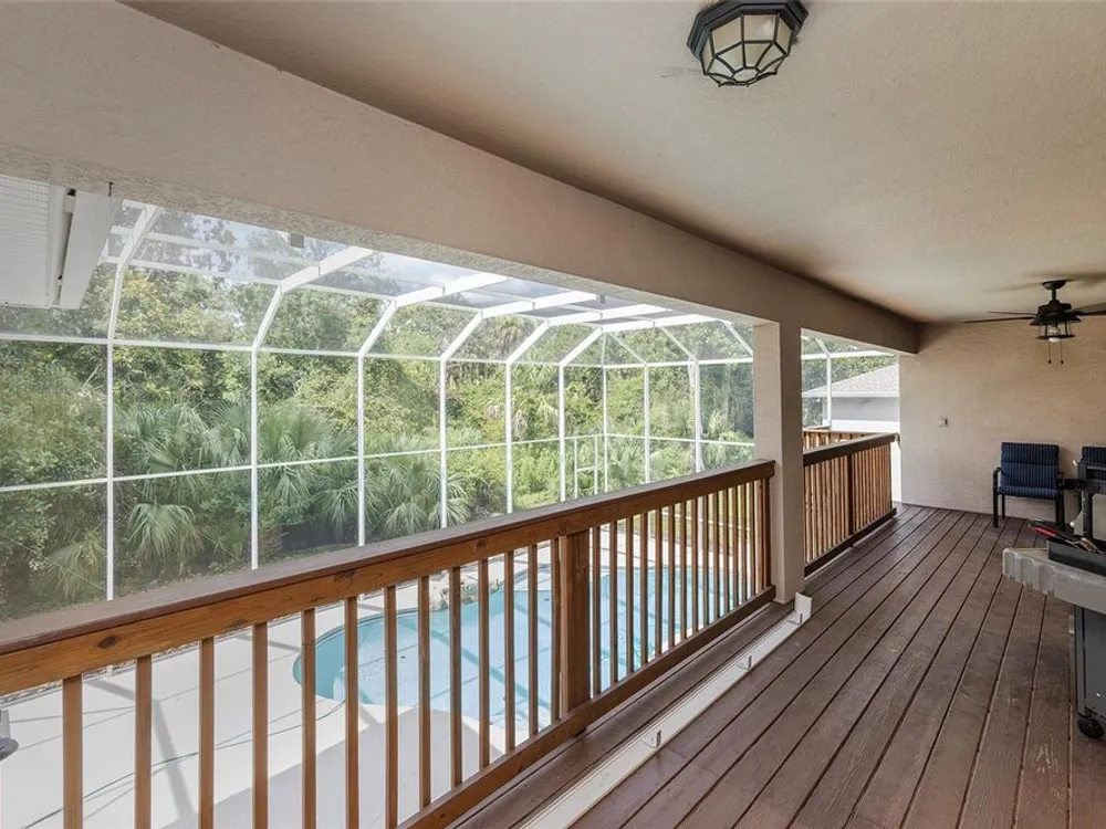 Situated in desirable Summer Trees South on a peaceful lot backing to Spruce Creek, this sprawling swimming pool home is move-in ready and waiting for a new family to enjoy. As you approach the home you will be greeted by a beautiful elevation with vibrant Florida foliage, while inside you will find generous living spaces with high ceilings and an abundance of natural light. Gleaming wood floors and convenient tile run throughout the residence, while the open kitchen boasts granite countertops, 42'' wood cabinetry, and quality stainless steel appliances. Enjoy the oversized, screened, custom swimming pool area, perfect for entertaining year-round. The large primary bedroom features a tray ceiling while in the master bathroom you will find dual vanities and a walk-in shower. The 4th bedroom on the lower level features its own bathroom and living space, and could be used as an in-law suite or private guest quarters. Growing families will love the current public school zoning that includes Sweetwater Elementary, Creekside Middle and Spruce Creek High. Don't miss out on this unique Port Orange home!