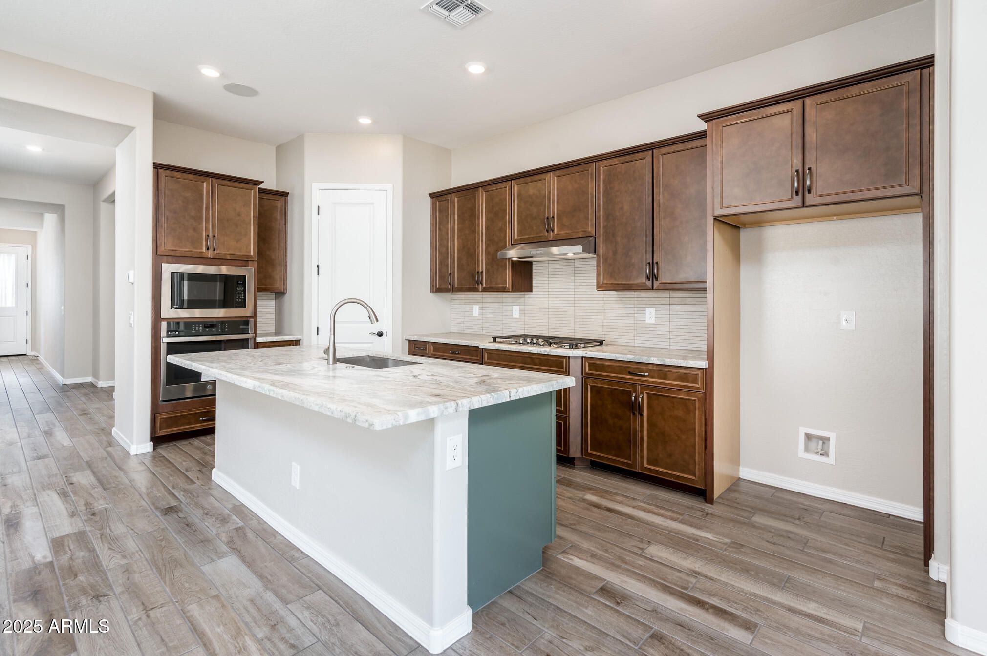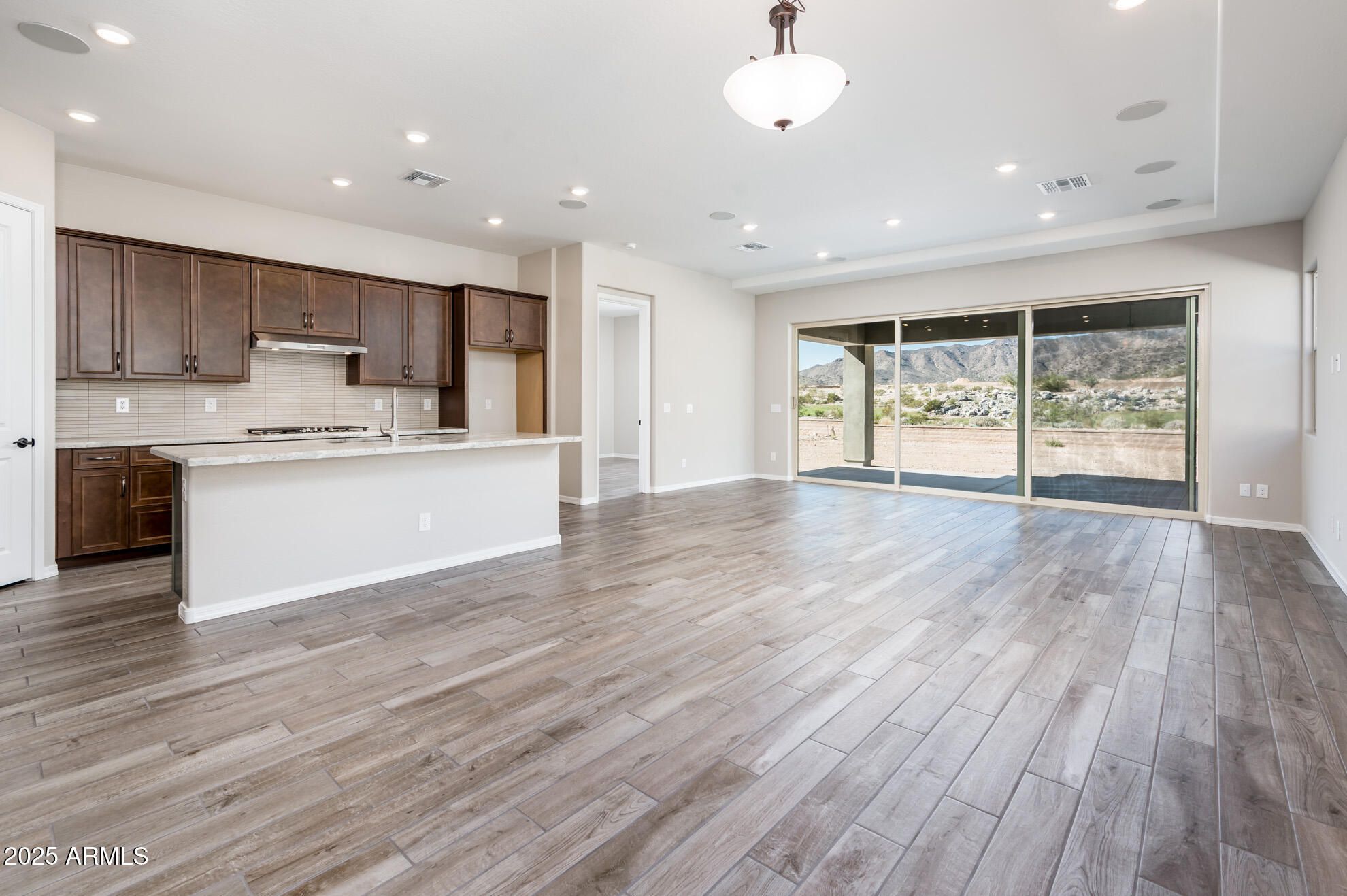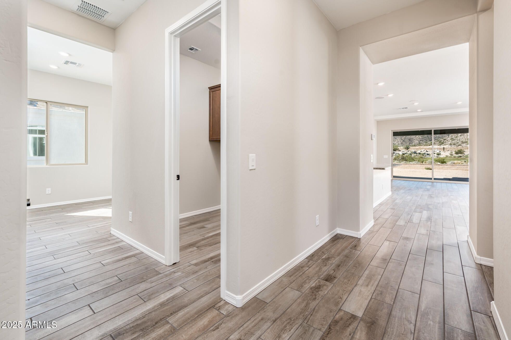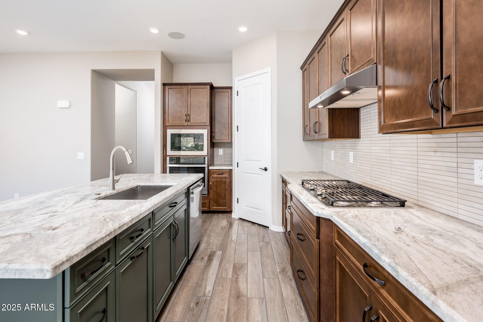 Dramatic mountain, AND golf course VIEWS. This NEWLY BUILT home delivers it all! Located in 55+ Fairways in Victory at Verrado, it offers 3 beds + OFFICE, 2 full bathrooms, 1 half bathroom, and a 2-car garage w/paver driveway. $100,000, in builder upgrades, the interior features tall ceilings, abundant natural light, recessed lighting, neutral palette, and wood-look tile flooring in all the right places. Enjoy the spacious, seamlessly flowing open layout paired with multi-sliding doors that merge the inside & outside activities! The gourmet kitchen boasts quartzite counters, a designer tile backsplash, a pantry, ample cabinetry w/crown molding, an island w/breakfast bar, and high-end SS appliances w/cooktop gas & wall oven. Enter the primary bedroom to find a lavish ensuite with two vanities & a walk-in closet. Secondary bedrooms are adorned with soft carpet. Laundry room contains a sink & cabinetry. You'll love the backyard with a cozy covered patio and STUNNING mountain backdrop, the ideal space for outdoor living! $150,000 lot premium. Fairways in Victory at Verrado offers a vibrant lifestyle with resort-style amenities, including tennis & pickleball courts, scenic walking trails, clubhouse, spa, and a charming vineyard. Residents can enjoy outdoor recreation, social gatherings, and plenty of space to relax, all within a beautifully maintained, active adult community. What's not to like? Make this gem yours!