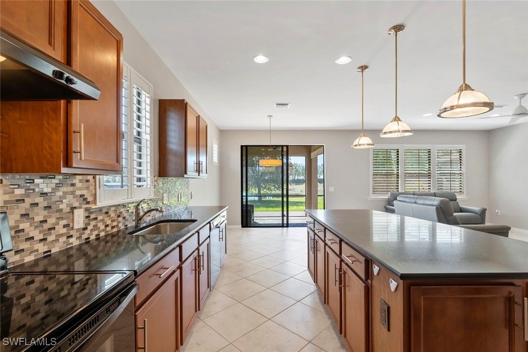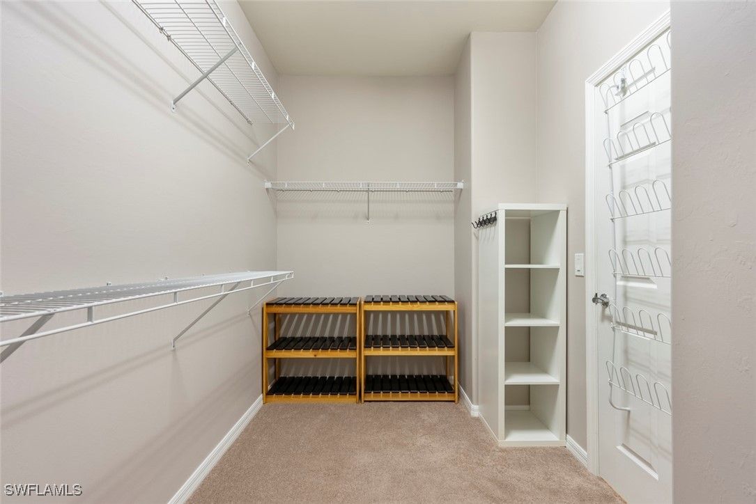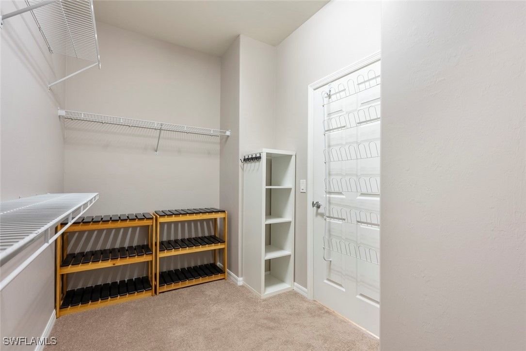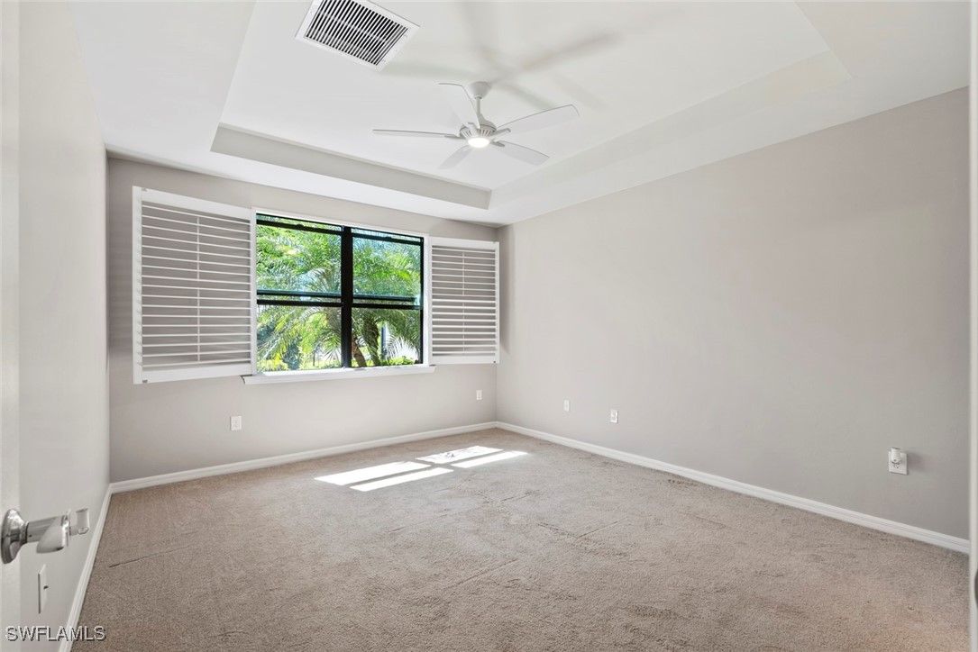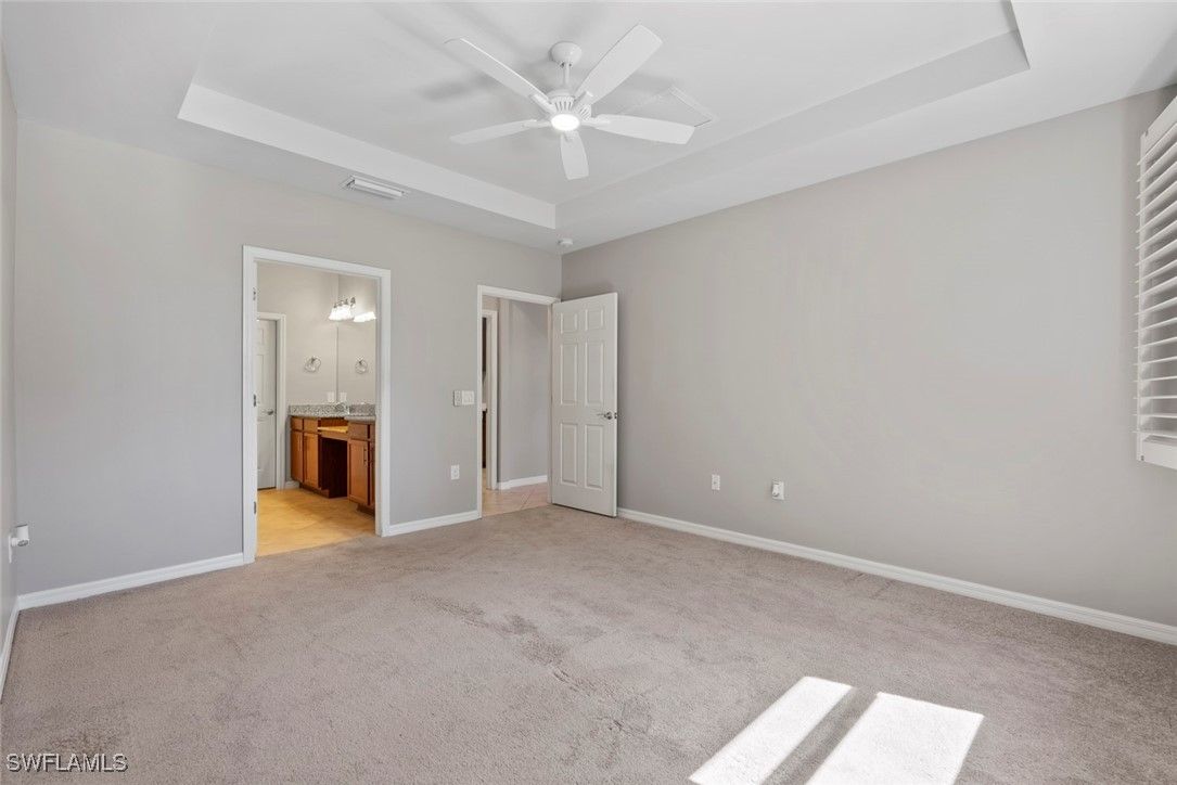 WATER and SUNRISE VIEW - Enjoy serene views of the lake from the comfort of your EXTENDED LANAI. An added feature is a patio outside the lanai and is perfect to put your chairs and watch the breathtaking SUNRISES. This house is located in the highly sought-after 55+ Del Webb Naples community, featuring the popular ABBEYVILLE floor plan with 2 bedrooms, 2 full baths and den. Upgrades include BRAND NEW CARPET - installed 10/25, RECENTLY PAINTED interior walls throughout the home and PLANTATION SHUTTERS on all the windows. A RETRACTABLE SCREEN on the front door will allow you to let in fresh air year round. You will be able to welcome lots of friends and family with the EXTRA LONG DRIVEWAY. The PRIMARY SUITE features a bathroom equipped with double sinks, vanity seating, and a shower enclosure. A versatile DEN provides ample space for visitors, a home office, or personal hobbies. The laundry room offers AMPLE STORAGE with cabinets, extra shelving, a stationary tub, and a washer/dryer. Ceiling fans and recessed lighting enhance the home’s inviting atmosphere. The GARAGE includes extra overhead storage. Golf enthusiasts will be thrilled to know there are AVAILABLE GOLF MEMBERSHIPS at the Panther Run Golf Club, offering an exceptional golfing experience. Experience the Del Webb Active Adult lifestyle with access to a range of amenities, including the Rusty Putter Restaurant, a RESORT-STYLE pool, lap pool, fitness center, PICKLEBALL, bocce and tennis courts, a GOLF SIMULATOR, and billiards. Explore Del Webb Naples and Ave Maria effortlessly in your golf cart, whether you're heading to Publix, church, or out for a delightful dinner. Embrace the lifestyle you deserve in this extraordinary home, where comfort, luxury, and convenience seamlessly come together.