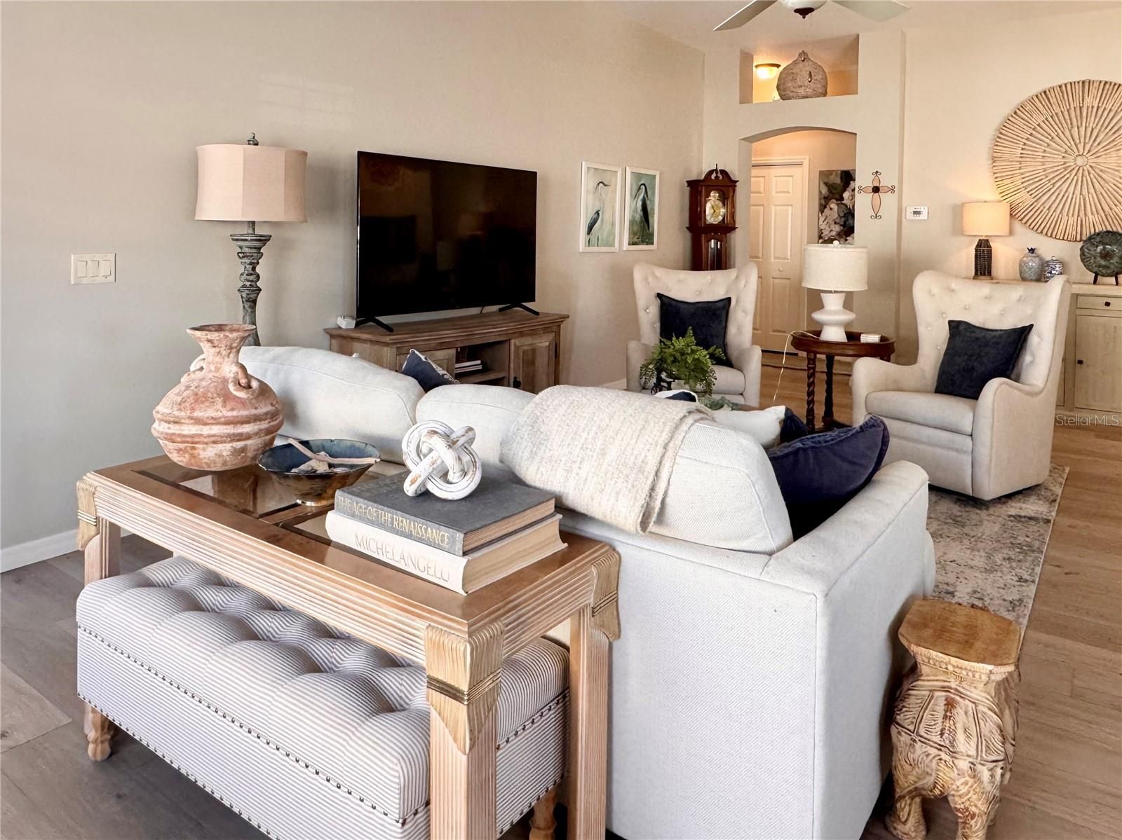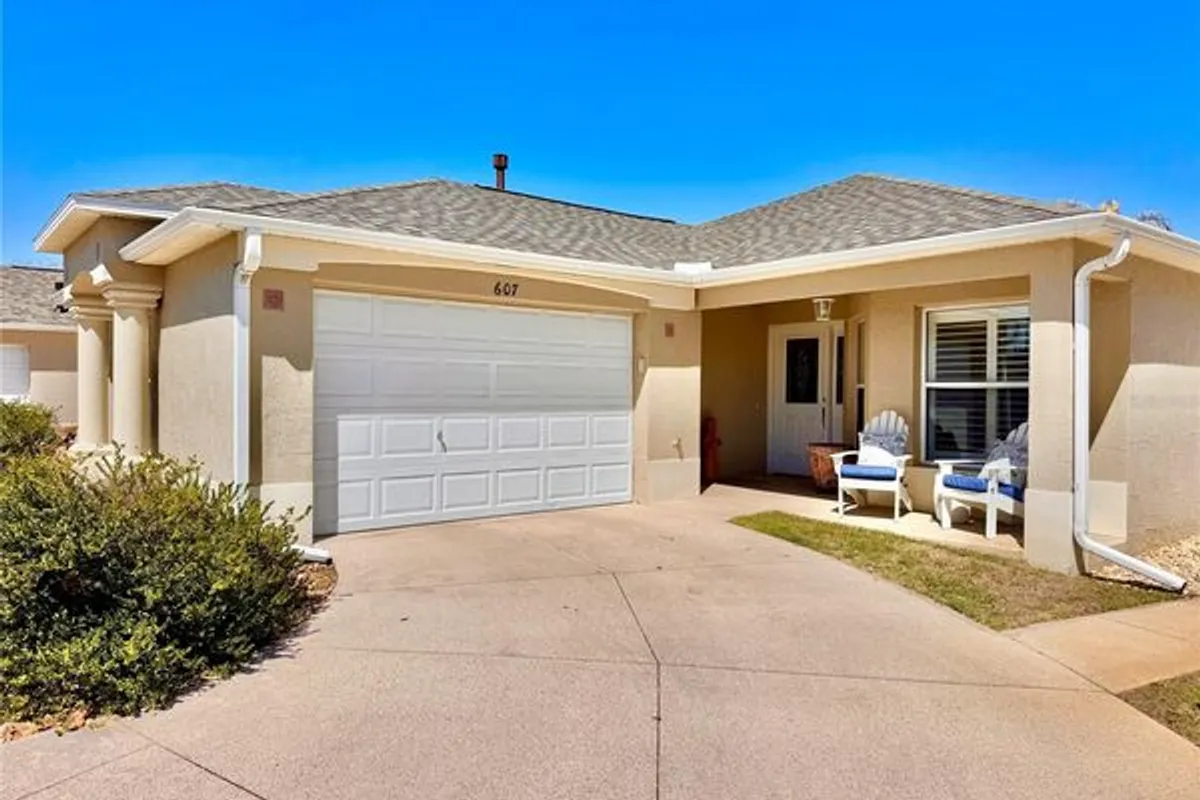 Welcome to 607 Reevesville Lane in the Village of Mallory Square, where comfort, style, and the easy lifestyle of a courtyard villa come together beautifully. This three-bedroom, two-bath Grantham model welcomes you with a warm and inviting entry, soaring ceilings, and an open layout that feels both spacious and relaxed from the moment you step inside.The kitchen is bright and stylish with crisp white cabinetry,Plantation shutters, beautiful QUARTZ countertops, and generous workspace that flows effortlessly into the living and dining areas, making everyday living and entertaining easy. Luxury flooring runs throughout the home with no carpet, creating a clean, modern look that is both attractive and low maintenance.The primary suite offers a peaceful retreat with a beautifully updated bathroom featuring quartz counters, modern fixtures, and a walk-in shower. Two additional bedrooms provide flexibility for guests, hobbies, or a home office.The very generously sized Guest Bath is between them.One of the most enjoyable features of this home is the enclosed Florida room, offering additional year-round living space filled with natural light. Just beyond, the private courtyard patio creates a perfect outdoor setting for relaxing with morning coffee, entertaining friends, or enjoying quiet evenings under the Florida sky.Courtyard villas are loved for their privacy, low-maintenance lifestyle, and charming outdoor spaces, and this Grantham model captures all of that perfectly while being located in the highly desirable Village of Mallory Square.Homes like this offer the perfect combination of comfort, style, and easy living. If you’re ready to enjoy everything The Villages lifestyle has to offer, this one is definitely worth seeing in person. Most furniture can be purchased separately. Low Bond of $4120.81. Roof 2025~Hvac 2013~Water Heater 2017.