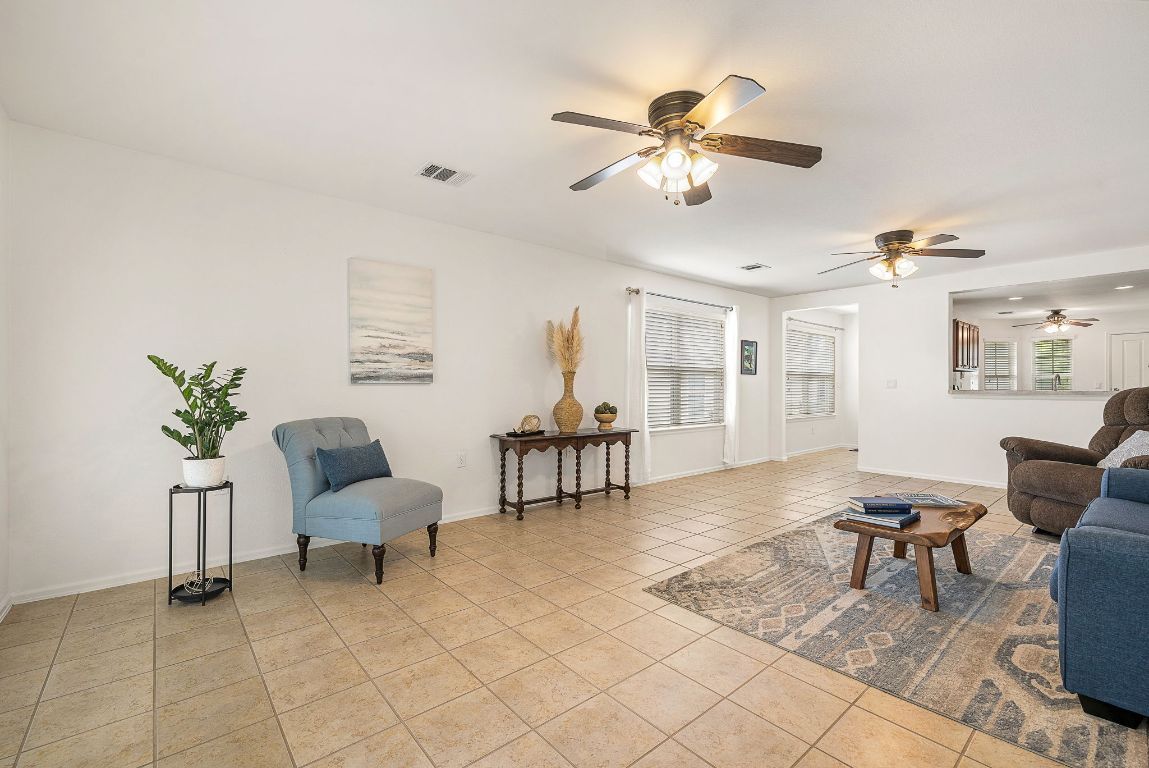 Beautiful open layout with 2 bedrooms, an office, tons of storage, and a greenbelt view. The home is the popular Gray Mist floor plan in the acclaimed 55+ community of Sun City. The home is clean and updated with privacy and a greenbelt behind the home. New carpet in July 2025, fresh interior paint in July 2025. All appliances convey, including the washer, dryer and refrigerator.