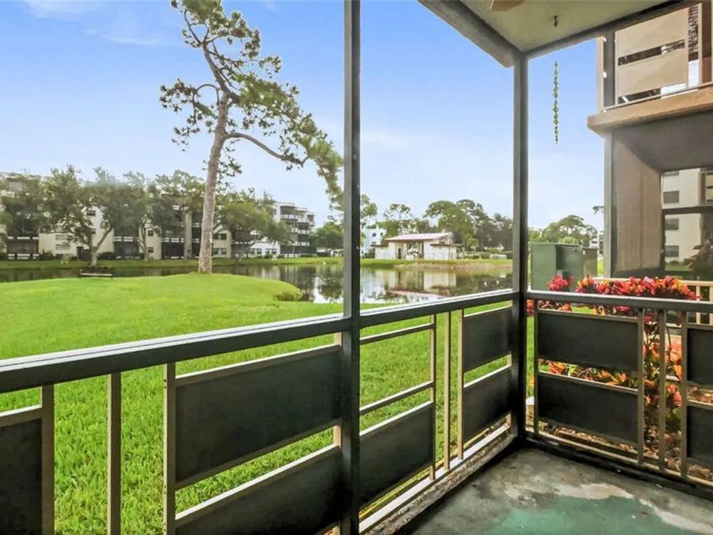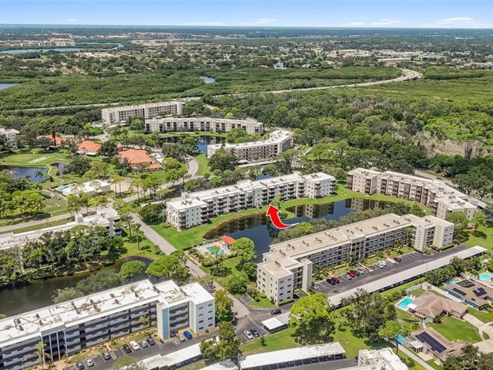 One or more photo(s) has been virtually staged. $5K Price Improvement! Motivated Sellers! Discover comfort and convenience in this beautifully maintained first-floor condo, offering 2 bedrooms, 2 bathrooms, and serene pond views in the sought-after 55+ community of Five Towns. This move-in ready home is in a building with a new roof for added peace of mind. Inside, the owner’s suite offers plenty of storage with three closets and an ensuite bath with a walk-in shower. The second bedroom and full bath are perfect for guests or a flexible home office. The kitchen features a brand-new dishwasher and a gas stove, while the open living/dining area is filled with natural light. A sliding glass door leads to your screened lanai with tranquil pond views. You’ll appreciate the easy-to-maintain engineered hardwood floors in the living areas and bedrooms, paired with tile in the kitchen and bathrooms. Five Towns provides a lifestyle to love, featuring two clubhouses, six swimming pools, tennis courts, and more—perfect for those seeking both relaxation and activity.
