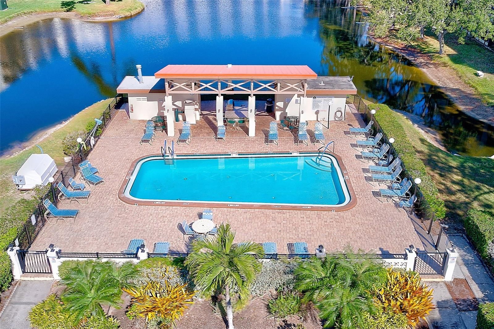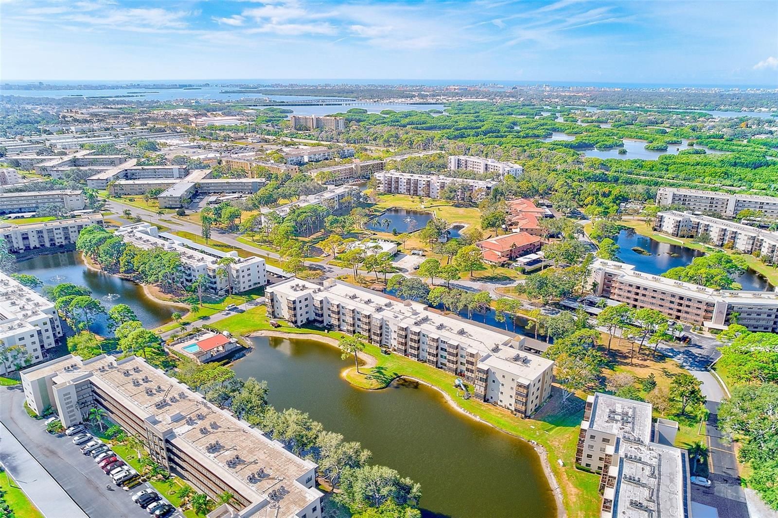 Welcome to this RARE TOP-FLOOR corner condo with spectacular water views in the desirable 55+ community of Terrace Park at Five Towns. This penthouse 4th-floor end unit offers 2-bedroom, 2-baths with 1,340 sq ft, an abundance of natural light, and breathtaking sunrise views overlooking the peaceful pond from your private screened-in balcony. Inside, you'll find a spacious split floor plan with an open living and dining area perfect for everyday comfort or hosting guests. The tastefully updated kitchen features Corian countertops, stainless steel appliances, updated cabinetry, a beautiful backsplash, and a window perfectly positioned to enjoy the water view—even while doing dishes. A large laundry/utility room off the kitchen provides full-size washer/dryer, extra storage, and space that could easily serve as a hobby nook or small office. The generous primary suite includes a walk-in closet and an en-suite bathroom with a tiled walk-in shower. The guest bedroom is ideal for visitors or a dedicated office space. Additional highlights include a building elevator, one assigned covered parking space, ample guest parking, and a dedicated storage space. The Newport building has just been freshly painted (November 2025) and a new ROOF installed (2024). The monthly association fee covers cable, internet, water, sewer, trash, gas, exterior building maintenance, and full access to the incredible amenities of Five Towns. This resort-style community spans over 144 acres and offers 6 pools, hot tubs, walking paths, grilling areas, tennis and bocce ball courts, shuffleboard, two clubhouses, fitness centers, billiards, card rooms, a library, and countless social clubs and planned activities. A new RV/boat/vehicle parking lot is nearly complete, with spaces available for lease. Conveniently located near shopping, restaurants, medical facilities, award-winning Gulf beaches, and just 25 minutes to Tampa International Airport—this home is perfect for seasonal or year-round living. Experience the best of active Florida living-schedule your private showing today!
