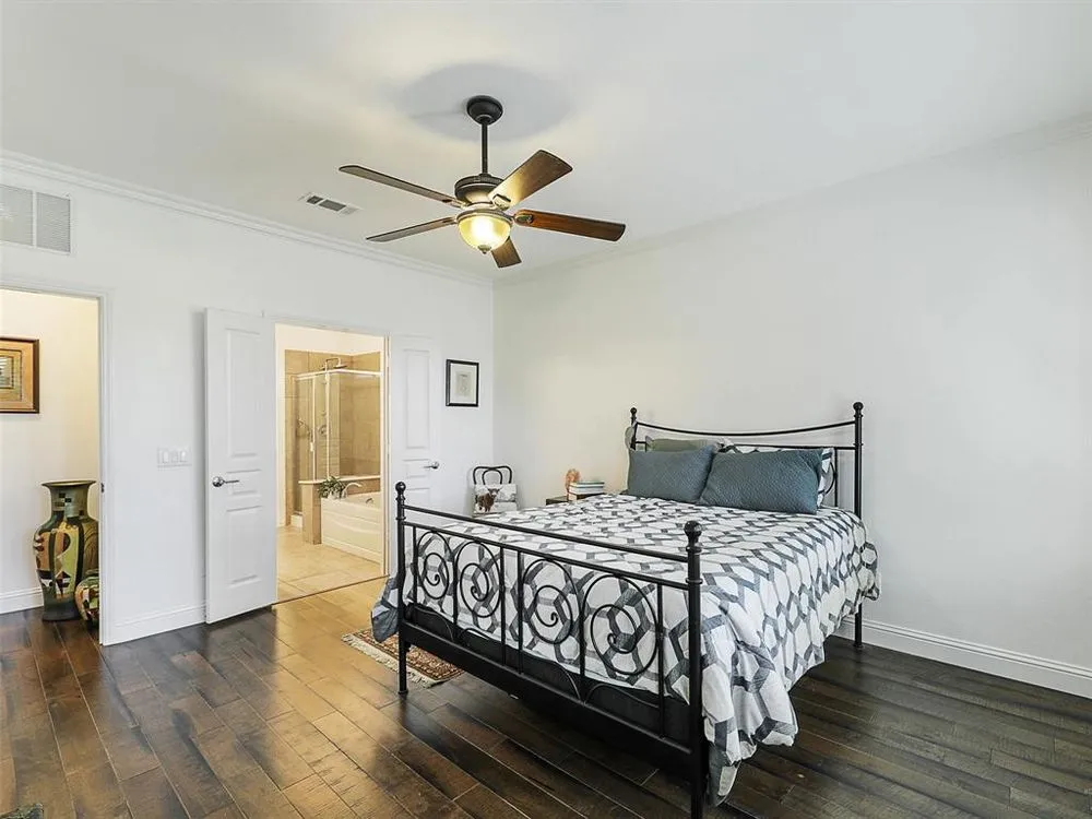 What an Amazing Home in Frisco Lakes! This Copper Ridge Floor Plan, nestled on a stunning oversized lot with a peak of the lake from the backyard, offers areas for entertainment and enjoyment. The open kitchen offers plenty of storage and overlooks the living area with shutter window treatments. A major plus is no carpet throughout the home. The primary retreat overlooks the lovely backyard, the primary bath has a garden tub, and separate walk-in shower. The closet is a dream for your wardrobe with drawers and hidden shelves for your personal essentials. A MUST SEE. Guests will enjoy a private bedroom with an adjacent bath. This house features a third bedroom or study with French Doors. The garage has some extra storage, or a great place to turn into a work bench area. The Backyard is amazing! Great place for entertainment and did we mention the remote-controlled shade screens? What a delightful backyard landscaped oasis. Additional perks include a utility room with a sink. This home is ready to move in and make it your own! Oh, and don’t forget the amazing amenities that are offered to the residents of Frisco Lakes. Enjoy first-class amenities including three state-of-the-art amenity centers, three fitness areas, one indoor pool and spa, three outdoor pools, four tennis, eight pickleball courts, scenic walking trails, restaurant with bar, over 120 clubs and groups and SO MUCH MORE! Come join us!