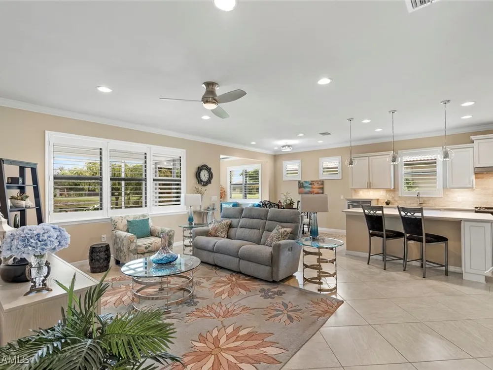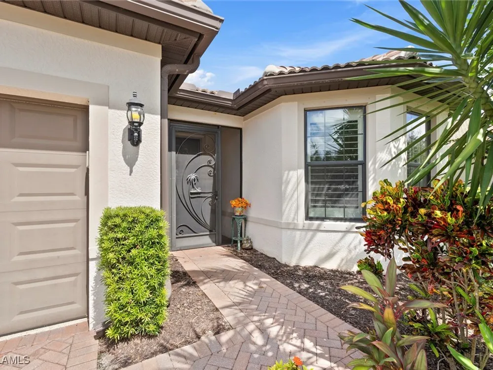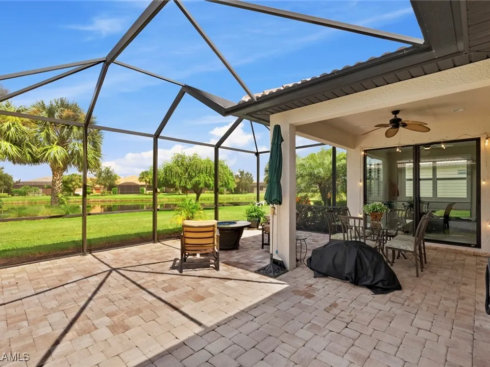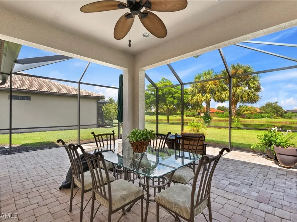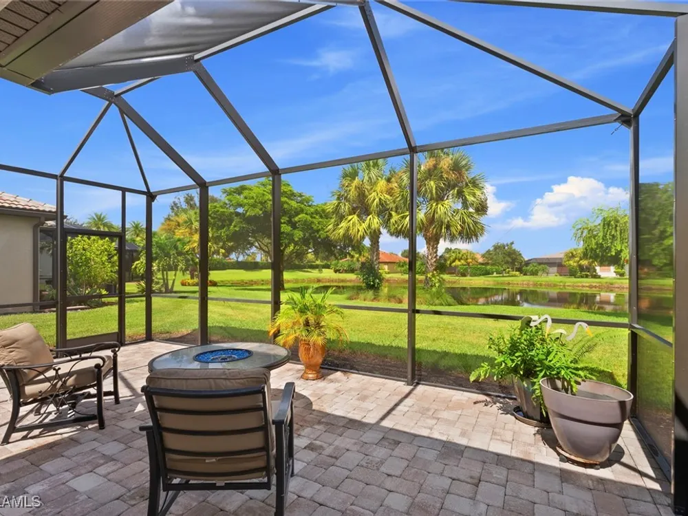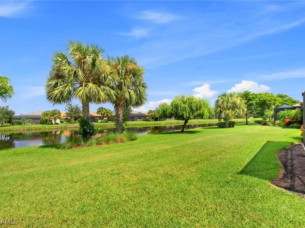 WATERFRONT LIVING in Del Webb Naples! Wake up every day to peaceful water views and relax in style from your LARGE EXTENDED LANAI overlooking the lake. This popular ABBEYVILLE floor plan in the 55+ Del Webb community offers 2 bedrooms, 2 full baths, a den, and a bright FLORIDA ROOM - perfect for extra living space or entertaining. The gourmet KITCHEN is designed to impress with upgraded soft-close cabinetry, pull-out drawers, under cabinet lighting and a smart layout that makes cooking a joy. Your PRIMARY SUITE is a private retreat, complete with double sinks, added cabinetry for storage, a comfort-height toilet, and a beautifully upgraded shower with floor-to-ceiling tile. The den, finished with solid wood doors, offers privacy for an office, reading room, or overnight guests. ADDITIONAL UPGRADES include: TILE FLOORING laid on the diagonal, Crown molding & PLANTATION SHUTTERS throughout, “Phantom Screen” doors on both the front entry and lanai slider, Ceiling fans and recessed lighting for a warm, inviting feel. Even the GARAGE is pristine, with epoxy-coated floors, overhead storage racks, and a wall system for organization. Recently painted, it’s as functional as it is attractive. The backyard is large enough to accommodate a pool, giving you even more ways to enjoy Florida living. This home comes with the SOCIAL MEMBERSHIP, but take note GOLF LOVERS, Panther Run Golf Club offers optional MEMBERSHIPS with premium golf experiences just steps from your backyard. In Del Webb Naples, you’ll enjoy WORLD-CLASS AMENITIES that rival luxury resorts: dine at the Rusty Putter Restaurant, soak in the RESORT-STYLE or LAP POOLS, break a sweat in the state-of-the-art FITNESS CENTER, and play your way through PICKLEBALL, TENNIS, bocce, billiards - even a top-tier GOLF SIMULATOR! Need groceries, church, or a bite to eat? Just hop in your golf cart and cruise into town - Publix and the heart of Ave Maria are just minutes away. This isn’t just a home - it’s a LIFESTYLE UPGRADE in one of Southwest Florida’s most vibrant 55+ communities. Don’t miss your chance to live where fun, fitness, and friendships flourish year-round!