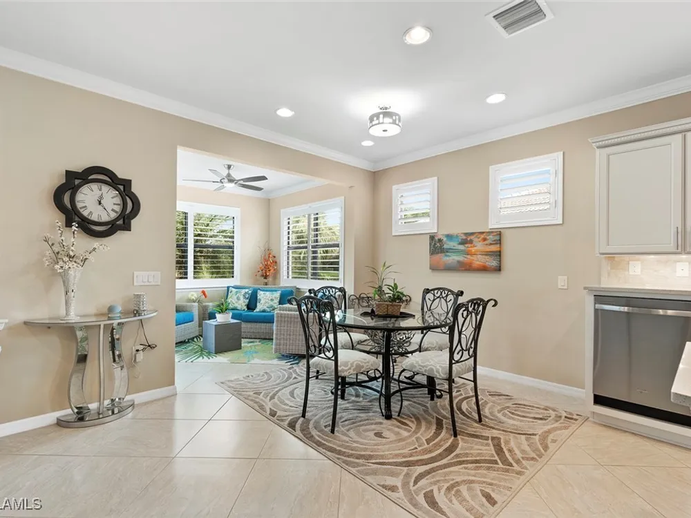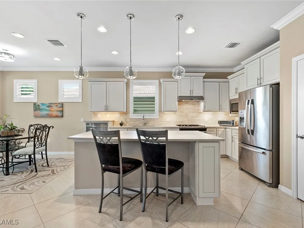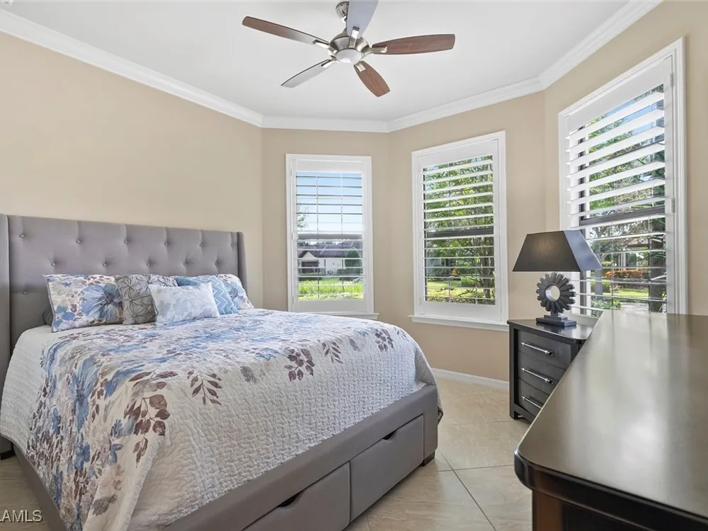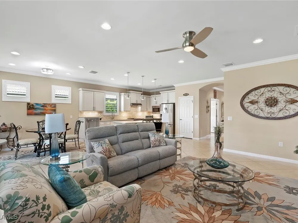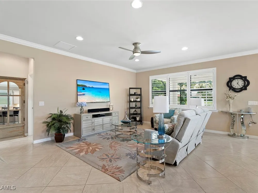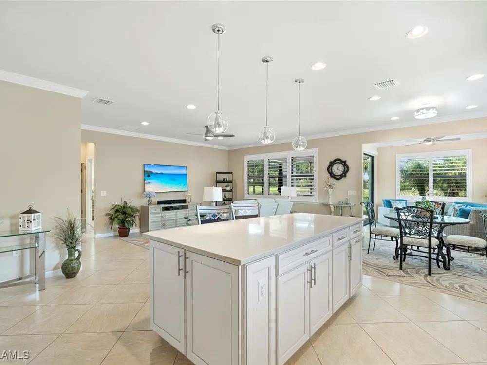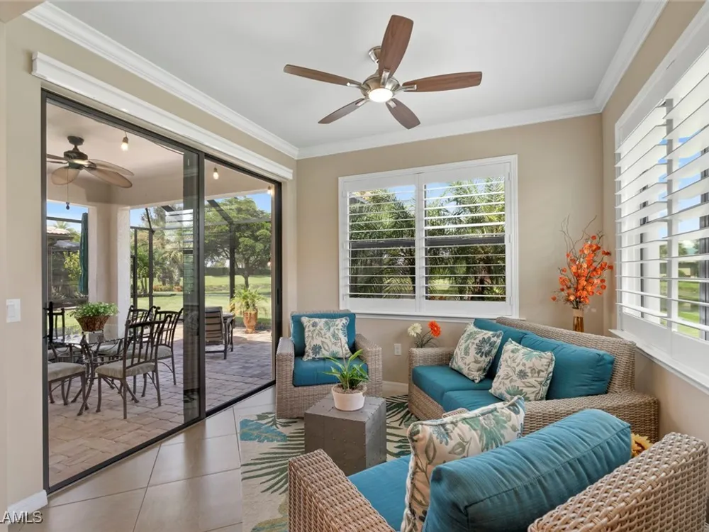 WATERFRONT LIVING in Del Webb Naples! Wake up every day to peaceful water views and relax in style from your LARGE EXTENDED LANAI overlooking the lake. This popular ABBEYVILLE floor plan in the 55+ Del Webb community offers 2 bedrooms, 2 full baths, a den, and a bright FLORIDA ROOM - perfect for extra living space or entertaining. The gourmet KITCHEN is designed to impress with upgraded soft-close cabinetry, pull-out drawers, under cabinet lighting and a smart layout that makes cooking a joy. Your PRIMARY SUITE is a private retreat, complete with double sinks, added cabinetry for storage, a comfort-height toilet, and a beautifully upgraded shower with floor-to-ceiling tile. The den, finished with solid wood doors, offers privacy for an office, reading room, or overnight guests. ADDITIONAL UPGRADES include: TILE FLOORING laid on the diagonal, Crown molding & PLANTATION SHUTTERS throughout, “Phantom Screen” doors on both the front entry and lanai slider, Ceiling fans and recessed lighting for a warm, inviting feel. Even the GARAGE is pristine, with epoxy-coated floors, overhead storage racks, and a wall system for organization. Recently painted, it’s as functional as it is attractive. The backyard is large enough to accommodate a pool, giving you even more ways to enjoy Florida living. This home comes with the SOCIAL MEMBERSHIP, but take note GOLF LOVERS, Panther Run Golf Club offers optional MEMBERSHIPS with premium golf experiences just steps from your backyard. In Del Webb Naples, you’ll enjoy WORLD-CLASS AMENITIES that rival luxury resorts: dine at the Rusty Putter Restaurant, soak in the RESORT-STYLE or LAP POOLS, break a sweat in the state-of-the-art FITNESS CENTER, and play your way through PICKLEBALL, TENNIS, bocce, billiards - even a top-tier GOLF SIMULATOR! Need groceries, church, or a bite to eat? Just hop in your golf cart and cruise into town - Publix and the heart of Ave Maria are just minutes away. This isn’t just a home - it’s a LIFESTYLE UPGRADE in one of Southwest Florida’s most vibrant 55+ communities. Don’t miss your chance to live where fun, fitness, and friendships flourish year-round!