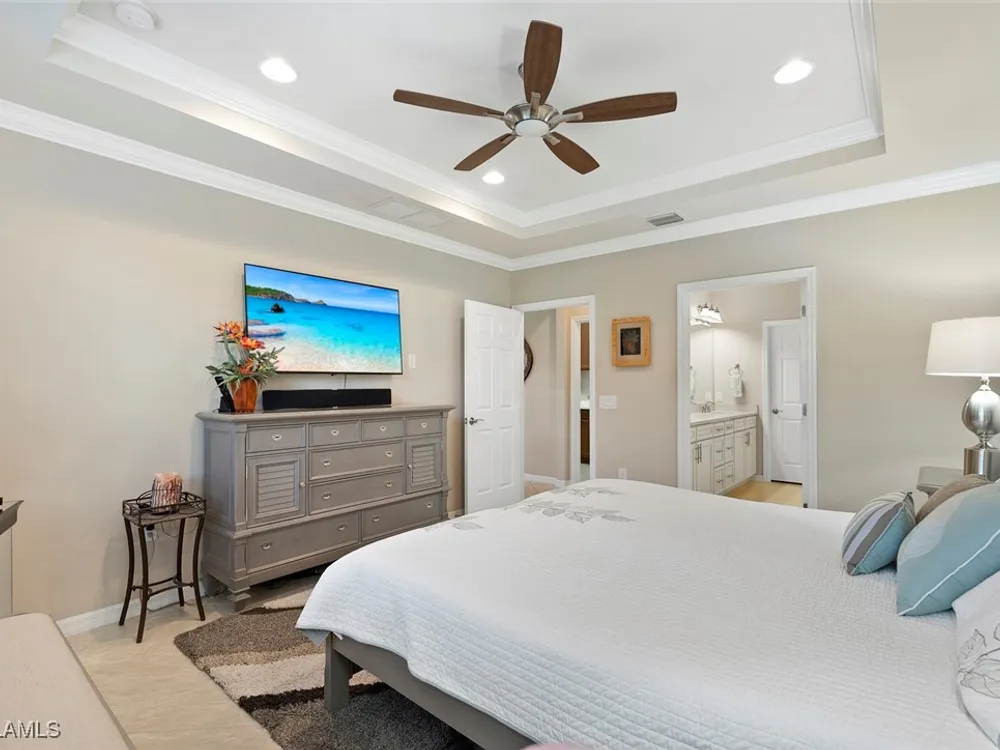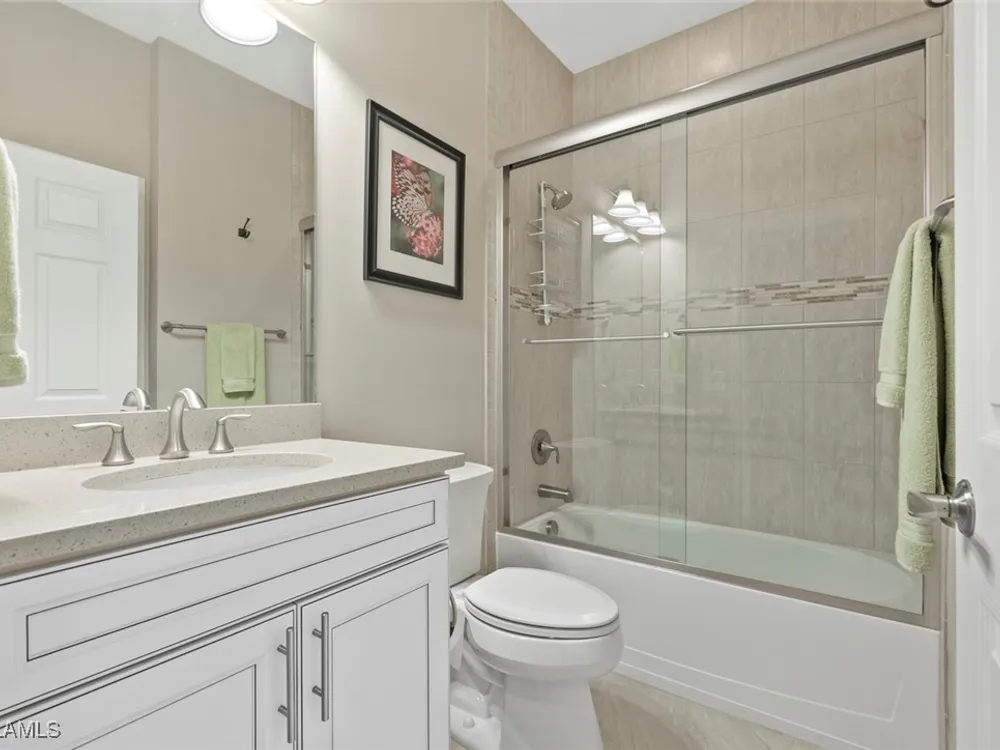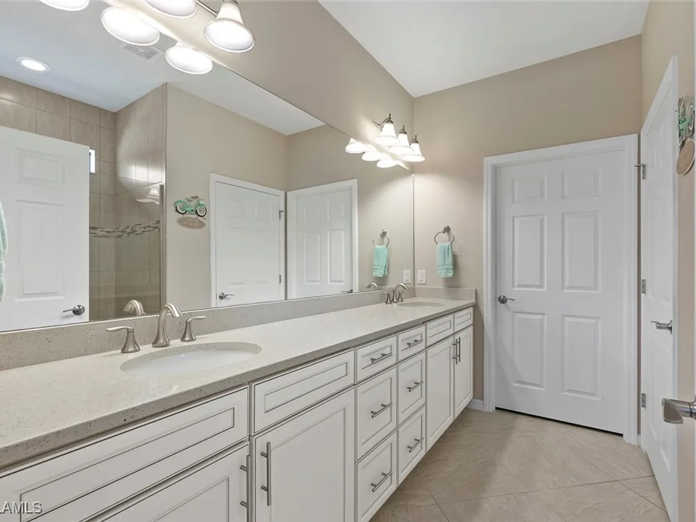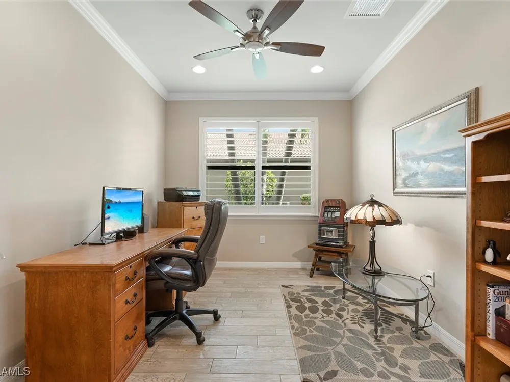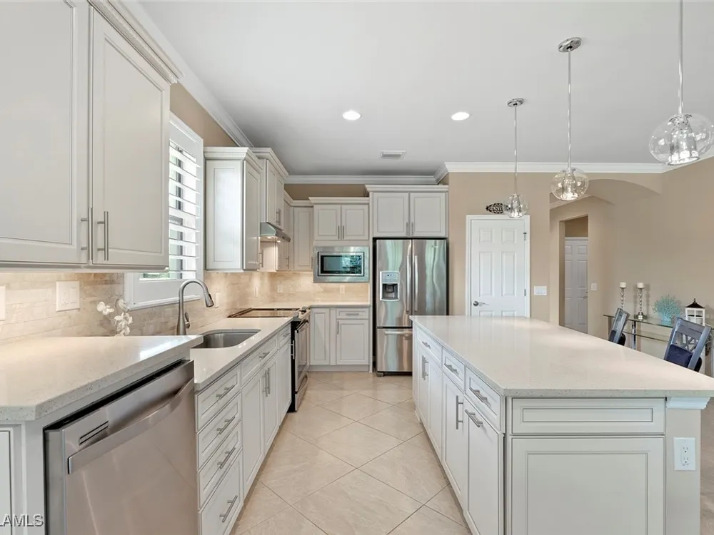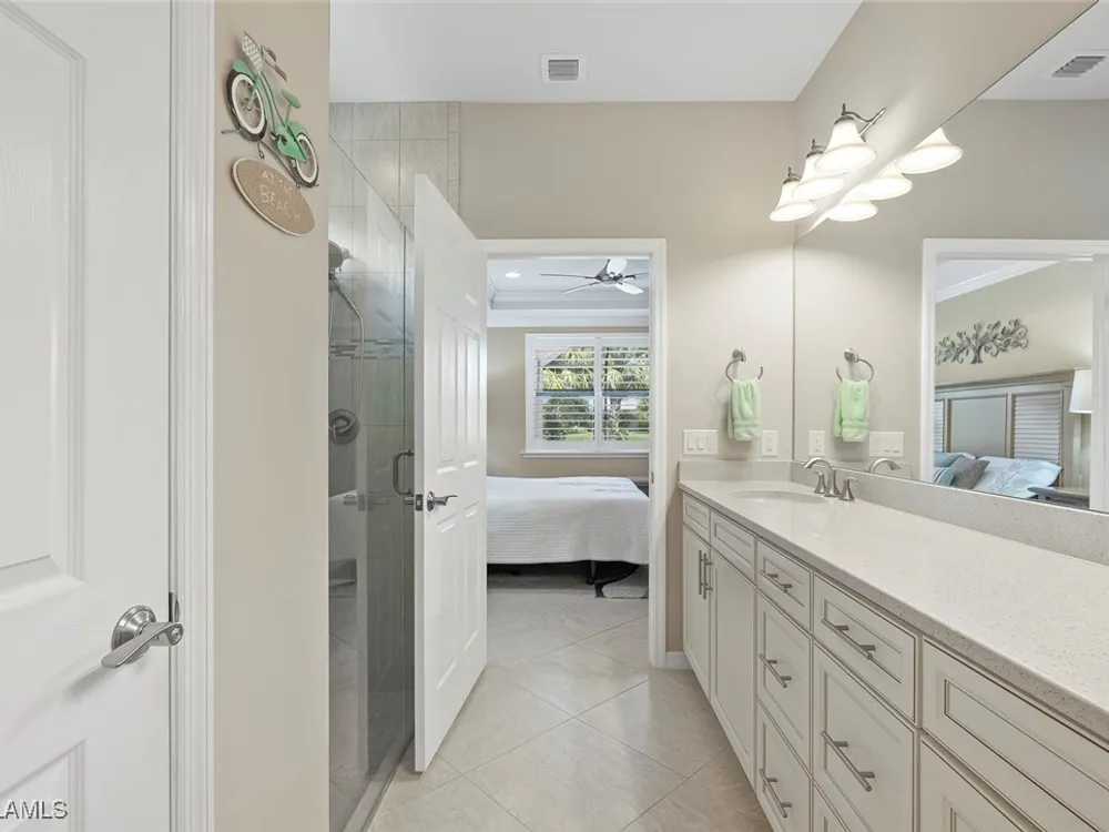 WATERFRONT LIVING in Del Webb Naples! Wake up every day to peaceful water views and relax in style from your LARGE EXTENDED LANAI overlooking the lake. This popular ABBEYVILLE floor plan in the 55+ Del Webb community offers 2 bedrooms, 2 full baths, a den, and a bright FLORIDA ROOM - perfect for extra living space or entertaining. The gourmet KITCHEN is designed to impress with upgraded soft-close cabinetry, pull-out drawers, under cabinet lighting and a smart layout that makes cooking a joy. Your PRIMARY SUITE is a private retreat, complete with double sinks, added cabinetry for storage, a comfort-height toilet, and a beautifully upgraded shower with floor-to-ceiling tile. The den, finished with solid wood doors, offers privacy for an office, reading room, or overnight guests. ADDITIONAL UPGRADES include: TILE FLOORING laid on the diagonal, Crown molding & PLANTATION SHUTTERS throughout, “Phantom Screen” doors on both the front entry and lanai slider, Ceiling fans and recessed lighting for a warm, inviting feel. Even the GARAGE is pristine, with epoxy-coated floors, overhead storage racks, and a wall system for organization. Recently painted, it’s as functional as it is attractive. The backyard is large enough to accommodate a pool, giving you even more ways to enjoy Florida living. This home comes with the SOCIAL MEMBERSHIP, but take note GOLF LOVERS, Panther Run Golf Club offers optional MEMBERSHIPS with premium golf experiences just steps from your backyard. In Del Webb Naples, you’ll enjoy WORLD-CLASS AMENITIES that rival luxury resorts: dine at the Rusty Putter Restaurant, soak in the RESORT-STYLE or LAP POOLS, break a sweat in the state-of-the-art FITNESS CENTER, and play your way through PICKLEBALL, TENNIS, bocce, billiards - even a top-tier GOLF SIMULATOR! Need groceries, church, or a bite to eat? Just hop in your golf cart and cruise into town - Publix and the heart of Ave Maria are just minutes away. This isn’t just a home - it’s a LIFESTYLE UPGRADE in one of Southwest Florida’s most vibrant 55+ communities. Don’t miss your chance to live where fun, fitness, and friendships flourish year-round!