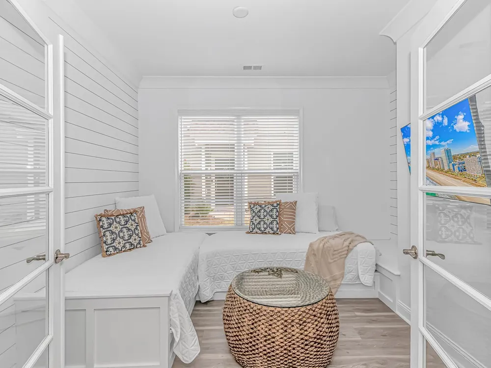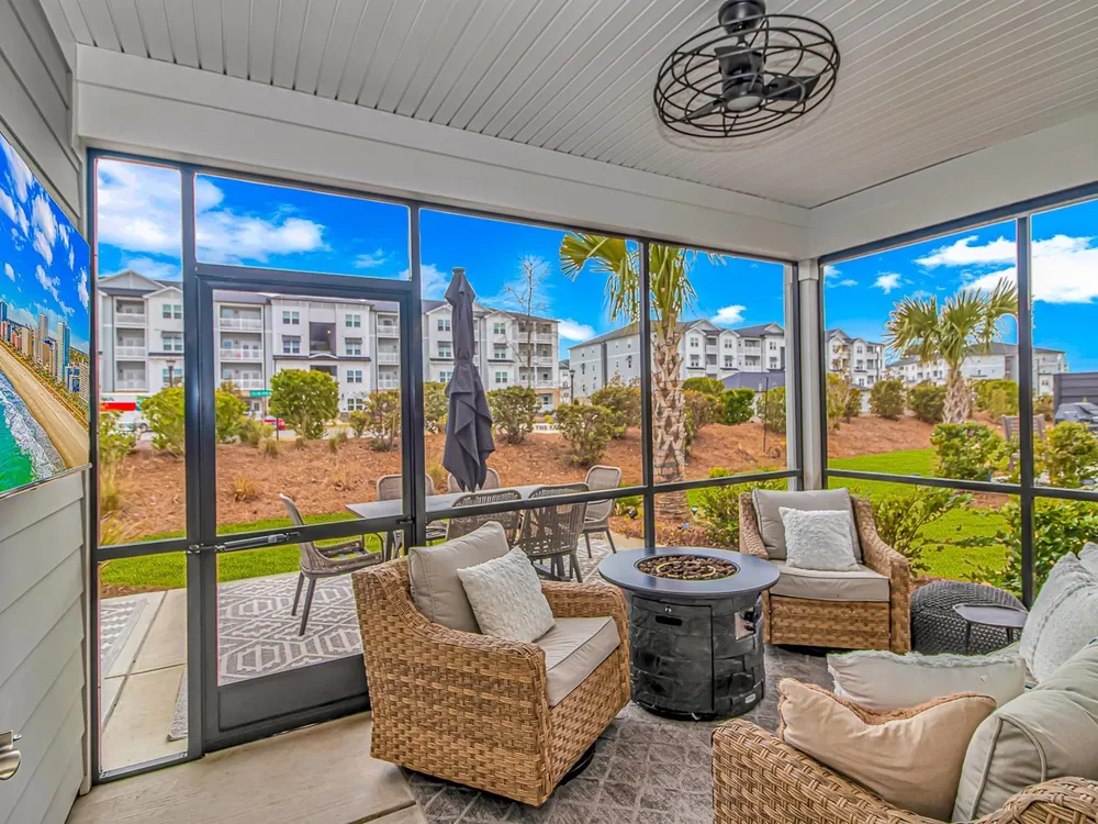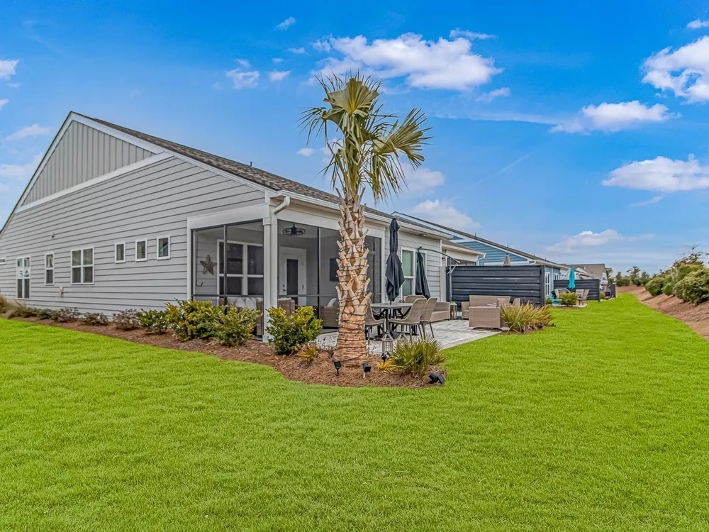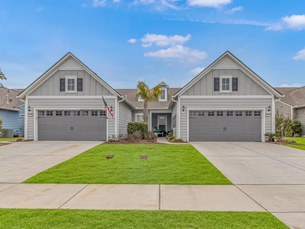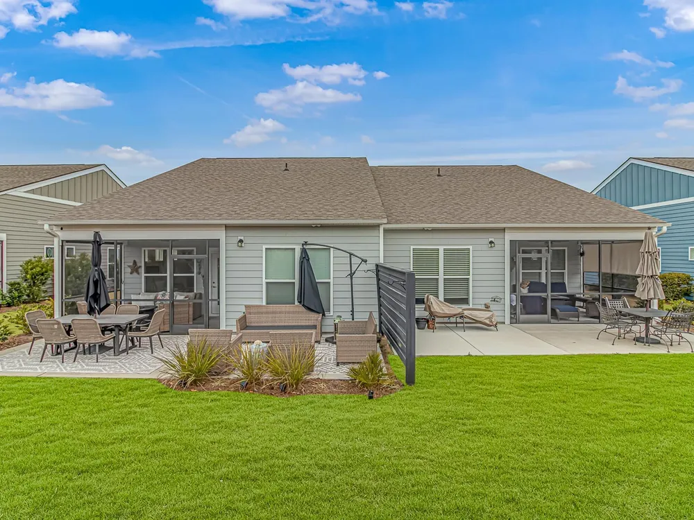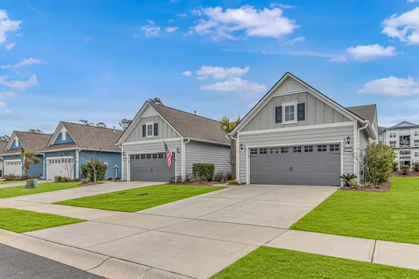 Come and check out this beautifully designed one of a kind villa located in the Del Webb Grande Dunes 55+, natural gas community. The villa is the Cressida model offering a split bedroom plan. Home has 2 spacious Bedrooms and 2 Baths which also includes a bonus room that can be used as office and/or 3rd bedroom. Open concept living offers a large entertainment area including a living room, dining and kitchen. Kitchen has stainless steel appliances, large island with custom pendant lighting, granite countertops & pantry for extra storage. Home includes: Smart Home features, LVP flooring throughout, wet areas have tile, granite countertops in baths and kitchen area, tankless hot water, outdoor space includes extra palm trees and flowers for landscaping, a screened in lanai, open back patio is perfect for grilling & dining outside. Lots of Owner upgrades: kitchen under cabinet lighting, replaced cabinet hardware with black hardware, also installed new black faucet, new pendant lighting over the island, dining room light, added extra patio slab, in flex room added built in twin beds, shiplap on the walls and 9” crown molding. In the master bathroom, upgraded to heavy glass shower doors trimmed in black with black handle, new black Moen spa shower faucet. In the garage, shelves are built in for extra storage. This Del Webb neighborhood features on-site resort style amenities such as outdoor & indoor pools, fitness center, pickle ball, tennis, & bocce ball courts, walking and biking trails, a fire pit overlooking the beautiful intercoastal waterway, a day dock & a full-time lifestyle director that plans events &activities monthly. In addition to the on-site amenities, you will also have access to the Grande Dunes Ocean Club. Drive your golf cart there and enjoy the ocean front pool, on-site restaurant & beach access. Don't wait and miss the chance to own your piece of paradise…schedule a showing today!!