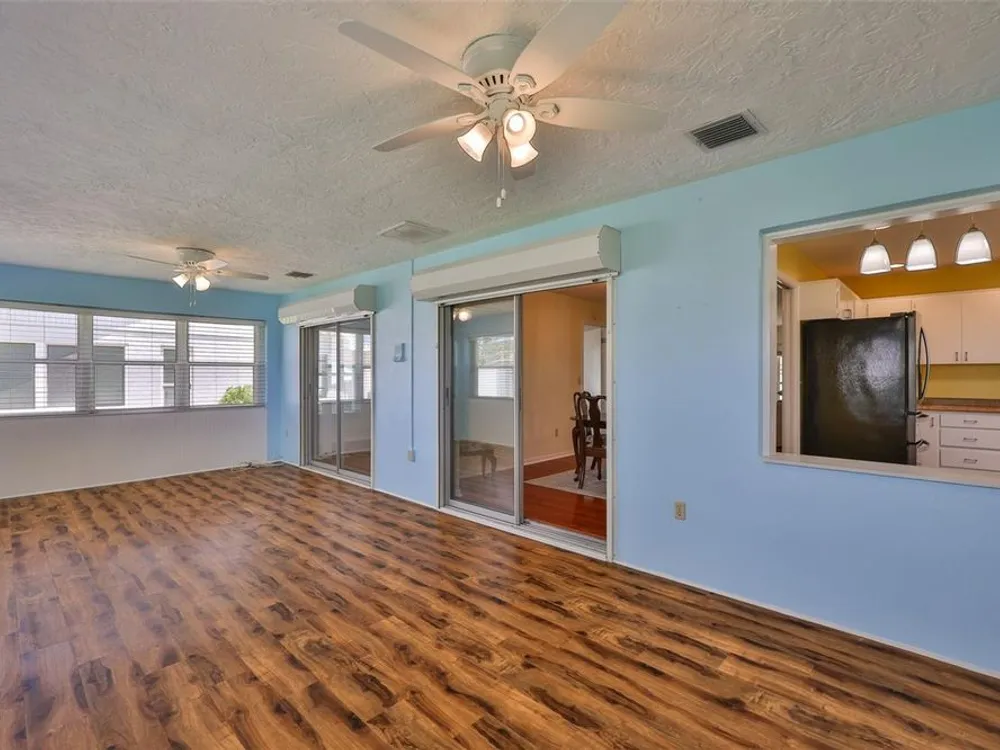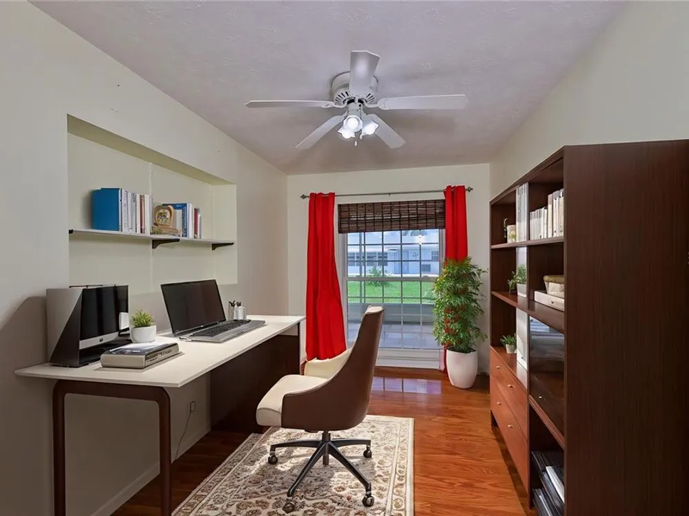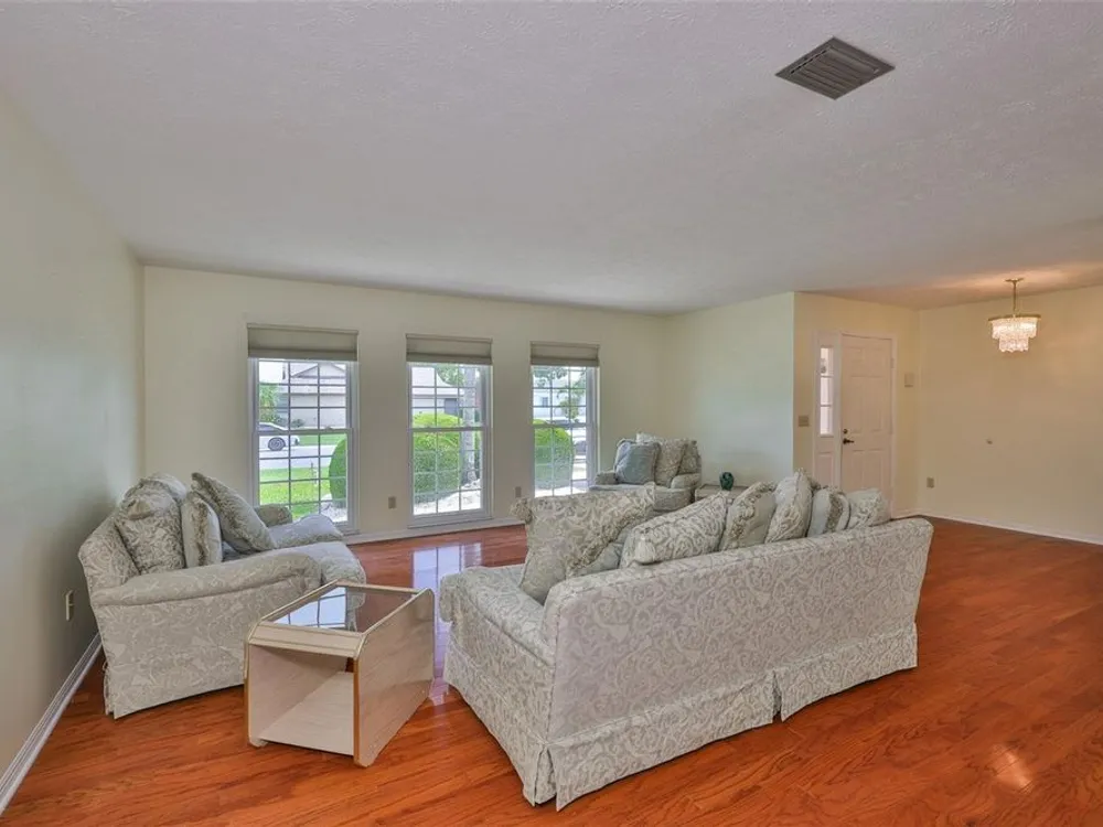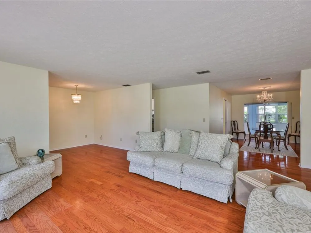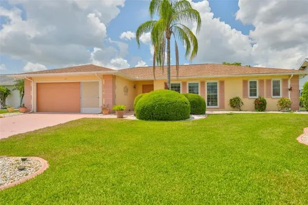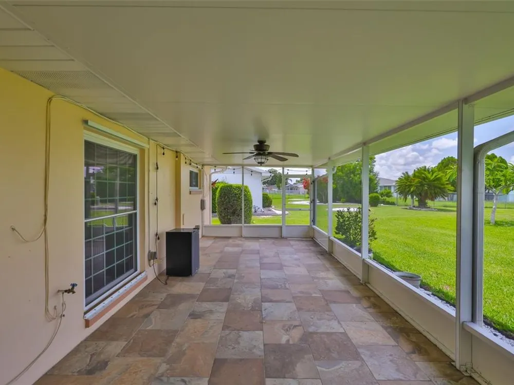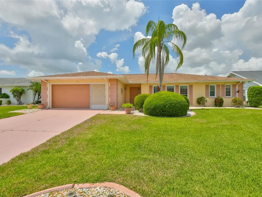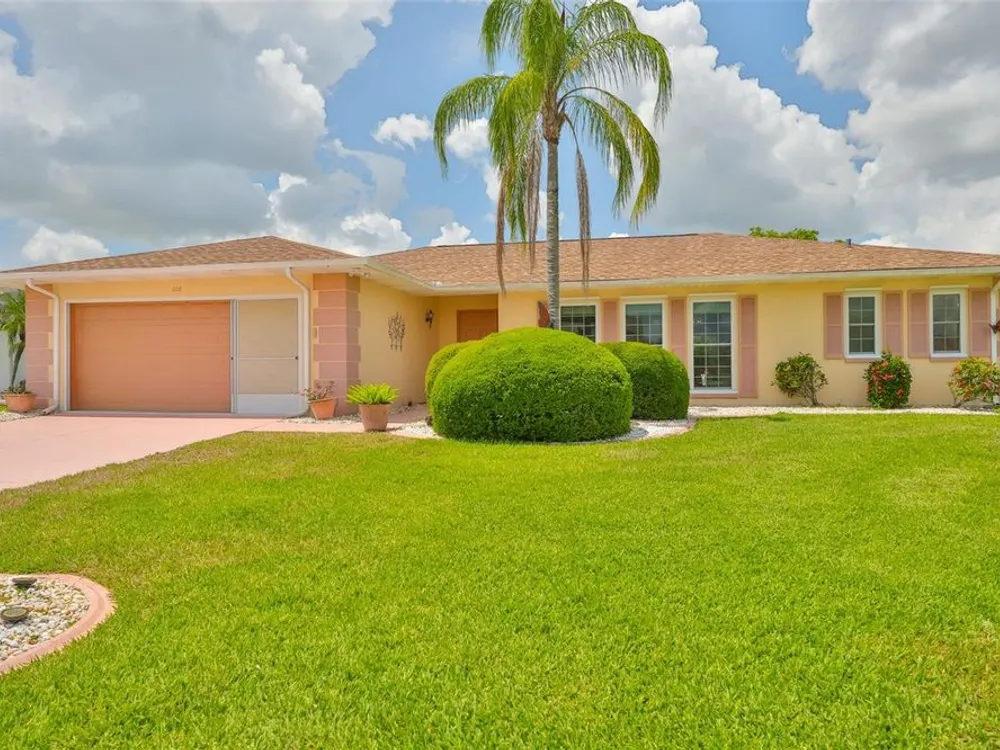 One or more photo(s) has been virtually staged. ROOF 2023, A/C 2023. This beautifully designed home features two bedrooms, two bathrooms, a versatile office or den, a spacious Florida room with A/C, and a screened-in lanai. The custom-built split-bedroom floor plan is light, bright, and thoughtfully laid out. There's no carpet; only easy-to-maintain luxury vinyl tile, wood, and ceramic flooring are used throughout. The large kitchen boasts newer appliances, CORIAN countertops, abundant cabinetry, a pantry, an eat-in area, a skylight, and an opening to the Florida room. A separate living area provides additional space for relaxing or entertaining, plus a separate dining area for those more formal occasions. The primary bedroom offers sliding doors to the Florida room, two walk-in closets, two standard closets, and an ensuite bathroom with dual sinks and a spacious glass walk-in shower. The second bedroom also features its own updated full bath with another large glass walk-in shower. A bonus room can be used as a third bedroom, home office, craft room, or den. Enjoy the expansive Florida room filled with natural light, and then step outside to the screened-in lanai, perfect for indoor-outdoor living. There's always something to do here! With over 200 clubs and activities, you'll find everything from painting and pottery to woodworking, dancing, knitting, pickleball, lawn bowling, and more. You'll also have access to indoor and outdoor pools, fitness classes, a top-notch gym, and tons of volunteer opportunities. Great location close to beaches, shopping, dining, theme parks, sports events, and Tampa Airport, everything you need is just a short drive away.