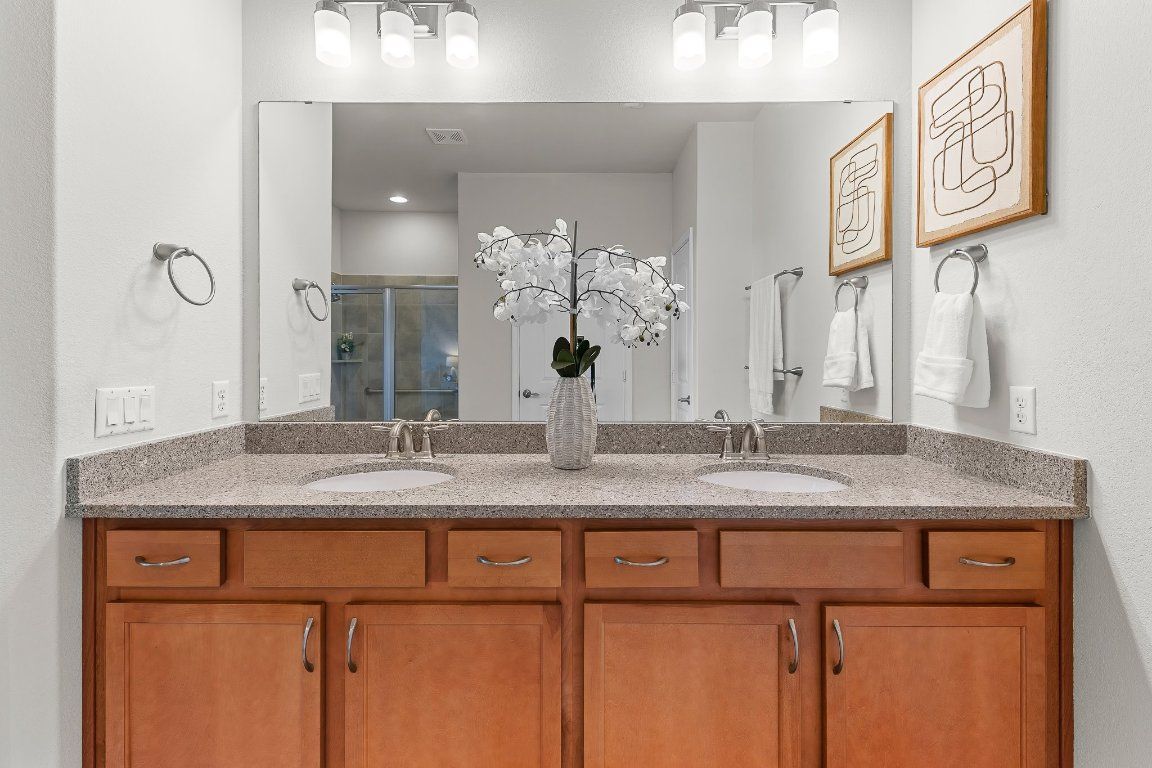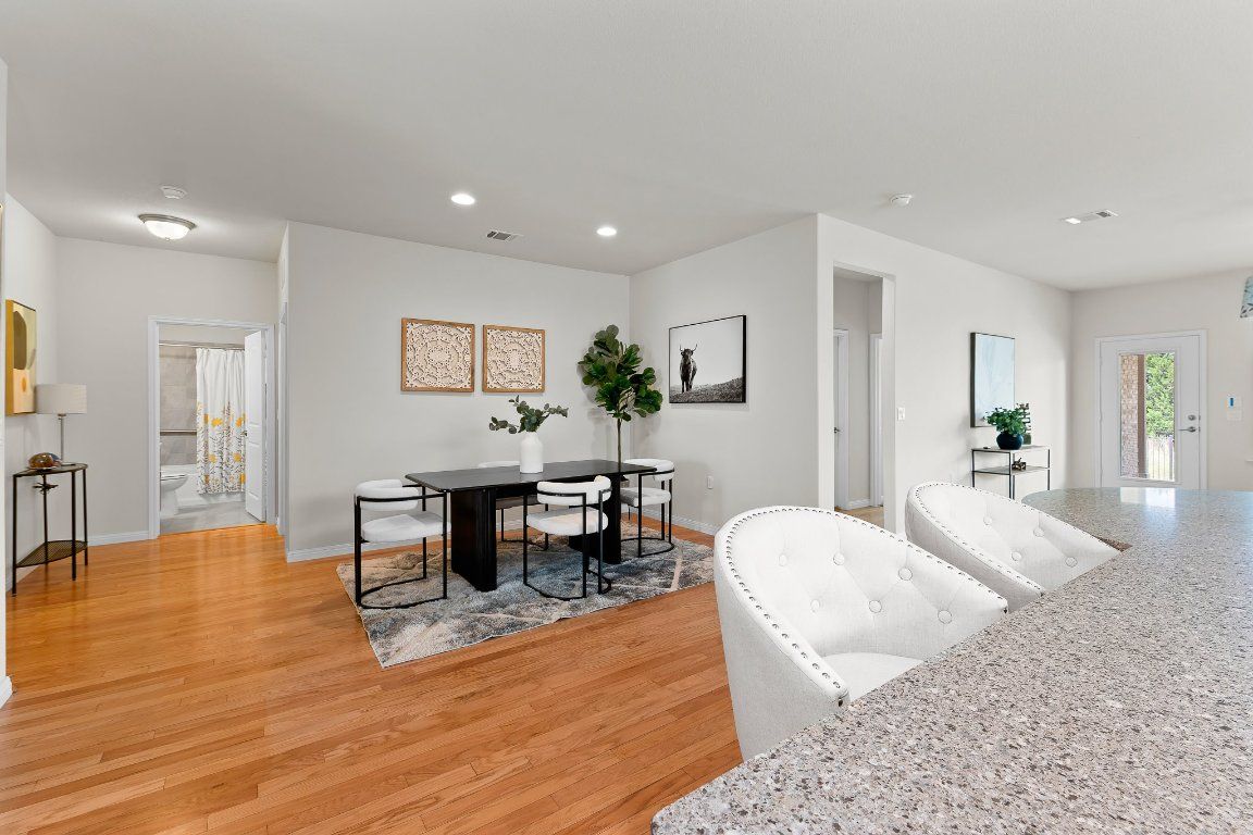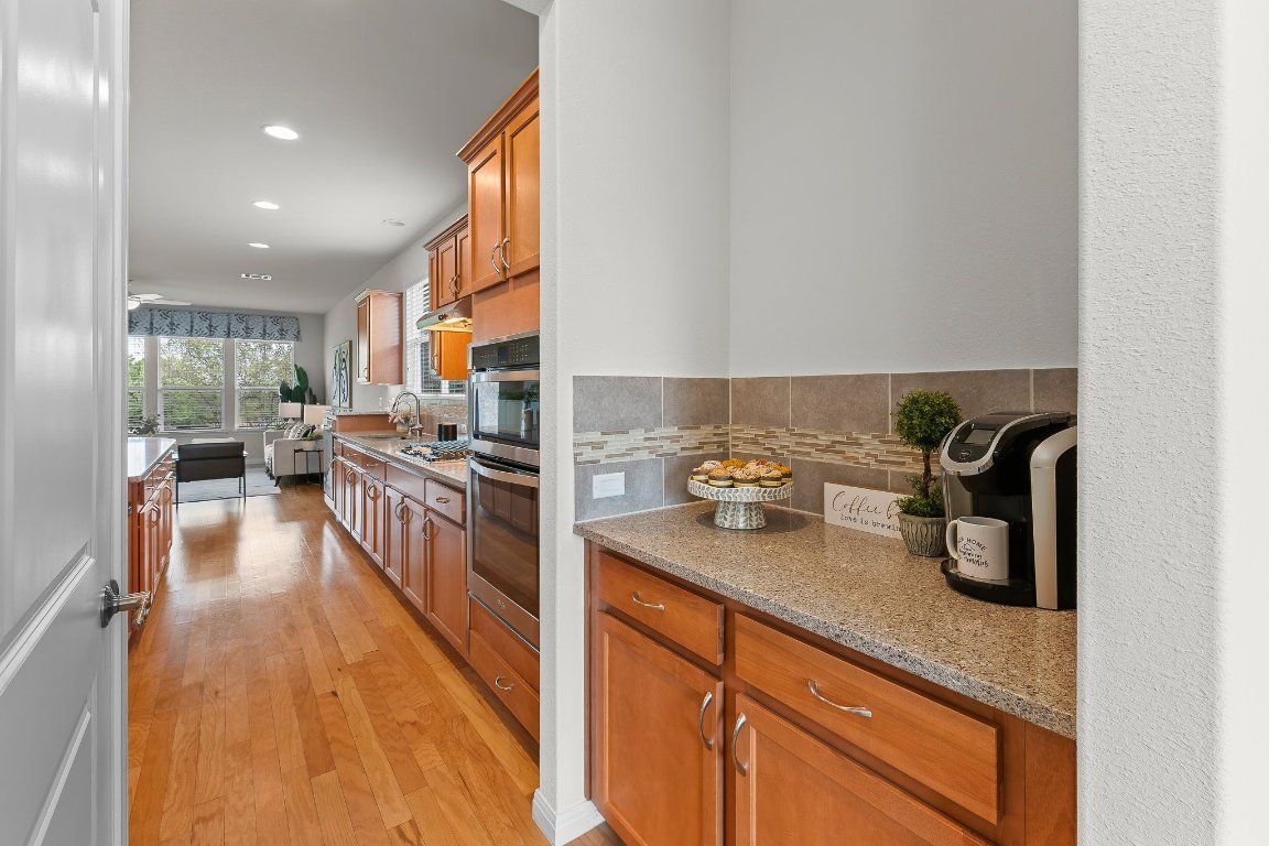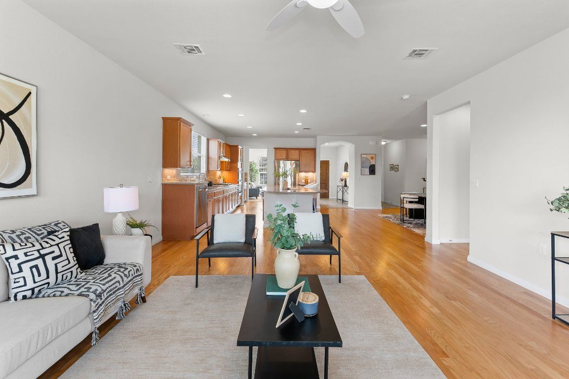 Martin Ray in move-in condition and on a greenbelt too! Flex room off entry makes for the perfect office, reading room, tv room, or for crafts. Open living area is spacious and ready for your holiday family and friends gathering- with an island just made for standing around and munching. HUGE walk-in pantry, plus a butler's pantry, plus a mudroom/drop zone off garage entry. Big extended covered porch will be the spot for morning coffee and enjoying the pretty greenbelt. Pre-inspected for your buying confidence! Water heater 2024, HVAC 2015, Roof 2015.