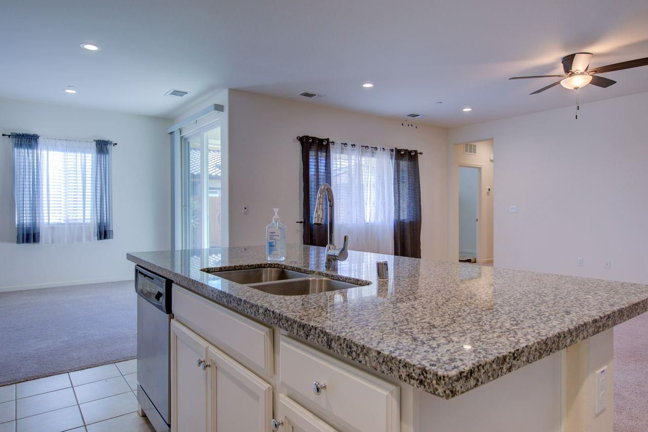 Beautiful home located within the Four Seasons K. Hovnanian's Communities 55+ and better. Open floor plan very spacious though out. Primary bedroom on one side of home and 2nd bedroom located on other side of home. Open kitchen with Island and granite countertops, panty closet, fridge stays. Water softener, ceiling fans, notice the leased solar to help with electric bills. Backyard has been professionally landscaped, drip system, and low maintenance. Extending patio cover with the touch of a button, enjoy an evening quietly and cool. Come and join a 55 and better community.