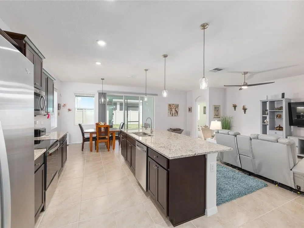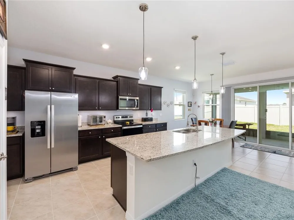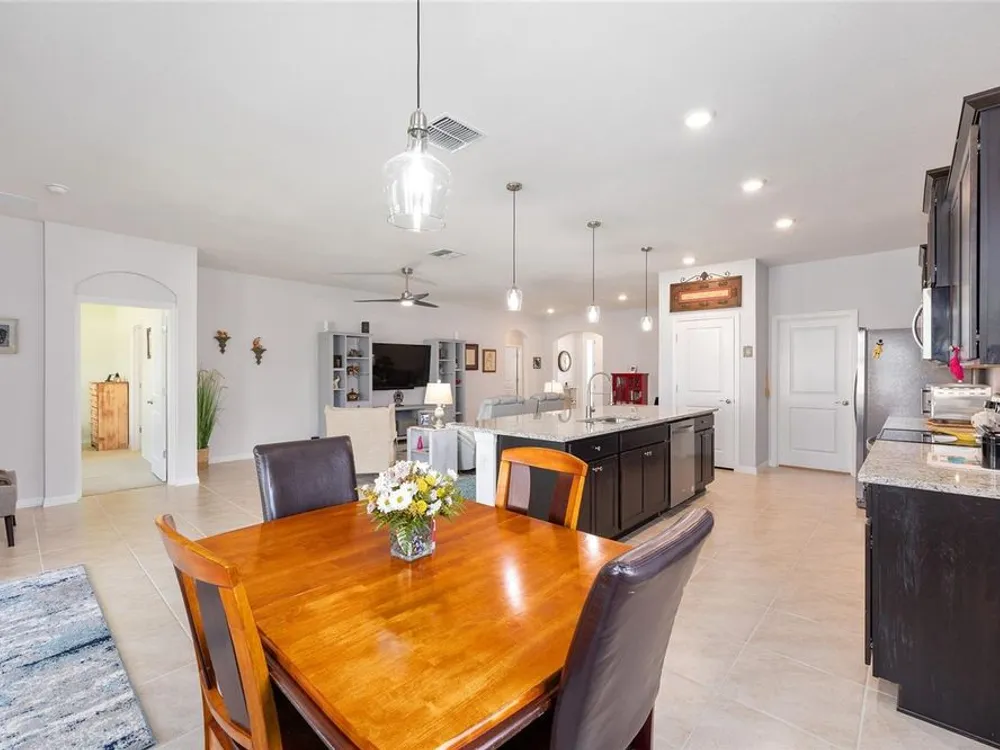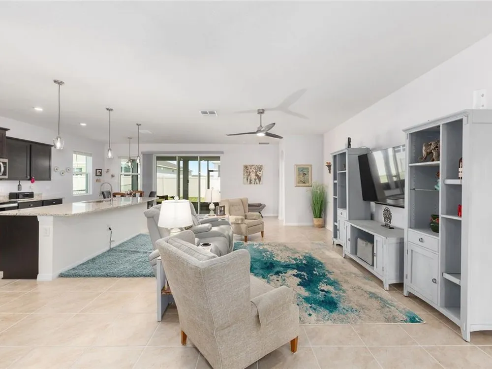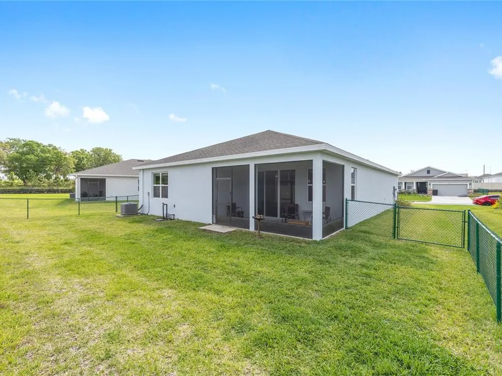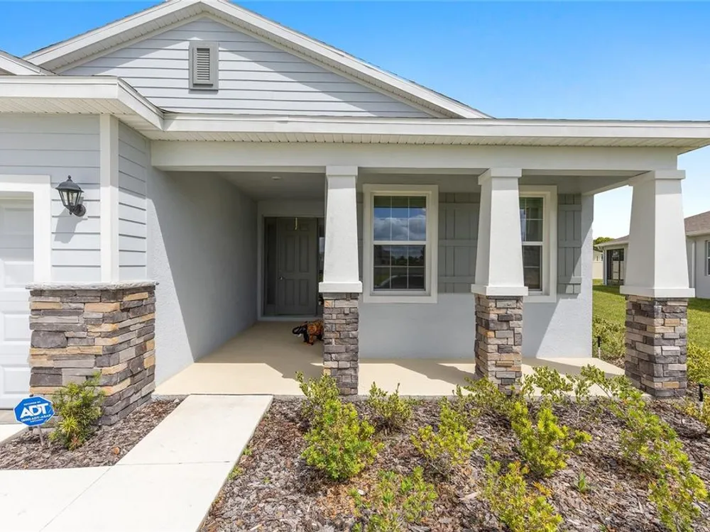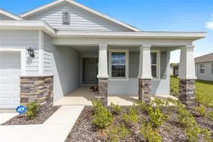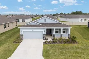 This 2024 home is better than new! Why wait when this has MORE than what you have been looking for. Important features already in place: fully fenced, screen enclosed lanai, window treatments, finished window sills, refrigerator, washer and dryer. And the upgrades include pendant lighting, remote controlled ceiling fans, and the interior paint finish. Open concept split plan with 3 true bedrooms. Your kitchen boasts stone countertops with a double undermounted sink, an island for additional counter space and cabinets, and a closet pantry. The pendant kitchen lighting adds that special touch. There is plenty of space to entertain with a dining area, breakfast nook, large island, and triple sliding glass doors that lead to your screen enclosed lanai. Open the sliders for that refreshing breeze to fill your home and bring the outside in. Tile throughout the living areas. Your primary bedroom features a tray ceiling, walk in closet, and remote controlled ceiling fan with light. The luxurious primary bathroom has stone countertops, 2 undermounted sinks, a tiled step in shower, a bathtub, and a separate water closet. On the other side of your home are 2 guest bedrooms, and a guest bathroom with pendant lighting, tub/shower combo, stone countertop, and undermounted sink. The laundry room has a closet for extra storage space, and the washer and dryer are included. Lawn maintenance is included in the $215/month HOA fee. JB Ranch is a gated community with a resort style pool, pickleball court, bocce ball, a fitness center, while less than 1 mile to grocery shopping. This home comes complete with a smart home package. Transferrable termite bond in place, and survey available to buyer. The property information provided is deemed to be true and correct, however, the accuracy of the information is not guaranteed.