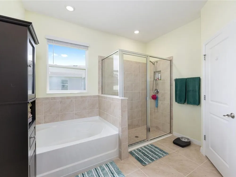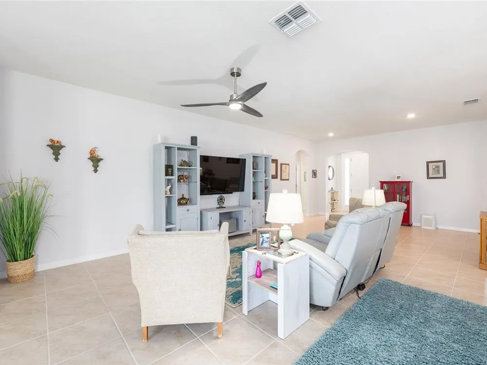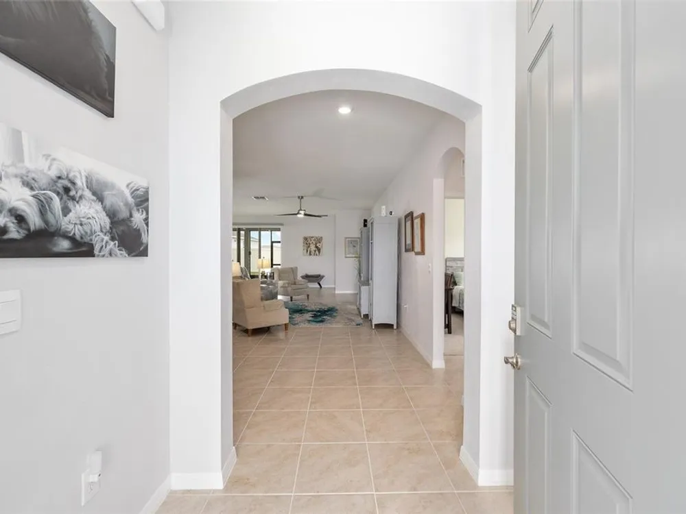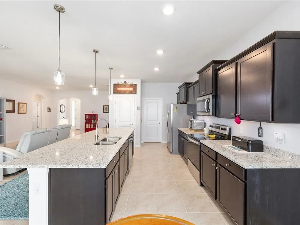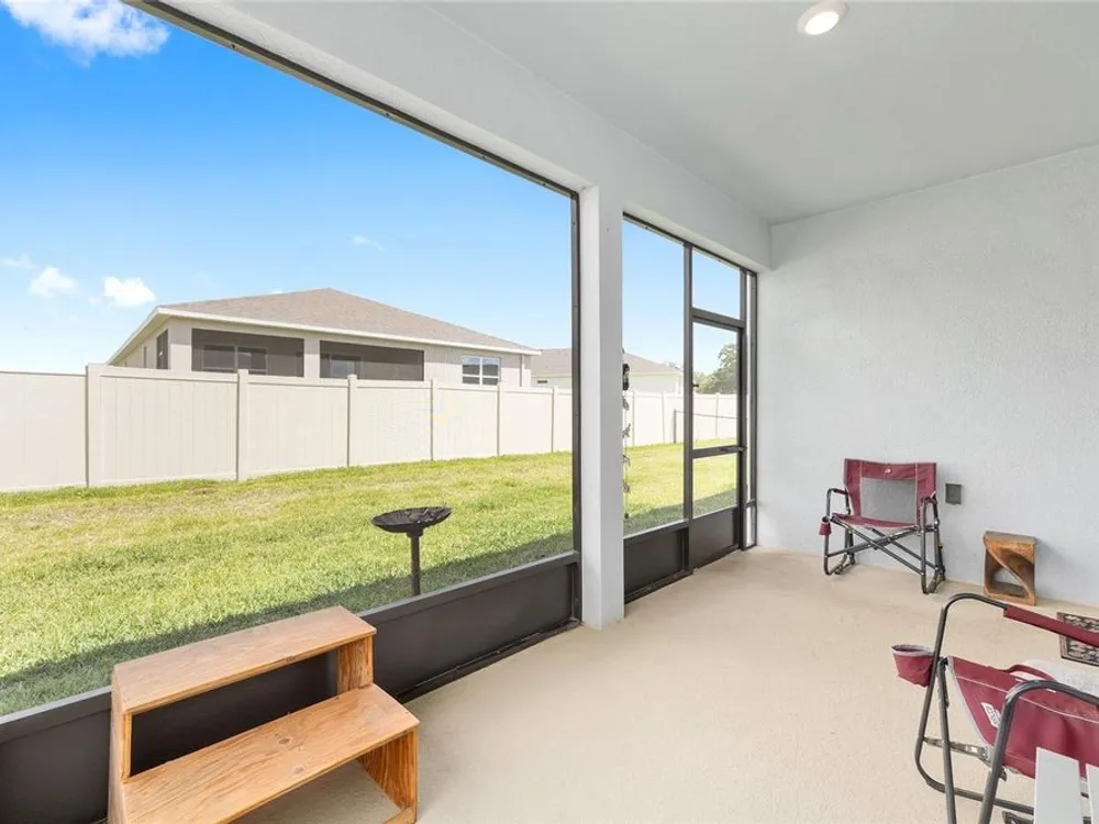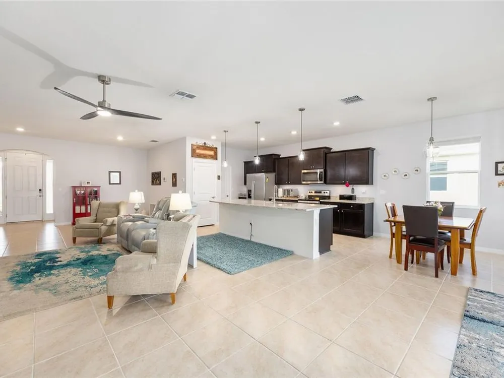 This 2024 home is better than new! Why wait when this has MORE than what you have been looking for. Important features already in place: fully fenced, screen enclosed lanai, window treatments, finished window sills, refrigerator, washer and dryer. And the upgrades include pendant lighting, remote controlled ceiling fans, and the interior paint finish. Open concept split plan with 3 true bedrooms. Your kitchen boasts stone countertops with a double undermounted sink, an island for additional counter space and cabinets, and a closet pantry. The pendant kitchen lighting adds that special touch. There is plenty of space to entertain with a dining area, breakfast nook, large island, and triple sliding glass doors that lead to your screen enclosed lanai. Open the sliders for that refreshing breeze to fill your home and bring the outside in. Tile throughout the living areas. Your primary bedroom features a tray ceiling, walk in closet, and remote controlled ceiling fan with light. The luxurious primary bathroom has stone countertops, 2 undermounted sinks, a tiled step in shower, a bathtub, and a separate water closet. On the other side of your home are 2 guest bedrooms, and a guest bathroom with pendant lighting, tub/shower combo, stone countertop, and undermounted sink. The laundry room has a closet for extra storage space, and the washer and dryer are included. Lawn maintenance is included in the $215/month HOA fee. JB Ranch is a gated community with a resort style pool, pickleball court, bocce ball, a fitness center, while less than 1 mile to grocery shopping. This home comes complete with a smart home package. Transferrable termite bond in place, and survey available to buyer. The property information provided is deemed to be true and correct, however, the accuracy of the information is not guaranteed.
