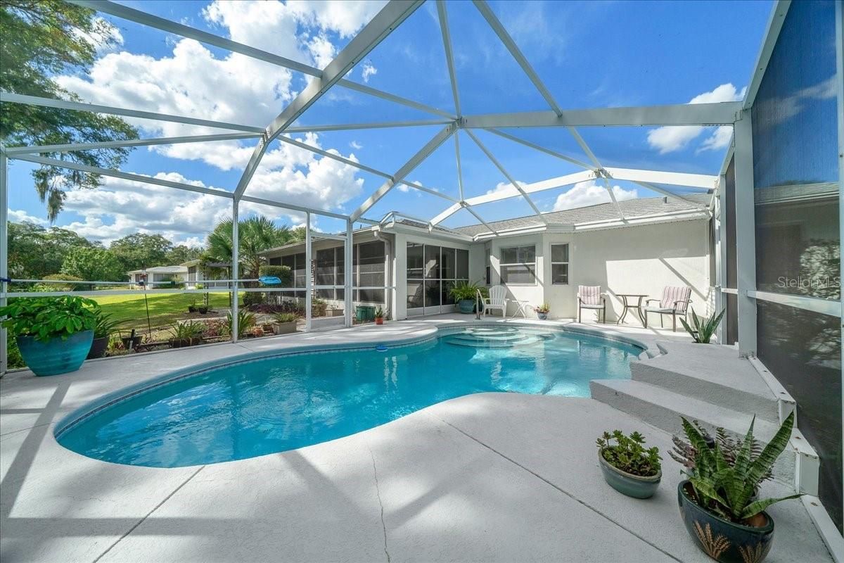 Dive into Florida living with this bright 3BR/2BA pool home! Surrounded by lush landscaping, the sparkling screened pool and oversized lanai are perfect for year-round fun with no rear neighbors. Inside, the split-bedroom plan features an owner’s suite with walk-in closet, private bath, and solar tubes for natural light. The kitchen with stainless steel appliances overlooks the pool and offers space for multiple cooks. Guests enjoy their own wing with two bedrooms and full bath. Inside laundry, abundant storage, roof (2019), AC (2017). On a quiet cul-de-sac street in a sought-after 55+ community. Live close to the Community Clubhouse with loads of amenities, plus shopping, dining & medical nearby. Privacy, convenience & poolside living all in one!