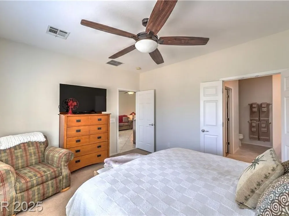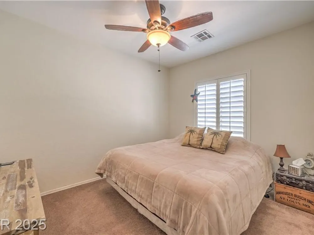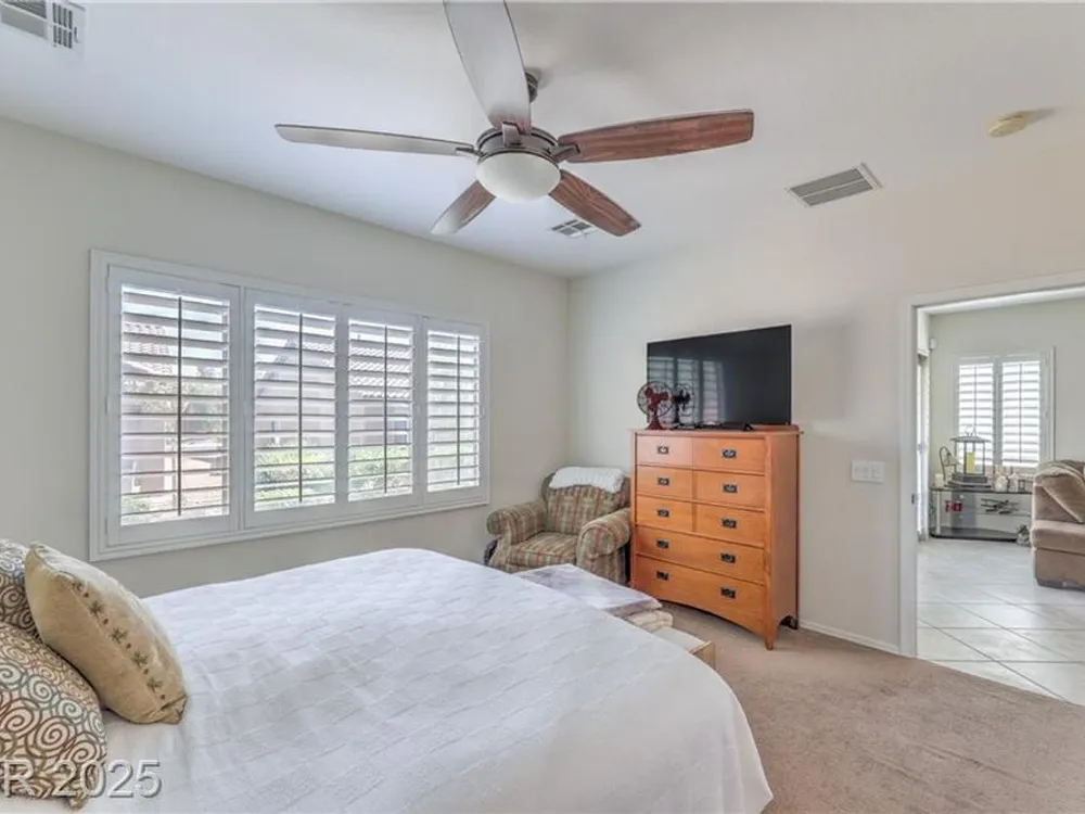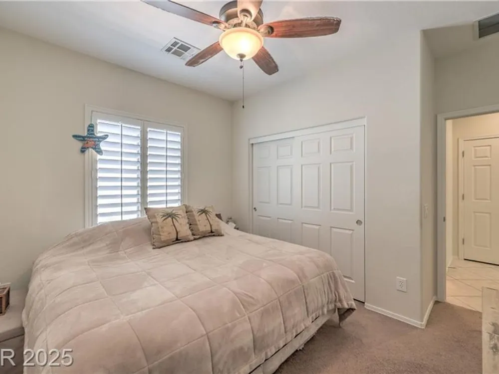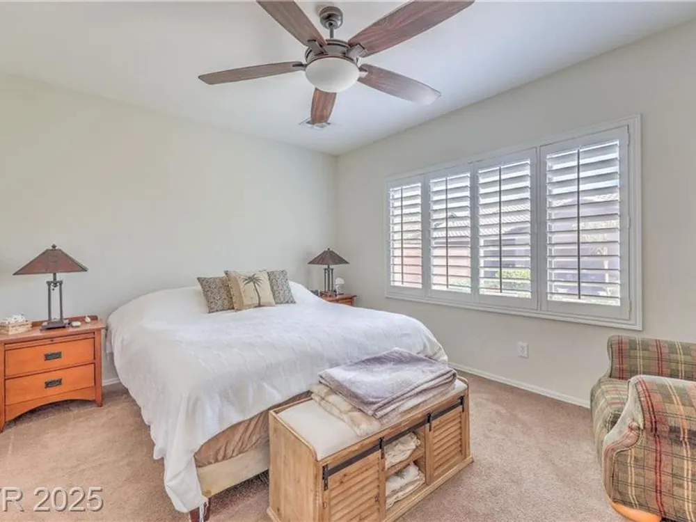 Beautiful 2-Bedroom, 2-Bath Home in Guard-Gated Stallion Mountain Golf Club – 55+ Solera Community. Resort style living! Welcome to this impeccably maintained single-story home, perfectly located just minutes from the world-famous Las Vegas Strip. Step inside to an inviting open-concept layout featuring granite countertops and a reverse osmosis water system. Enjoy elegant plantation shutters and ceiling fans throughout, with tile flooring in all main living areas . The spacious owner’s suite boasts a private bathroom with dual sinks, a walk-in shower, and a huge walk-in closet.Covered patio! This lovingly cared-for home has had only one owner and includes a newer AC unit . Residents of Solera at Stallion Mountain enjoy an array of resort-style amenities, including an 18-hole golf course, clubhouse, community pool & spa, and courts for pickleball, tennis, and bocce ball. Social activities and a vibrant neighborhood atmosphere make it the perfect place to call home.