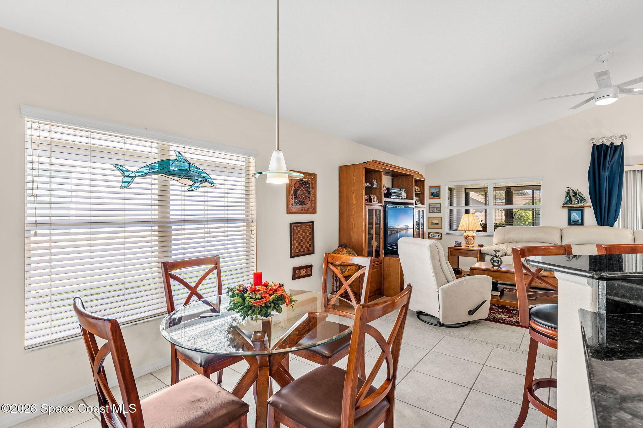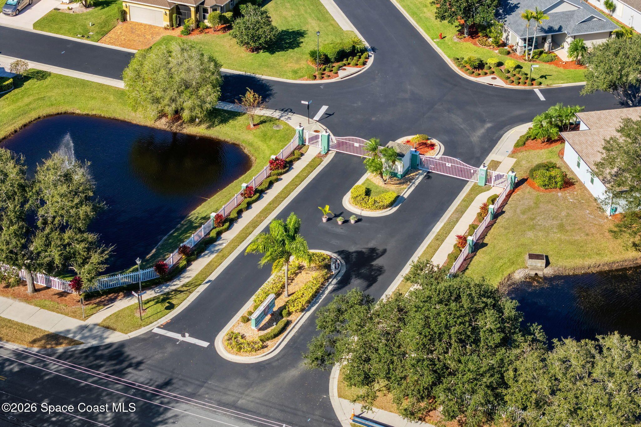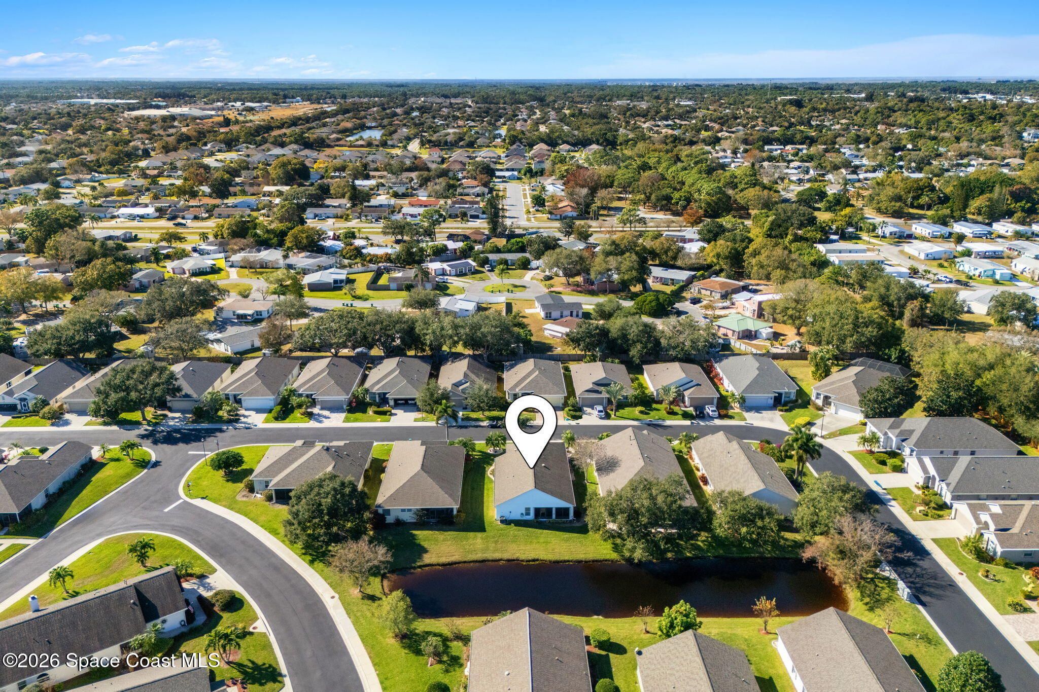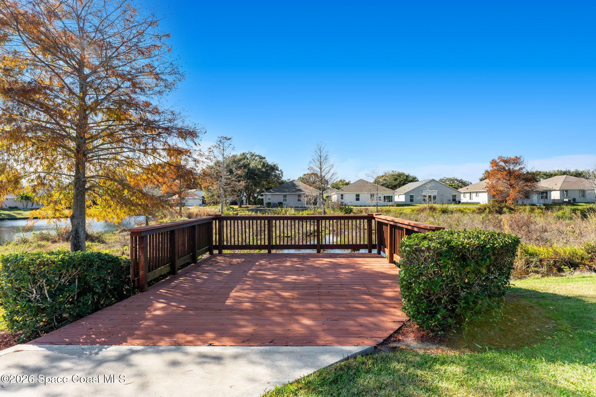 Experience relaxed, Florida living in the Gated 55+ community of Compass Pointe! This 3BD, 2BA home offers peaceful water views! Enter through the charming covered front porch to find, vaulted ceilings, two separate living spaces- a formal living & dining space plus a comfortable family room & breakfast nook. The kitchen is the heart of the home & designed for gathering, featuring a spacious island, granite countertops & bar seating. Wood-look tile enhances the bedrooms & the primary en-suites feature a generous walk-in shower. Enjoy the convenience of a dedicated laundry room & unwind on the vinyl-windowed lanai complete w/ an epoxy coating and overlooking the water. Recent updates include a New Roof & HVAC in 2019. The monthly HOA of $250 covers all lawn care and sprinkler maint. Compass Pointe amenities include a pool, spa, fitness center, clubhouse, putting green, shuffleboard, bocce & a full calendar of activities. Close to golf, shopping, dining, & Beaches!