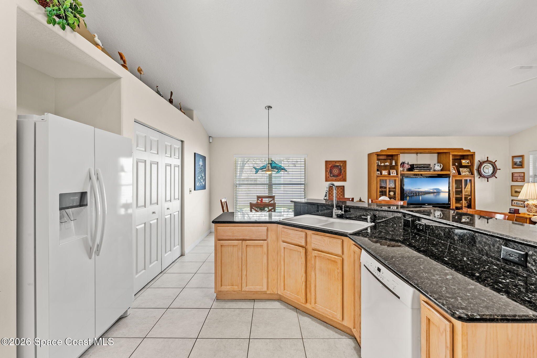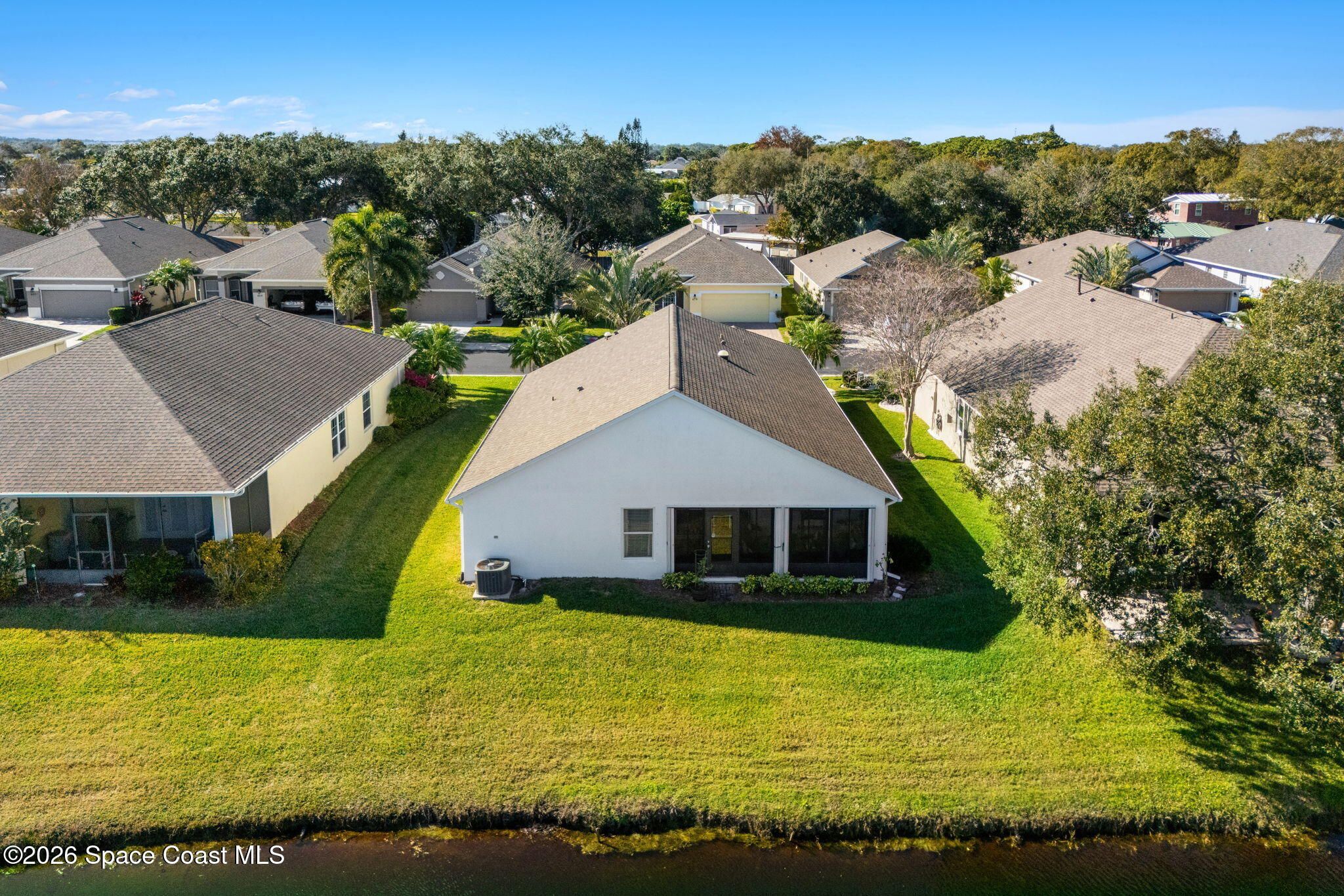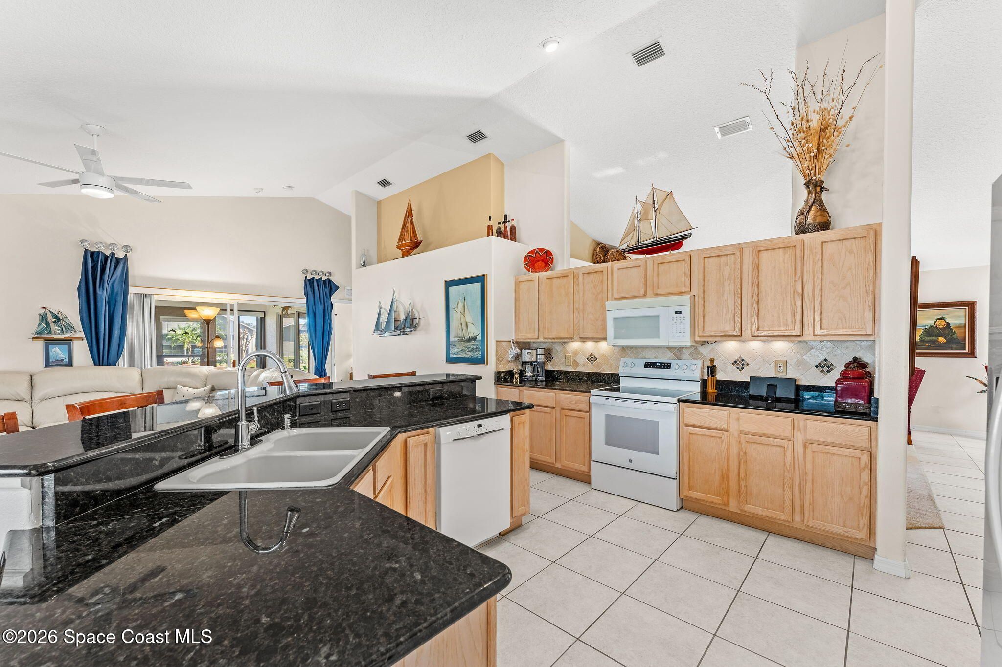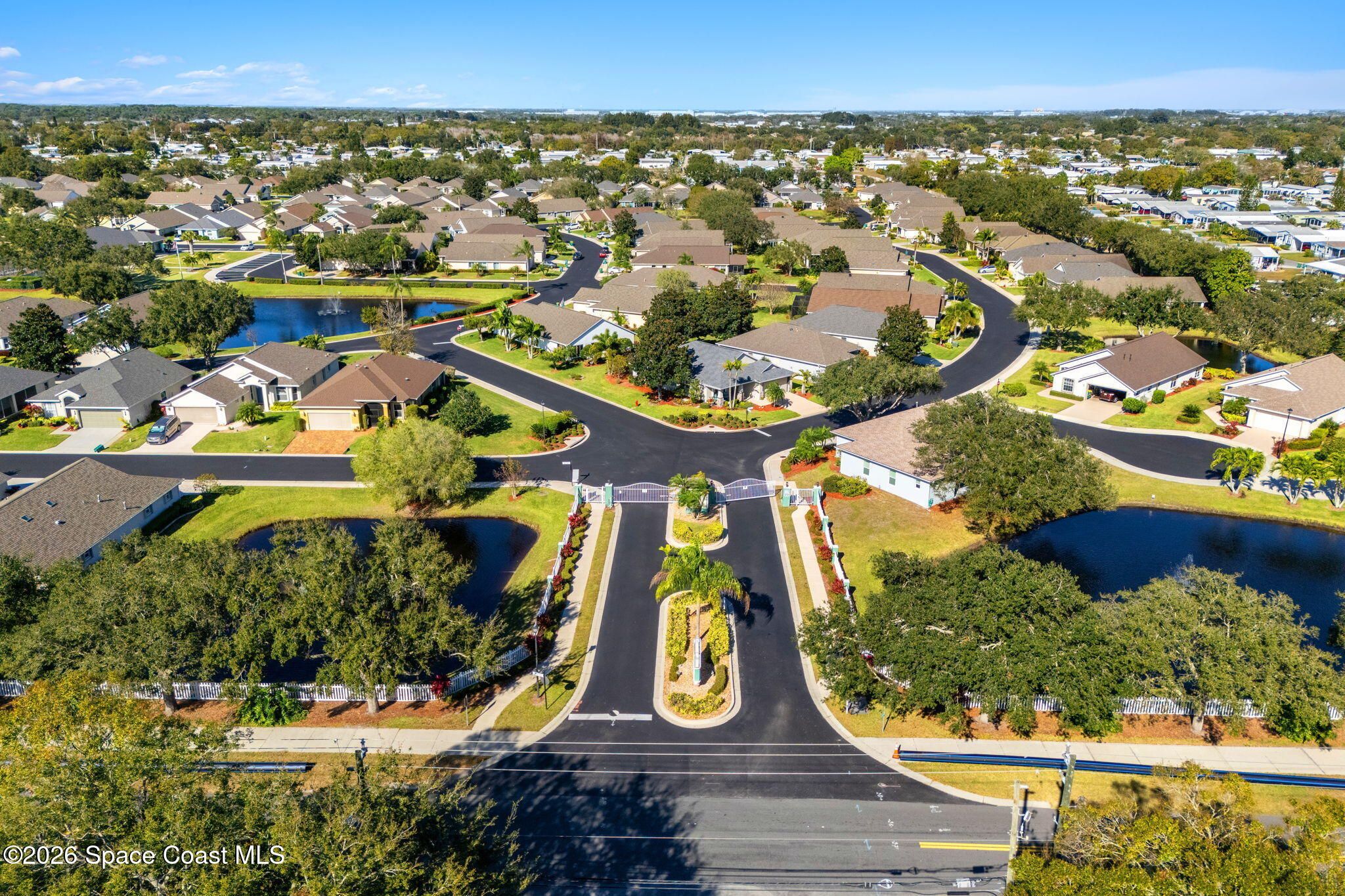Experience relaxed, Florida living in the Gated 55+ community of Compass Pointe! This 3BD, 2BA home offers peaceful water views! Enter through the charming covered front porch to find, vaulted ceilings, two separate living spaces- a formal living & dining space plus a comfortable family room & breakfast nook. The kitchen is the heart of the home & designed for gathering, featuring a spacious island, granite countertops & bar seating. Wood-look tile enhances the bedrooms & the primary en-suites feature a generous walk-in shower. Enjoy the convenience of a dedicated laundry room & unwind on the vinyl-windowed lanai complete w/ an epoxy coating and overlooking the water. Recent updates include a New Roof & HVAC in 2019. The monthly HOA of $250 covers all lawn care and sprinkler maint. Compass Pointe amenities include a pool, spa, fitness center, clubhouse, putting green, shuffleboard, bocce & a full calendar of activities. Close to golf, shopping, dining, & Beaches!