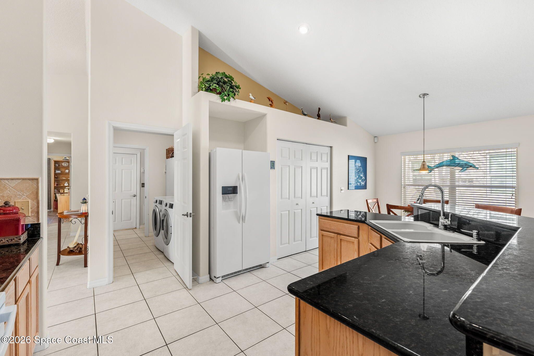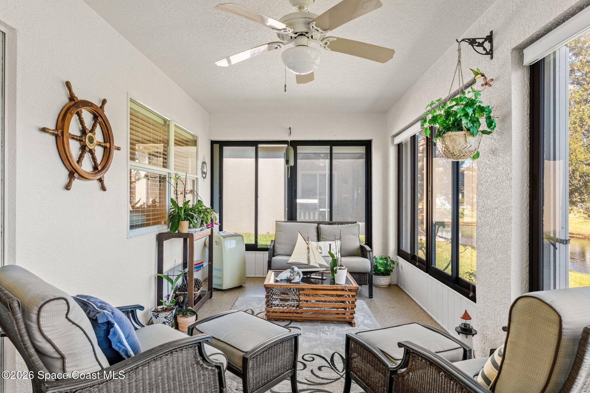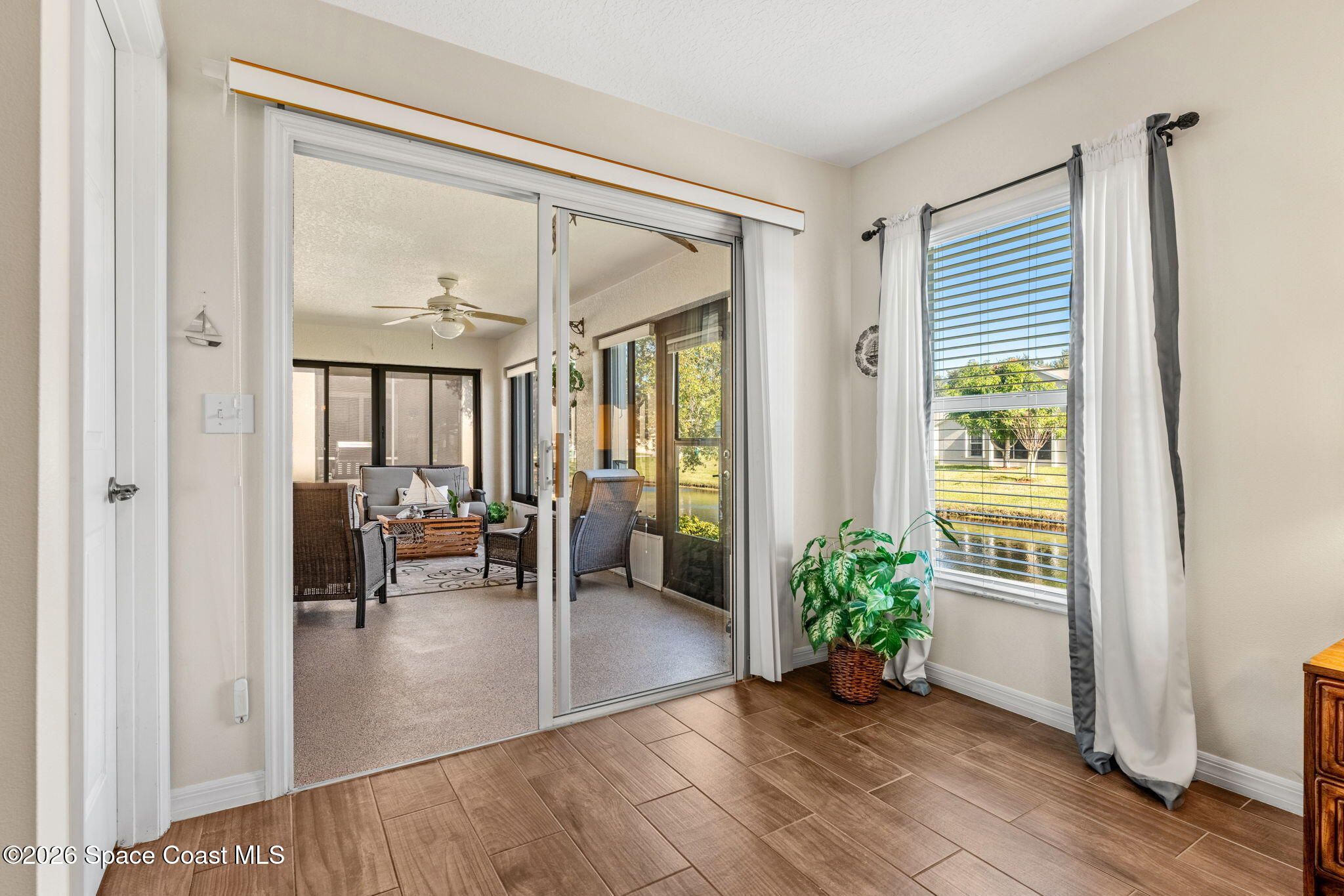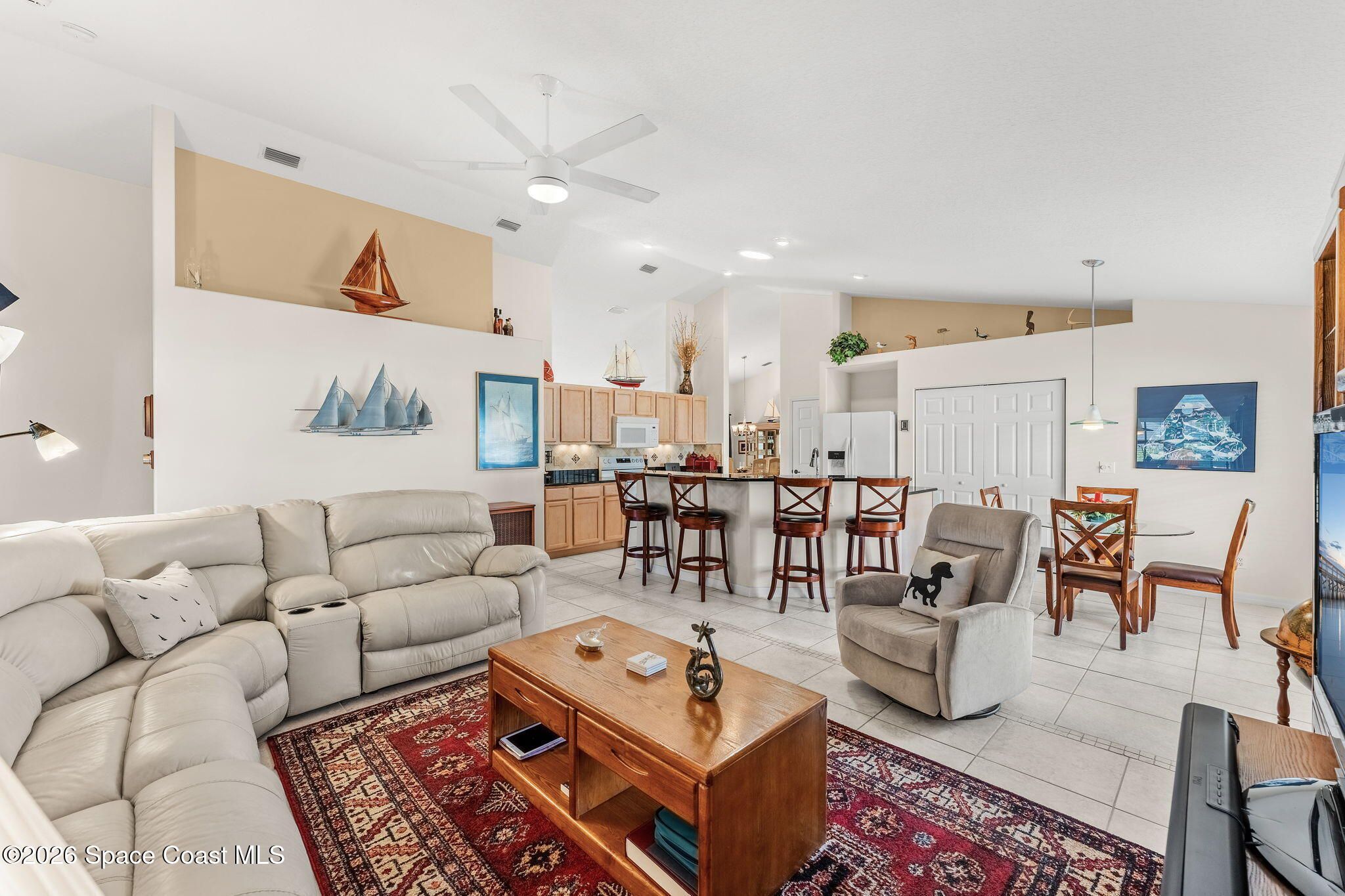 Experience relaxed, Florida living in the Gated 55+ community of Compass Pointe! This 3BD, 2BA home offers peaceful water views! Enter through the charming covered front porch to find, vaulted ceilings, two separate living spaces- a formal living & dining space plus a comfortable family room & breakfast nook. The kitchen is the heart of the home & designed for gathering, featuring a spacious island, granite countertops & bar seating. Wood-look tile enhances the bedrooms & the primary en-suites feature a generous walk-in shower. Enjoy the convenience of a dedicated laundry room & unwind on the vinyl-windowed lanai complete w/ an epoxy coating and overlooking the water. Recent updates include a New Roof & HVAC in 2019. The monthly HOA of $250 covers all lawn care and sprinkler maint. Compass Pointe amenities include a pool, spa, fitness center, clubhouse, putting green, shuffleboard, bocce & a full calendar of activities. Close to golf, shopping, dining, & Beaches!