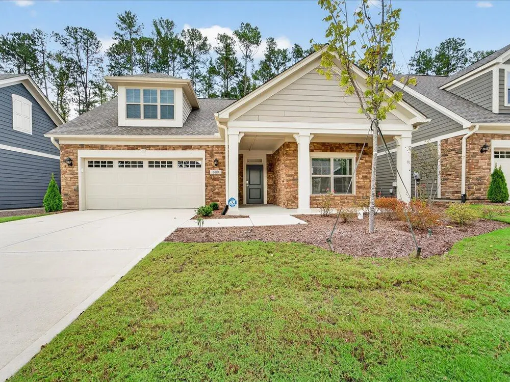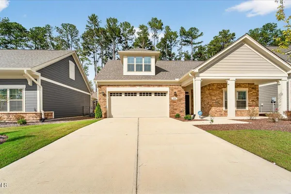 HOME PRICED TO SELL! Practically brand new and move-in ready! Built in 2024, this gorgeous home is located in The Courtyards at West Cary, an active 55+ community offering exceptional amenities including a pool, fitness center, park, sidewalks, and direct access to the greenway system. The thoughtful floor plan features the primary suite and a second bedroom on the main level, with a zero-entry tiled shower in the primary bath for convenience. The gourmet kitchen is a showstopper, complete with a wall oven and microwave, 5-burner gas cooktop, dishwasher, double-bowl stainless sink, quartz countertops, tile backsplash, under-cabinet lighting, and a full pantry. Upgraded wood flooring flows through the kitchen, dining/office, living room, hallways, and storage areas. The oversized laundry room includes a washer and dryer for move-in ease. The spacious primary suite offers a deluxe bathroom with an oversized tiled shower, linen closet, and a large walk-in closet. A private guest suite with its own full bath sits on the opposite side of the home. Upstairs, enjoy a large bonus room or office, plus a third bedroom and full bath—perfect for visitors or hobbies. Sun-filled living spaces throughout the home create a warm, inviting atmosphere. Fenced courtyard perfect for private relaxation. Conveniently located near shopping, dining, RDU airport, and more. Yard maintenance is included in the monthly HOA, so you can enjoy a low-maintenance, stress-free lifestyle.