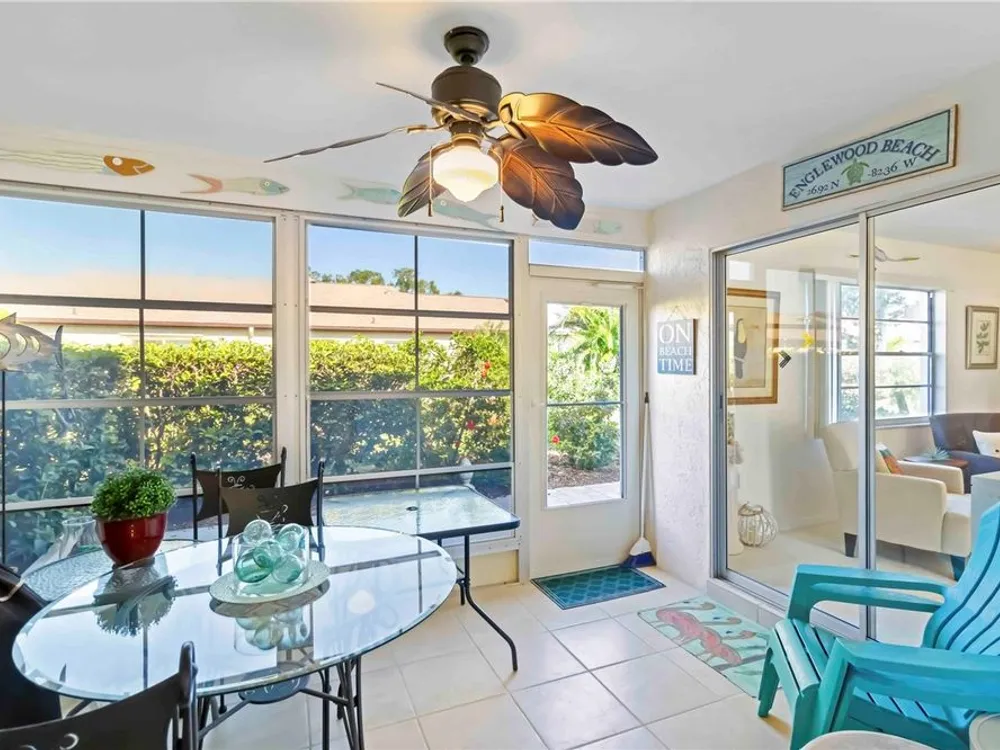 Move right in to this 2-bedroom, 2-bathroom condo in the vibrant 55+ community of Foxwood. This turn-key furnished home offers a perfect blend of comfort and convenience, ideal for those who dream of a relaxed Florida lifestyle. The roof was replaced in 2023, A/C in 2020 and kitchen nicely updated featuring granite counters. Located in an X Flood Zone - so no flood insurance is required. This home is in close proximity to Manasota Key Beach, Dearborn St. in downtown Englewood, numerous golf courses, excellent restaurants, and a plethora of shopping options. Outdoor enthusiasts will delight in the abundance of activities available. Within the Foxwood community itself, you'll find an array of amenities to enjoy. It’s just a short walk or golf cart ride to the fun-filled clubhouse which offers different activities daily, ensuring there's always something exciting happening. Take a refreshing dip in the heated pool, engage in the popular sport of pickleball, or challenge your friends to a game of tennis. Furthermore, the community is golf cart-friendly!! This home and community have everything you need to enjoy life!