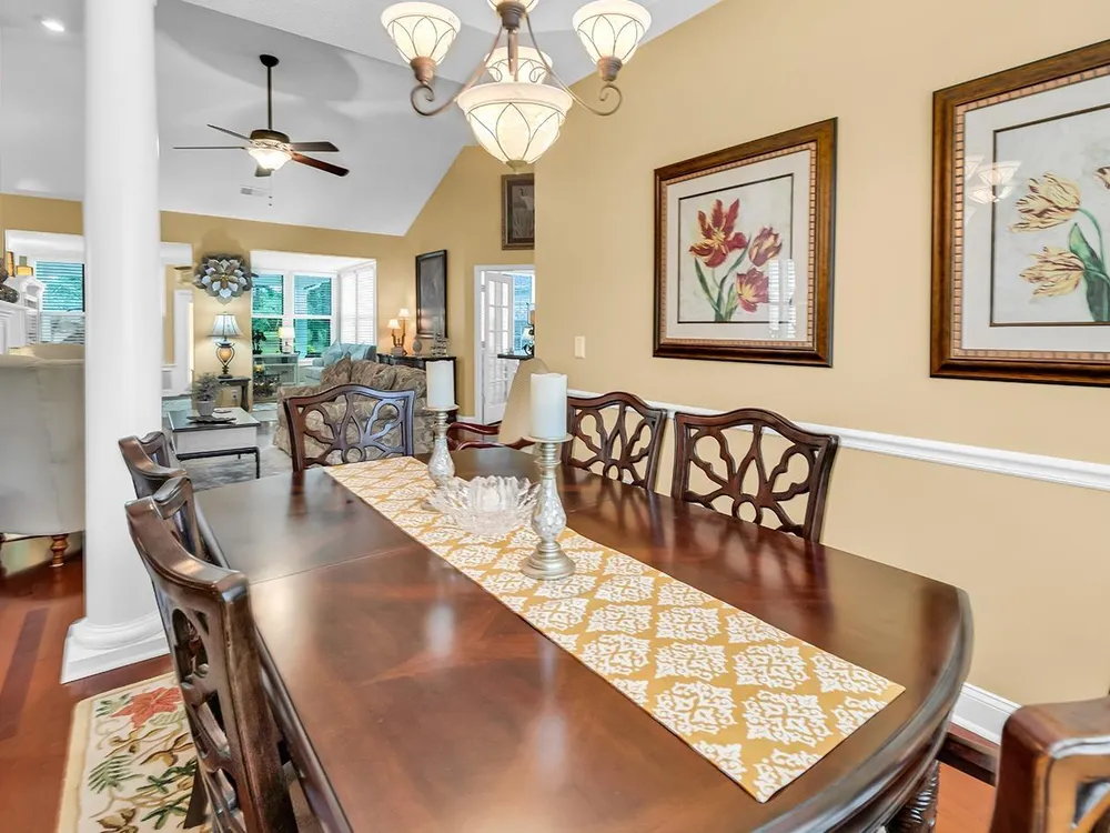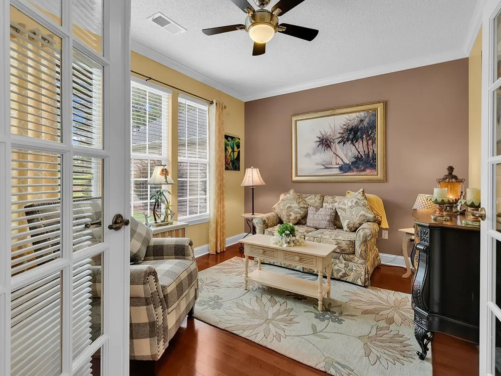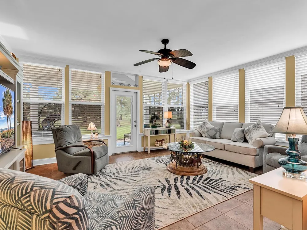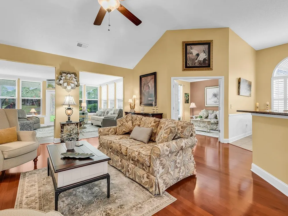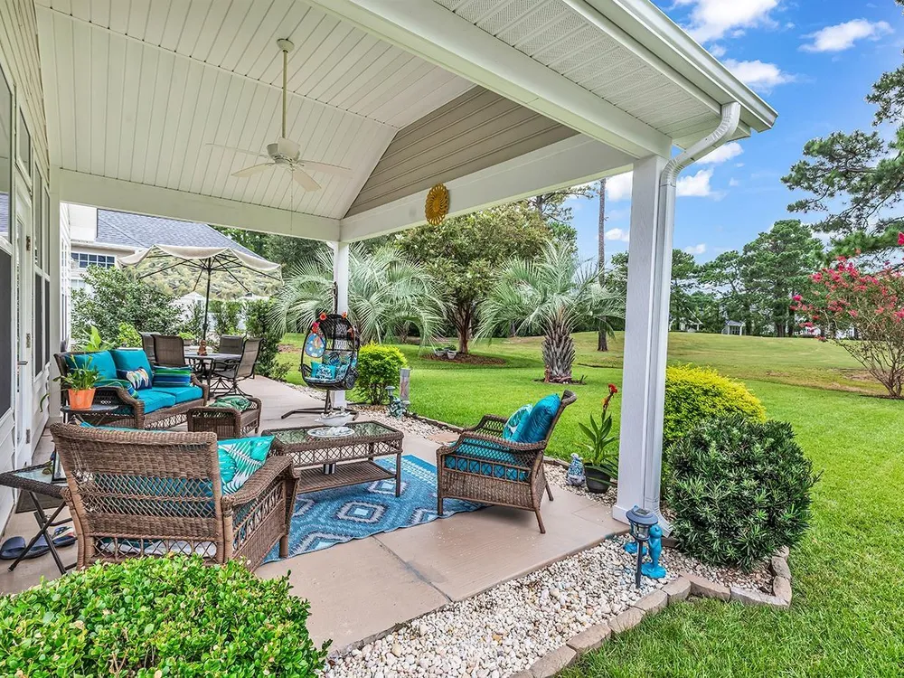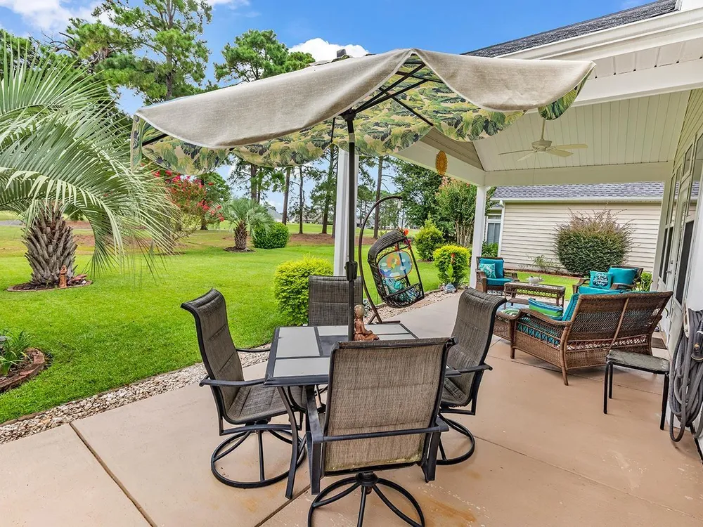 Situated in the highly sought-after 55-plus community of Myrtle Trace South, this meticulously maintained, move-in-ready residence features three bedrooms, two bathrooms, an office/den, and a two-car garage, all set on an aesthetically pleasing golf course lot. Myrtle Trace South is a well-established neighborhood that offers amenities such as sidewalks, a community swimming pool, and a clubhouse. Upon entering this charming Annandale model, one is immediately greeted by a spacious open floor plan complemented by an abundance of natural light. To the left of the entrance, there are two adequately sized bedrooms, each equipped with ample closet space and ceiling fans, and separated by a full bathroom. To the right, the formal dining room is distinguished by a high ceiling, chair rail, and abundant natural light. The expansive Great Room boasts wood flooring, a fireplace, and a vaulted ceiling. Progressing through the Great Room on the right side of the home leads to a bonus room that can serve multiple functions, including an office, den, or library. The well-appointed kitchen is expansive and features upgraded cabinetry, stainless steel appliances, granite countertops, tile flooring, a breakfast bar, a breakfast nook, and a pantry. The primary bedroom, accessible from the Great Room, is characterized by a tray ceiling, wood flooring, large windows that provide a picturesque view of the backyard, and a walk-in closet. The primary bathroom is equipped with double sinks, a walk-in shower, and tile flooring. Adjacent to the Great Room, the spacious Carolina Room is illuminated by multiple windows and features a ceiling fan and tile flooring. This room provides access to the extensive covered patio, which includes a ceiling fan and additional concrete space suitable for grilling. This patio offers an ideal location for relaxation, enjoying the sights of golfers, or perusing a book. Significant updates to the property include a roof replacement in 2017, along with the addition of a roof extension to the patio in the same year. The HVAC system was upgraded in 2019, and a termite bond is currently maintained. Myrtle Trace South is known for its low homeowner association fees, which encompass lawn cutting. Conveniently located between Highways 501 and 544, this home provides easy access to Conway Medical Center, Coastal Carolina University, Burning Ridge Golf Course, Historic Conway, and the attractions of Myrtle Beach, including the Atlantic Ocean. All data, measurements, and square footage are approximate and not guaranteed by the seller or listing office/agent. Buyers are encouraged to verify all information independently.