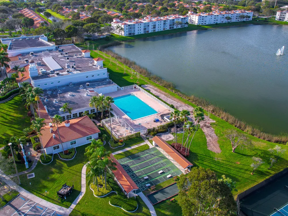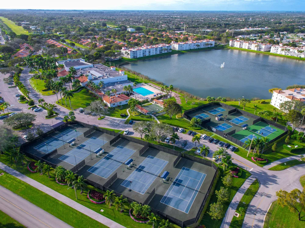 Welcome to the highly sought after community of Huntington Point, this spacious first floor unit features tile throughout, a newer AC, brand new HW, spectacular water views and conveniently located to all amenities. Huntington Pointe, is an active community located 15 minutes from downtown Delray and the Ocean. It features a 24/7 manned gate for security. The clubhouse, recently renovated, offers diverse activities, including an indoor and lakeside Olympic pool, along with three satellite pools. An onsite cafe caters to breakfasts and lunches. Residents can join clubs, attend fitness classes, and access a state-of-the-art fitness center with aerobics and dance studios. Outdoor amenities include pools, pickleball and tennis courts, bocce ball, shuffleboard, and a putting green.