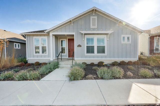 Nearly new home $60,000 under builder's price for the Altair floor plan in coveted 55+ community. Across the street pickleball ball courts & 10,000 sqft community center/club house. Brimming with upgrades including; single level living, beautiful ornate custom cabinets & hood, steel appliances, gas range,granite countertops, plantation shutters, 9'+ ceilings, 8' doors, LVP water resistant flooring, high end carpet, beatiful gas fireplace & mantle, maintenance free front & backyard maintained by HOA, all bedrooms have master bathrooms, bonus room/den, sleek tile, fans & pendant and recessed lighting, tankless water heater, washer & dryer included, fully fenced privacy. Enjoy the Daybreak lifestyle with golf simulator, pickleball, large community kitchen & gathering areas, exercise rooms, pools & hot tubs, lake recreation & fishing, walking trails & parks. Close to shopping & etertainment