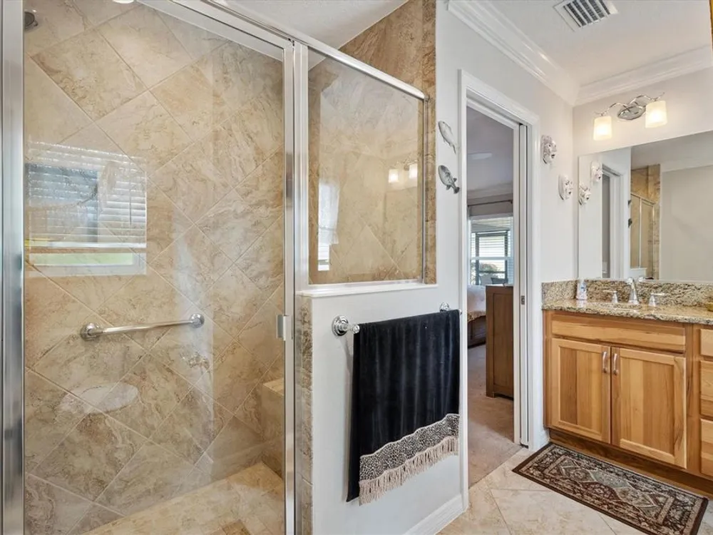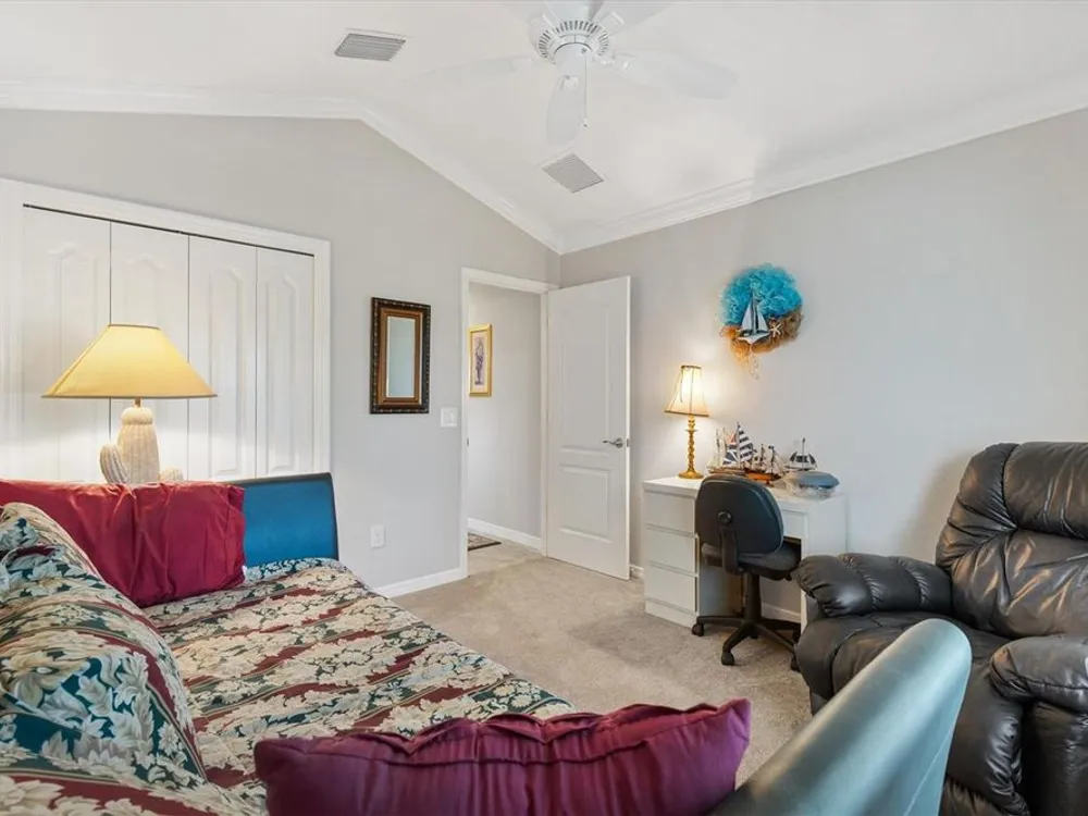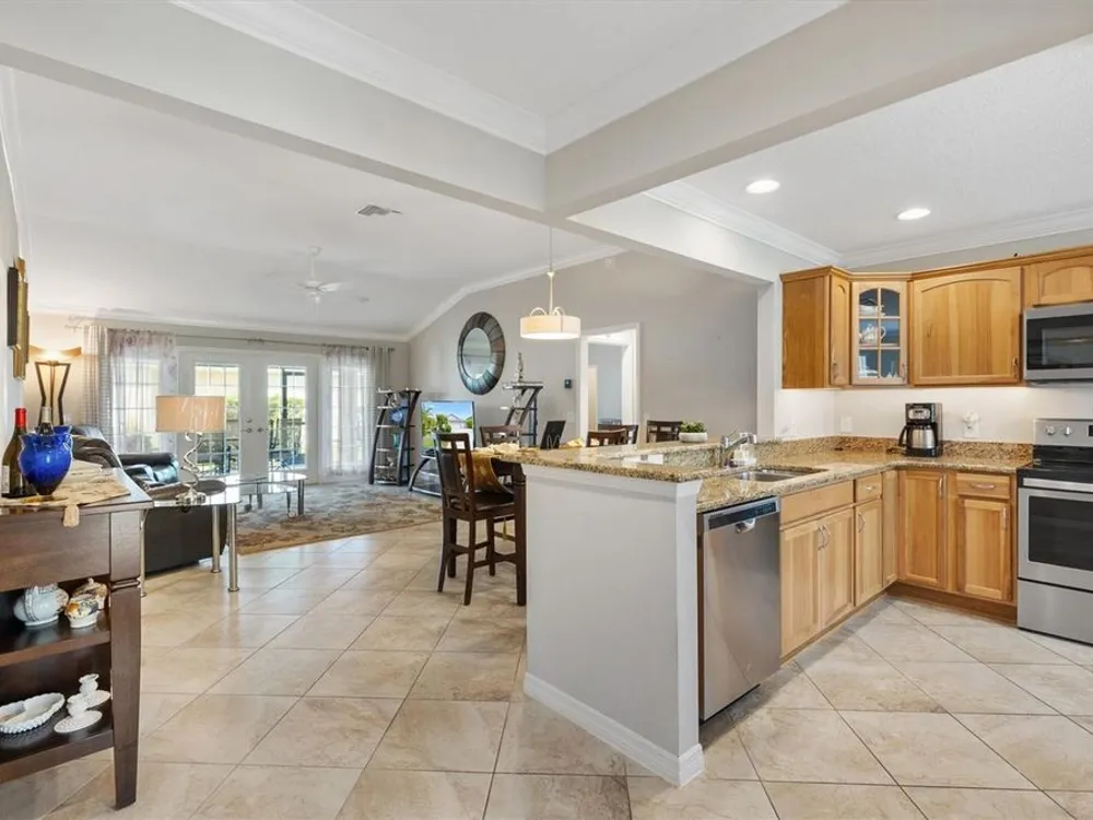 - Ceiling Fan(s), Crown Molding, Eat-in Kitchen, High Ceilings, Split Bedrooms, Stone Counters, Vaulted Ceiling(s), Walk-In Closet(s), Window Treatments