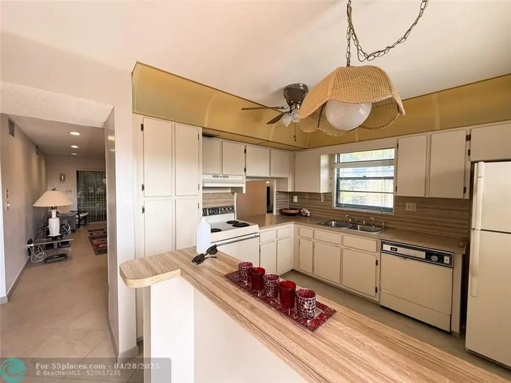 Welcome to your beautiful home in this 55+ community! This centrally located gem is just minutes away from everything you need, from the beach to the shopping center and airports. Step inside, fall in love and enjoy the modern contemporary design. The spacious living and dining rooms, and a fully functional kitchen. Sip your morning coffee and enjoy the gorgeous garden view from your screened balcony in a private corner of this fullyspacious 2/2 unit. With over 1,200 sq ft of living space, this home boasts a spacious walk-in closet in the Master,and a stackable washer/dryer. The convenience of an assigned parking spot. Amenities include 2 heater pools, tennis courts, a shuffleboard, billiards and a clubhouse.