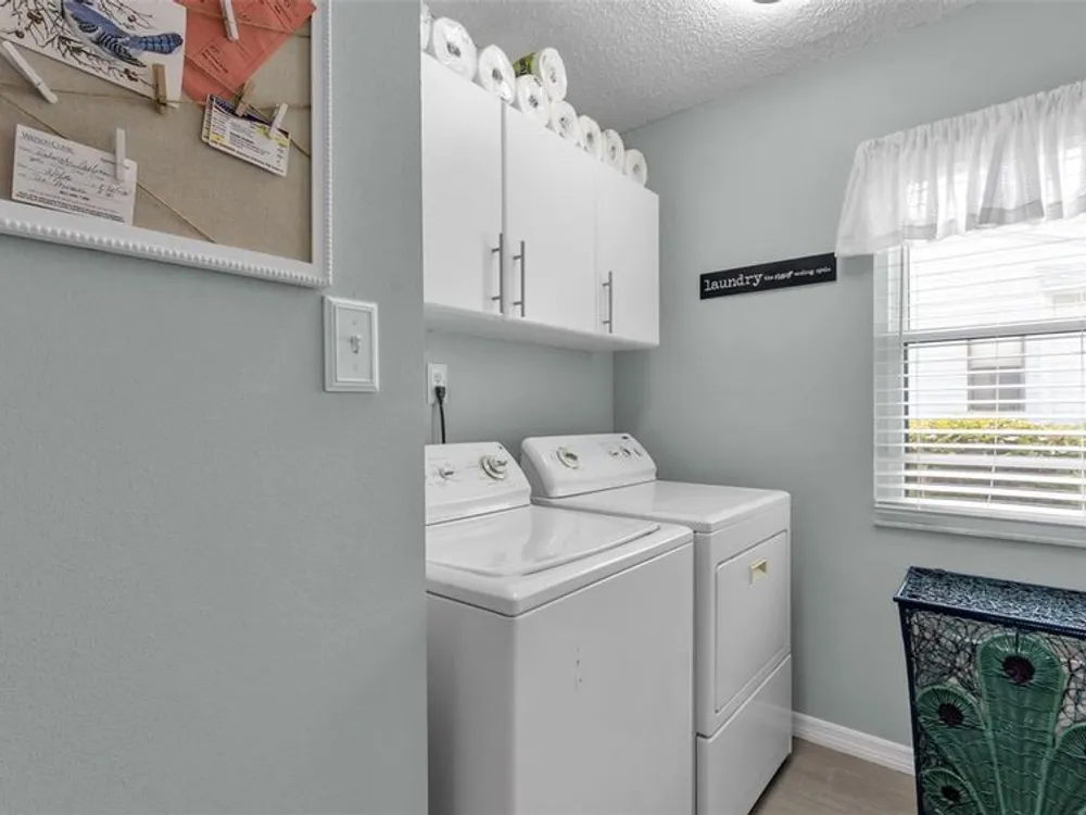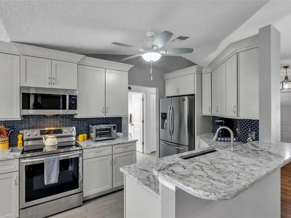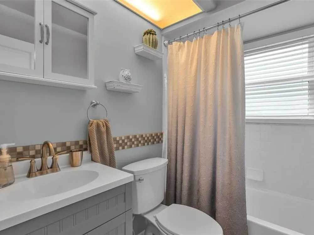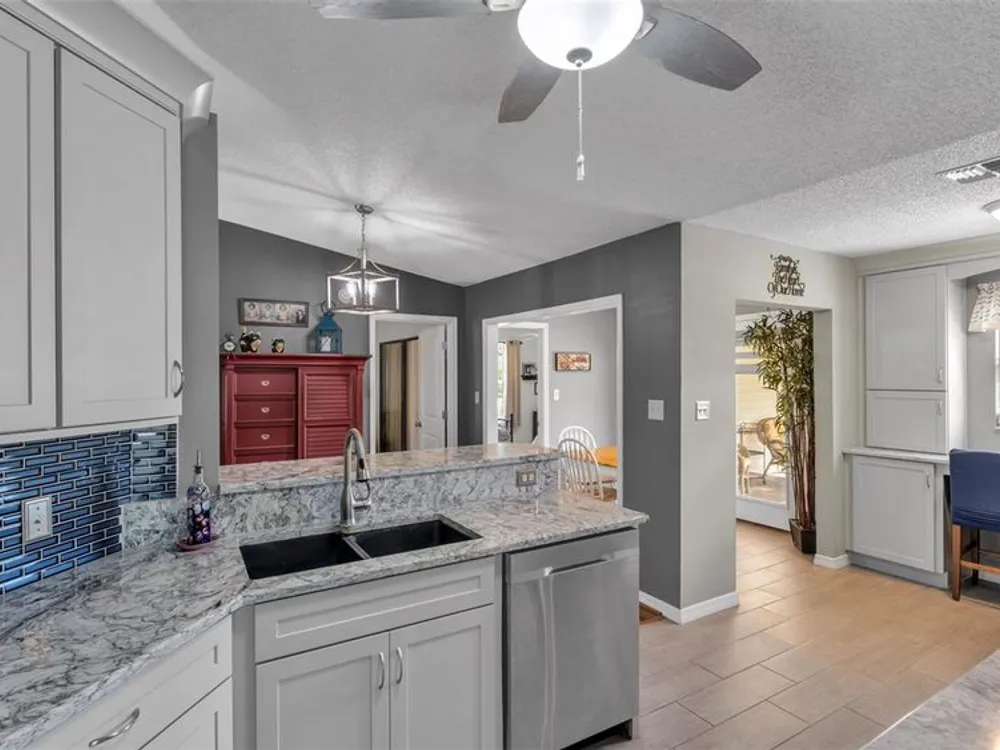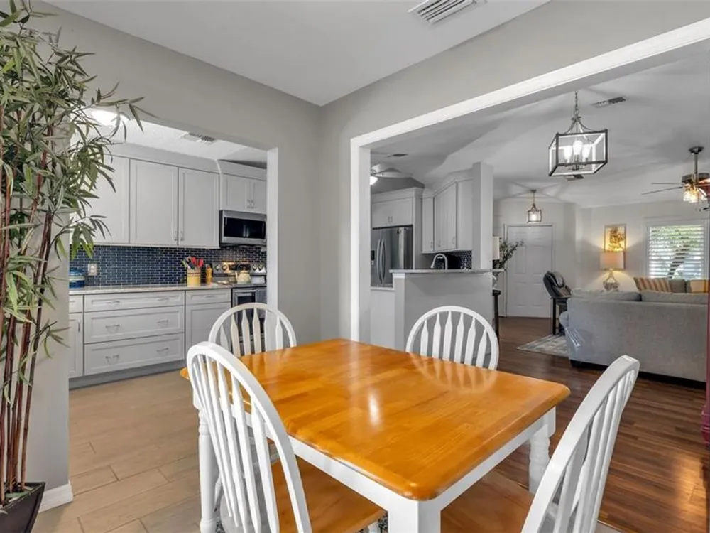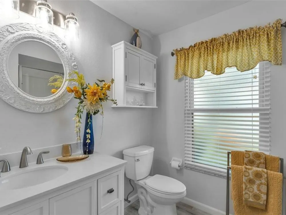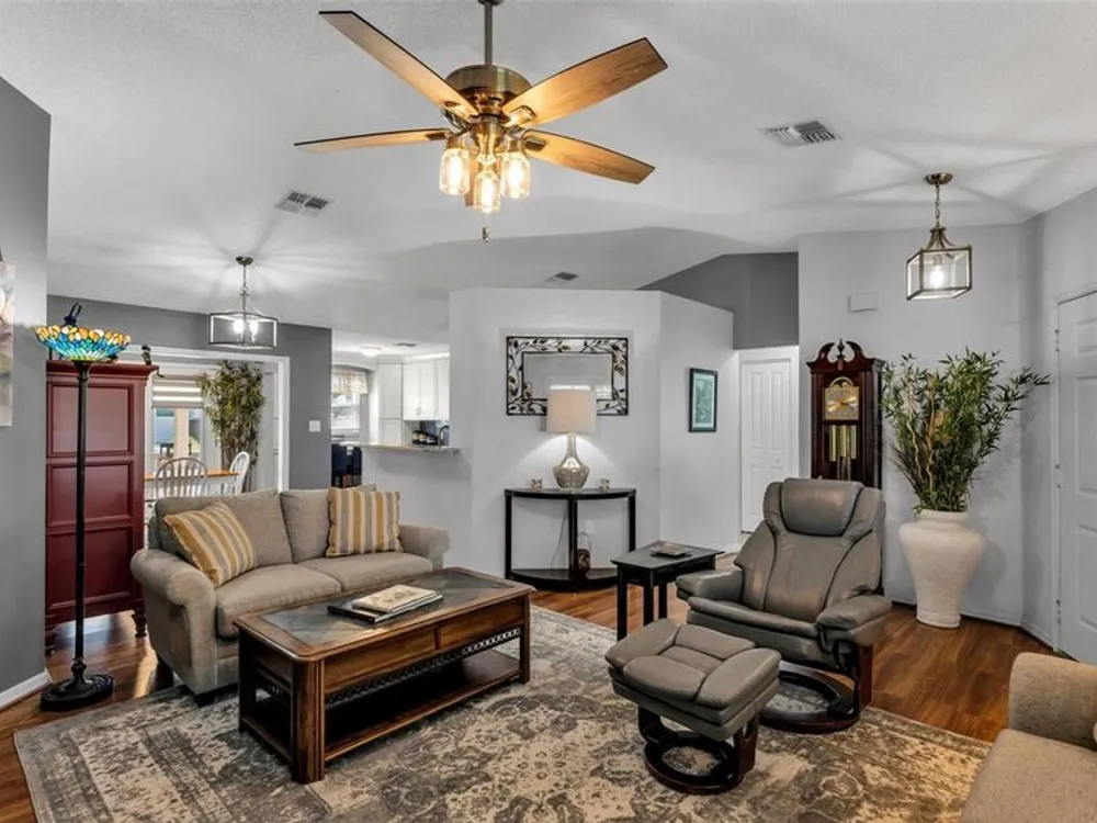 This is the pristine home you’ve been looking for in Central Florida! Presenting 6096 Kittiwake Drive… a move-in-ready, beautifully renovated 3 bedroom, 2 bathroom home located in sought-after 55+ community “Sandpiper Golf & Country Club.” As you walk up the paver driveway, notice the St. Augustine grass, concrete bordered landscaping, paver walkway around the house, new garage screen and fresh paint. Step inside to the spacious living room and enjoy the high ceilings, natural light and quality kitchen with all wood soft-close custom cabinets, quartz counters, new Samsung stainless appliances and tiled backsplash. French doors in the dining area lead out onto the newly installed paver patio with retaining wall, grilling area and awnings for shade. Imagine enjoying coffee here in the mornings or those famous Florida sunsets in the evenings! Back inside, the primary suite has double closets and ensuite bathroom with walk-in shower. The guest bedroom and bathroom are located on the other side of the kitchen, near the convenient indoor laundry room. The third bedrooms is positioned at the back of the home and can be private or open to the primary suite, making the perfect hobby room, home gym, office space, etc. Other features include luxury vinyl plank, porcelain floor tile, specialty vinyl flooring in the garage, brand new 50 gallon water heater, new roof in 2019 with wind mitigation certificate to save on insurance costs, HVAC installed in 2019, new vinyl windows, new bathroom vanities and high toilets, many new light fixtures, new doors & hardware, plus window treatments throughout. Sandpiper Golf & Country Club is an active and popular community featuring two clubhouses, pool tables, fitness center, tennis/pickleball courts, shuffleboard, a restaurant and manicured golf course. Your quarterly dues also include internet and cable. The location is ideal with easy access to the interstate, medical facilities, restaurants, sporting events, theme parks and area attractions. Set up your private tour today!