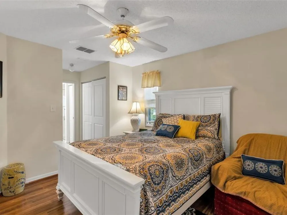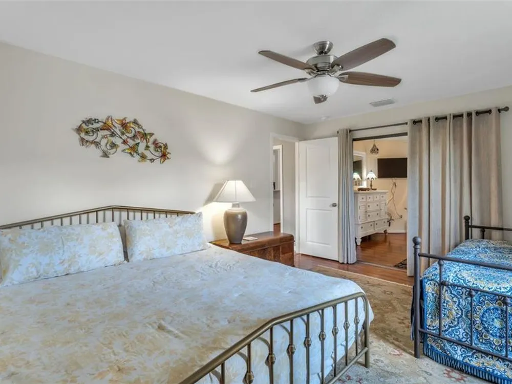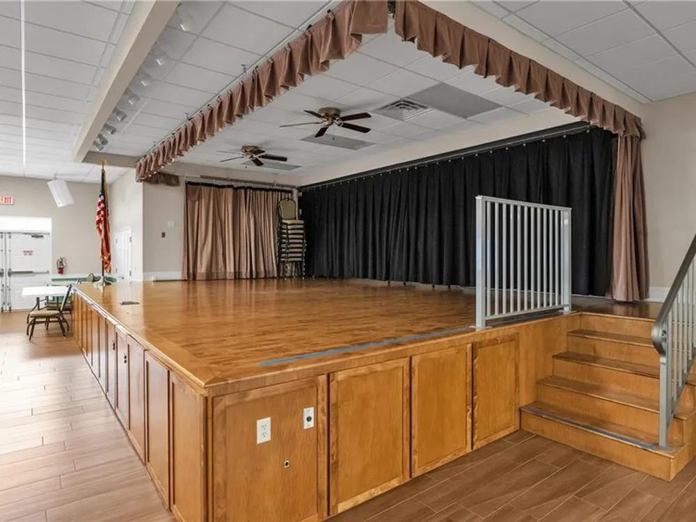 - Built-in Features, Ceiling Fan(s), Eat-in Kitchen, Living/Dining Room, Main Level Primary, Solid-Wood Cabinets, Split Bedrooms, Stone Counters, Vaulted Ceiling(s), Window Treatments