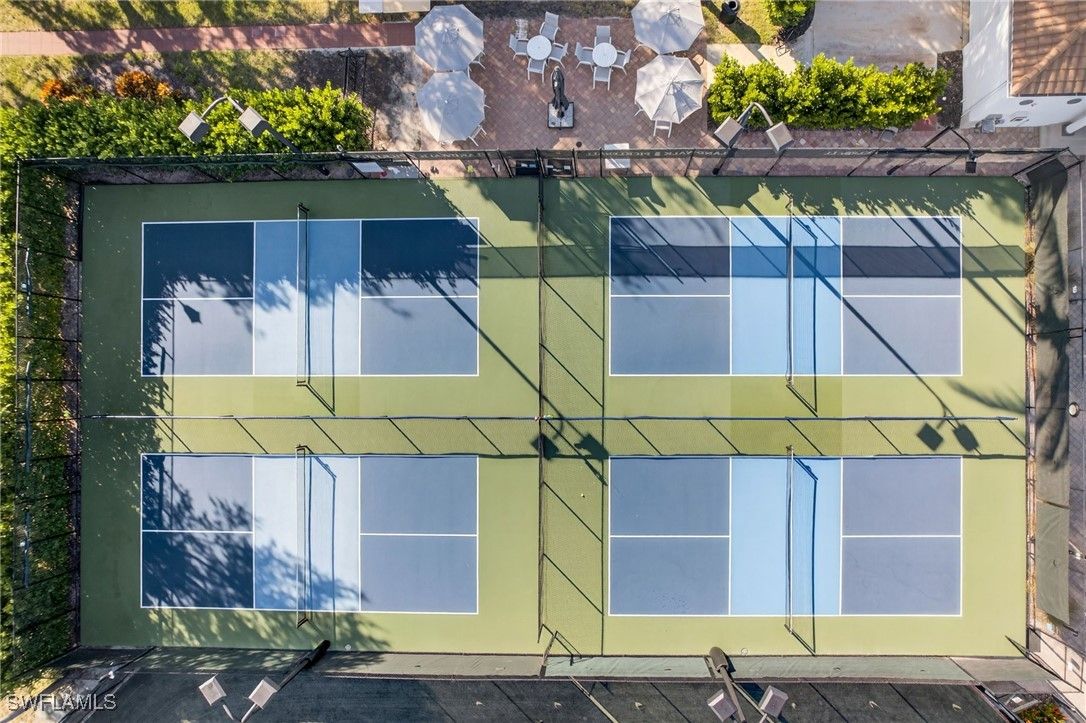 - Includes: Bocce Court, Bike Storage, Business Center, Cabana, Clubhouse, Fitness Center, Hobby Room, Library, Pickleball, Pool, Putting Green(s), Restaurant, Spa/Hot Tub, Sidewalks, Tennis Court(s), Trail(s), Vehicle Wash Area, Management