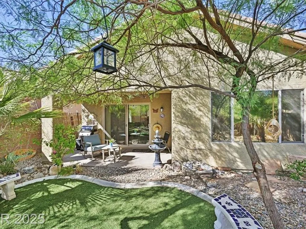 Charming 2-bedroom “Morgan” model featuring a Private, fully enclosed Backyard with a welcoming Courtyard entry and just a short walk to the Clubhouse. Inside, you’ll find an inviting layout with tile flooring, ceiling fans throughout, a cozy kitchen with breakfast nook, pantry, newer AC and a new whole-house water filtration system.The backyard offers a peaceful retreat with mature landscaping—perfect for relaxing or entertaining. This move-in ready home is nestled in the vibrant Solera at Stallion Mountain community, where you’ll enjoy resort-style amenities including a pool, spa, clubhouse, fitness center, pickleball and tennis courts, plus a full calendar of social activities.