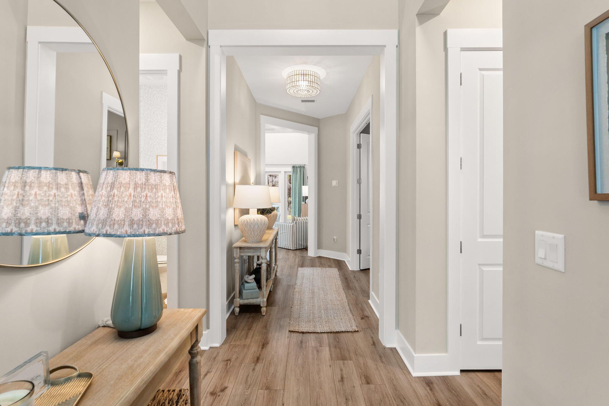 Positioned in NatureWalk at Watersound Origins, 61 Anastasia Circle is an upgraded Orchid floorplan with 4 bedrooms, 3.5 baths, an office, and loft, with thoughtful customizations throughout. Designer lighting, framed wall molding, curated wallpaper accents, and cohesive finishes elevate the home beyond typical builder grade. The kitchen features a 10 foot painted island, custom cabinetry details, and opens seamlessly to the main living area for everyday living and entertaining. The primary suite is spacious and inviting with refined finishes and statement lighting. Upstairs includes a loft and built in bunk space. Enjoy covered front and back porches, a large and private backyard, and a location that offers pools, trails, golf, and quick access to 30A.