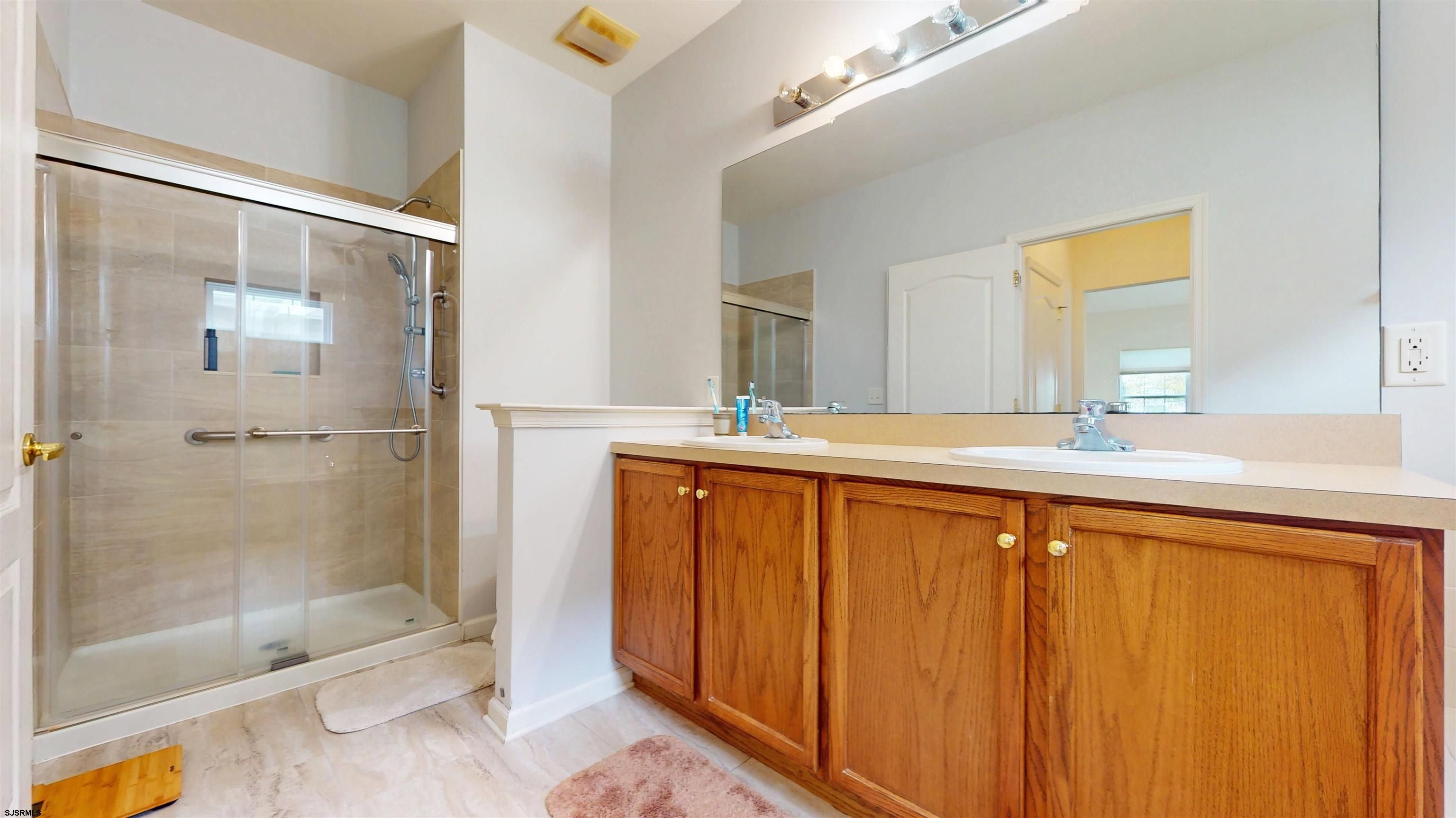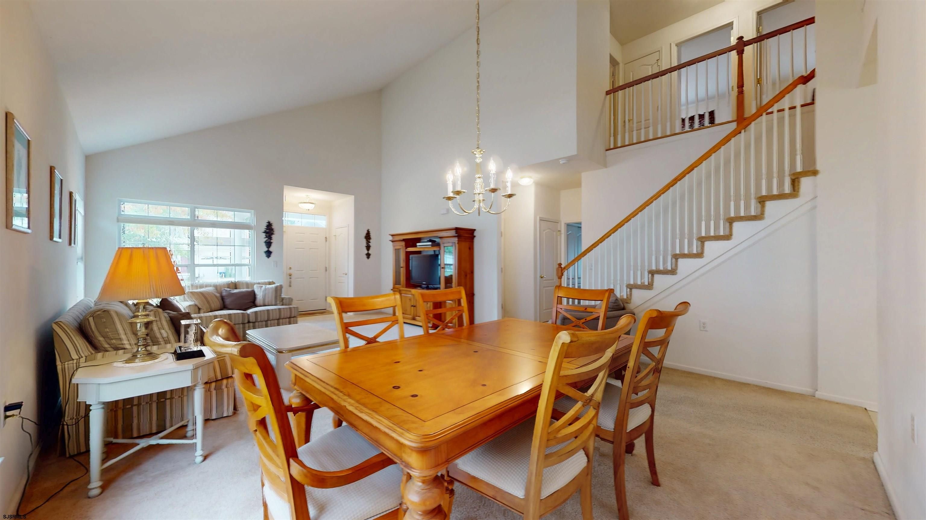 Welcome to Village Grande at Little Mill, a centrally located & highly sought-after 55+ active adult community in Egg Harbor Township. This beautifully maintained 2 story Coventry Model offers four bedrooms and three full baths with an ideal layout featuring the spacious primary suite on the first floor. The primary retreat boasts tray ceilings, two walk-in closets, and a newly renovated bathroom with dual sinks, a soaking tub, new flooring, and a brand-new shower. A second bedroom and full hall bath are also located on the main level, along with a dramatic & spacious living and dining room with vaulted ceilings. The kitchen with a center island, bay window and beautiful cabinetry with crown moldings opens to a bright sunroom and a cozy den with a real wood burning fireplace, perfect for year-round enjoyment or your snow-bird lifestyle. Upstairs, you’ll find two additional bedrooms and a full bath, creating the perfect space for guests. High ceilings throughout enhance the home’s open and airy feel. Outdoor living is equally inviting with an extra-large rear patio. Just a short walk to the clubhouse, you’ll enjoy resort-style amenities including indoor and outdoor pools, a Jacuzzi, fitness center, billiards and card rooms, tennis courts, and plenty of pickleball. Recent updates provide peace of mind with a new HVAC system (2023, serviced 2025), electrical panel (2021), and water heater (2022). Offering both comfort, convenience, and low maintenance this popular model is a blank slate for decorating and is move-in ready and waiting for its next owner.