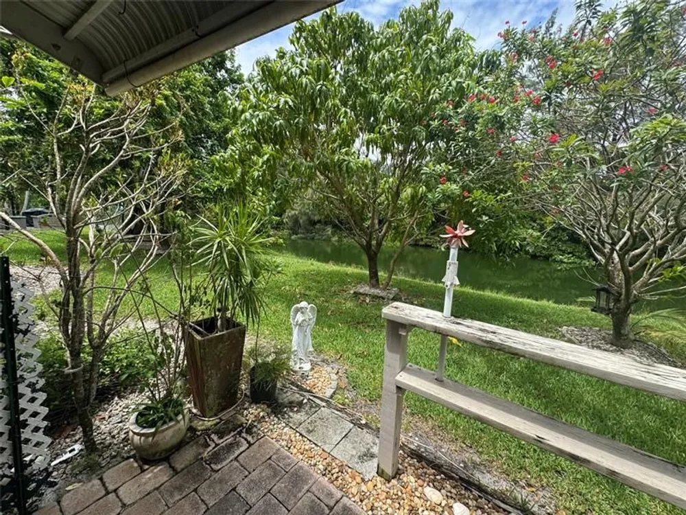 This charming residence FULLY FURNISHED features: Upgrades throughout, including hurricane-impact windows and a mirrored dining area that enhances natural light. A spacious enclosed patio overlooking the peaceful canal perfect for morning coffee, reading, or simply enjoying tranquil water views. A half-bath for added convenience and a comfortable bedroom retreat with nearby full bath.