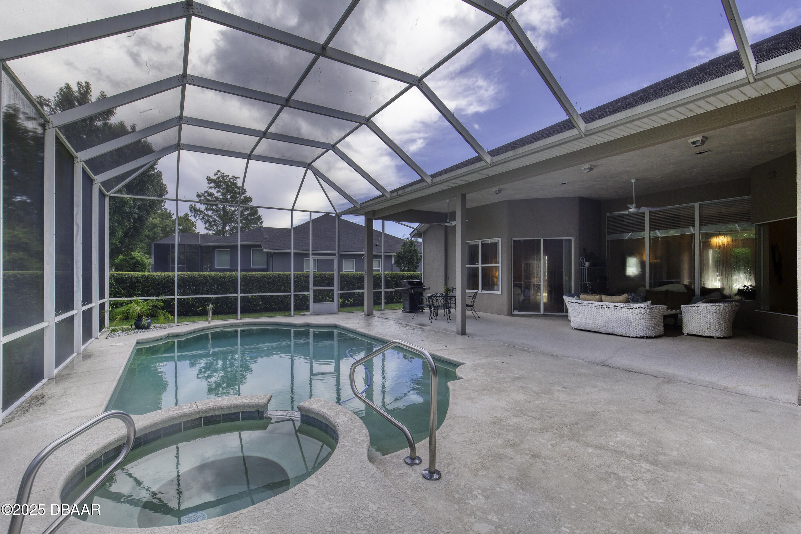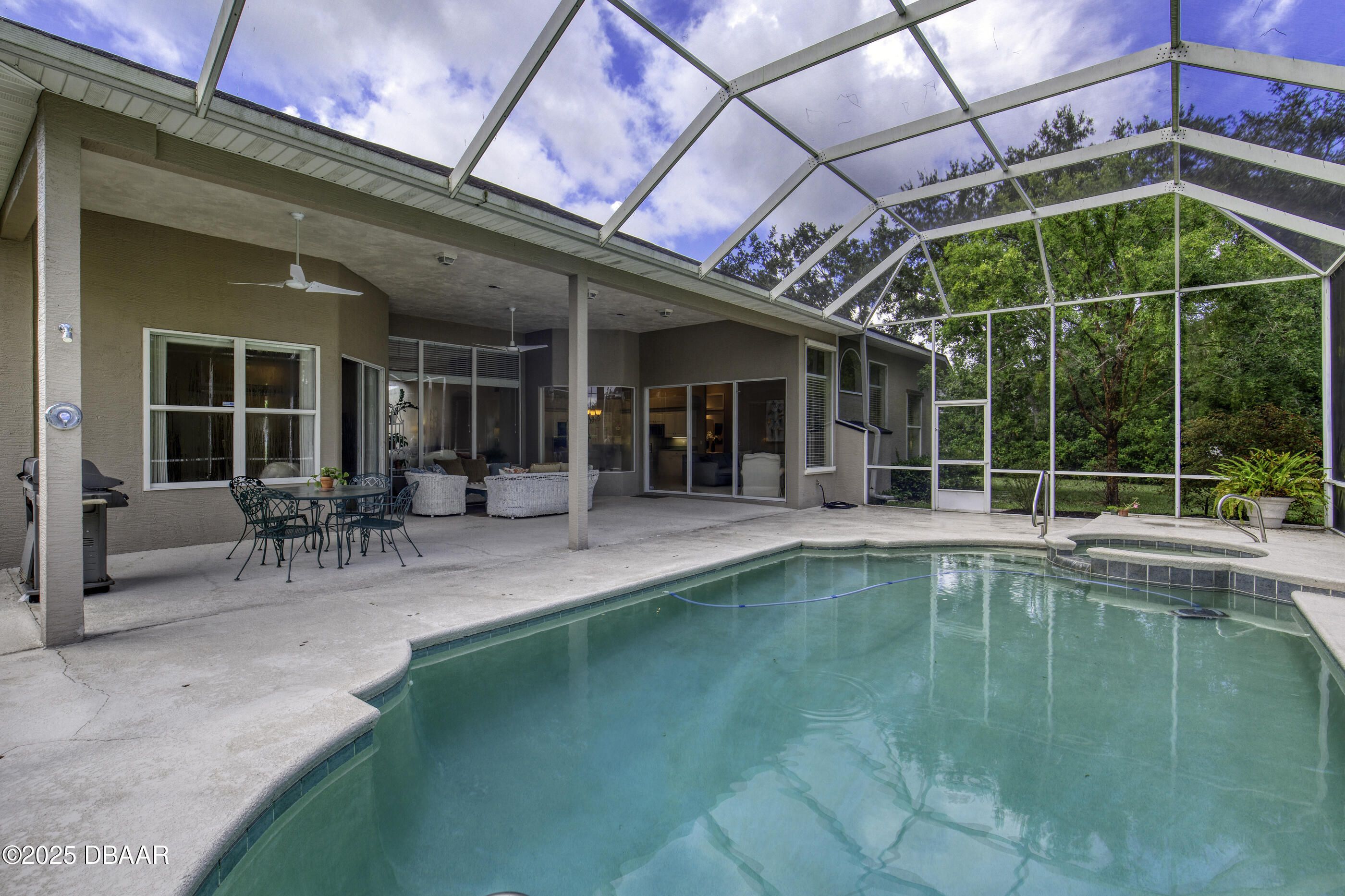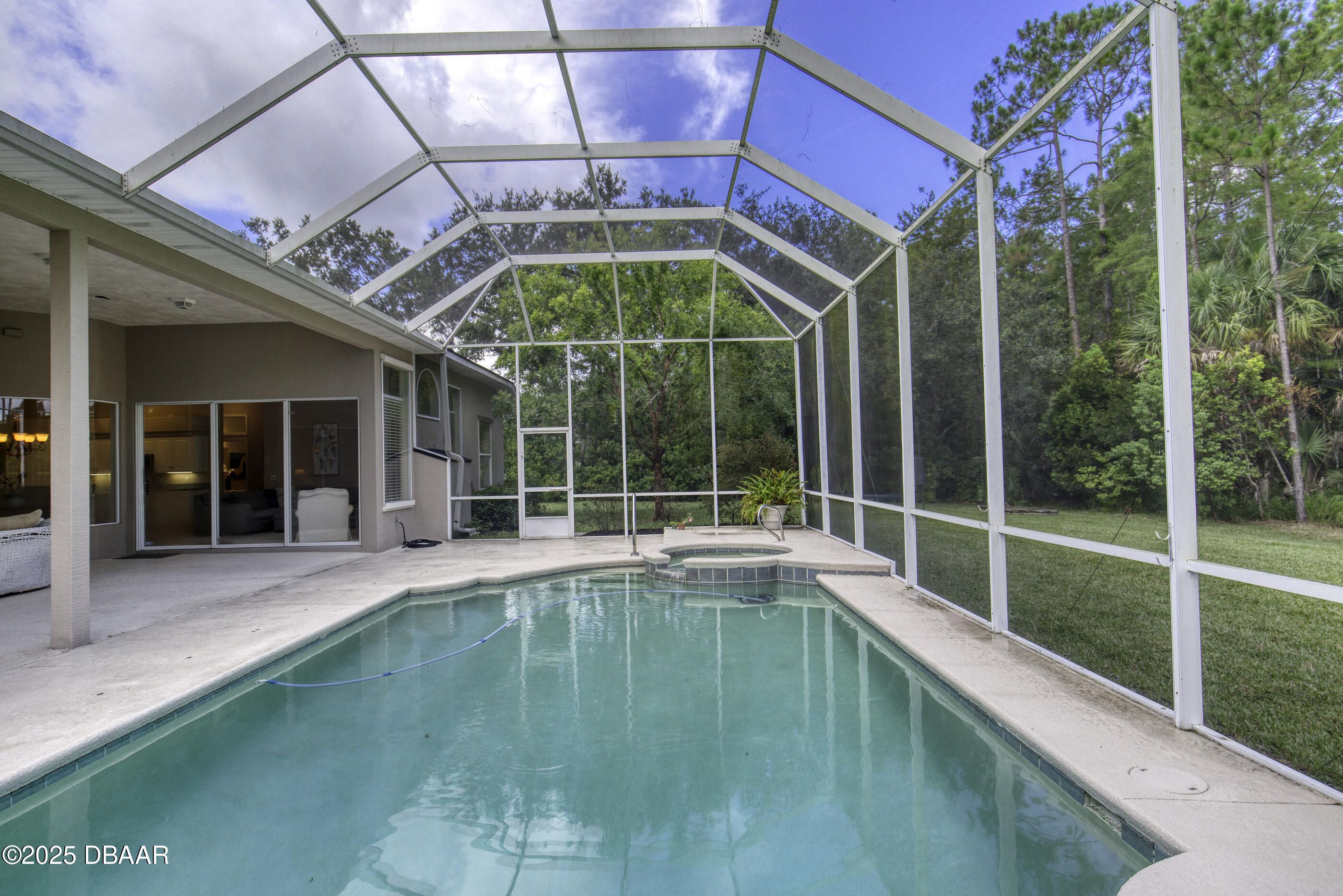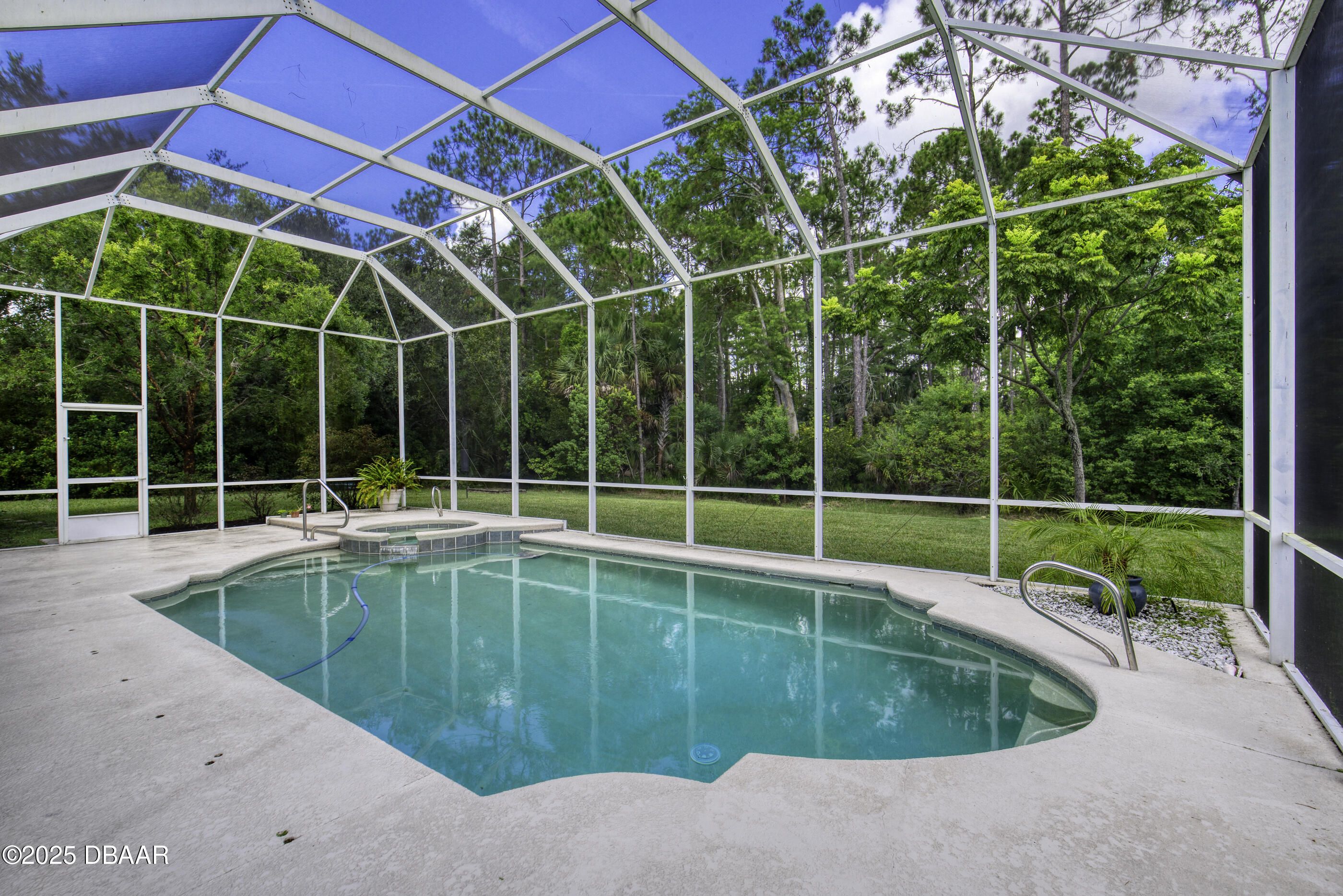Located in the sought-after Breakaway Trails neighborhood, this stunning pool home offers the perfect combination of comfort, luxury, and convenience. Featuring 4 bedrooms, 3 bathrooms, and an oversized 2-car garage. This home is perfect for a large family or multigenerational living. Some of the many upgrades include a brand-new roof (2024), a new stove and microwave, and a refrigerator just two years old. The primary bathroom boasts updated sink faucets, while a new chandelier adds a modern touch. The driveway has been recently repaired, and fresh landscaping enhances the home's curb appeal. For added peace of mind, the home also includes precut hurricane plywood for windows and a removable child barrier for the pool. Step inside to find a spacious split-floor plan designed for both privacy and functionality. The large kitchen is a chef's dream, featuring a sink in the island, a breakfast bar, and a breakfast nook with a large window overlooking the lanai. Just off the kitchen, the living room boasts expansive windows that offer stunning views of the backyard filling the home with natural light. The split floor plan is thoughtfully designed, with two bedrooms and a guest bathroom located off the kitchen, while the primary suite and a fourth bedroom with an adjacent guest bath are tucked away down a private hall on the opposite side of the home. The primary suite is a true retreat, featuring a private sliding glass door leading to the lanai, a walk-in closet, and an ensuite bathroom with a dual vanity, garden tub, walk-in shower, private water closet, and a linen closet. Outdoor living is just as inviting, with just over 500 Sq Ft under roof screened-in lanai featuring a private pool and spa, over looking a natural preserve perfect for entertaining or unwinding in your own backyard oasis. Lanai ceiling fans provide additional comfort, making this space enjoyable year-round. Situated in a gated community, this home is just minutes from grocery stores, top-rated elementary schools, and popular restaurants. Breakaway Trails offers a wide range of amenities, including pickleball and tennis courts, a basketball court, a park and playground, a dog park, a clubhouse, and a community pool. Don't miss the opportunity to own this beautiful home in one of Ormond Beach's most desirable communities!