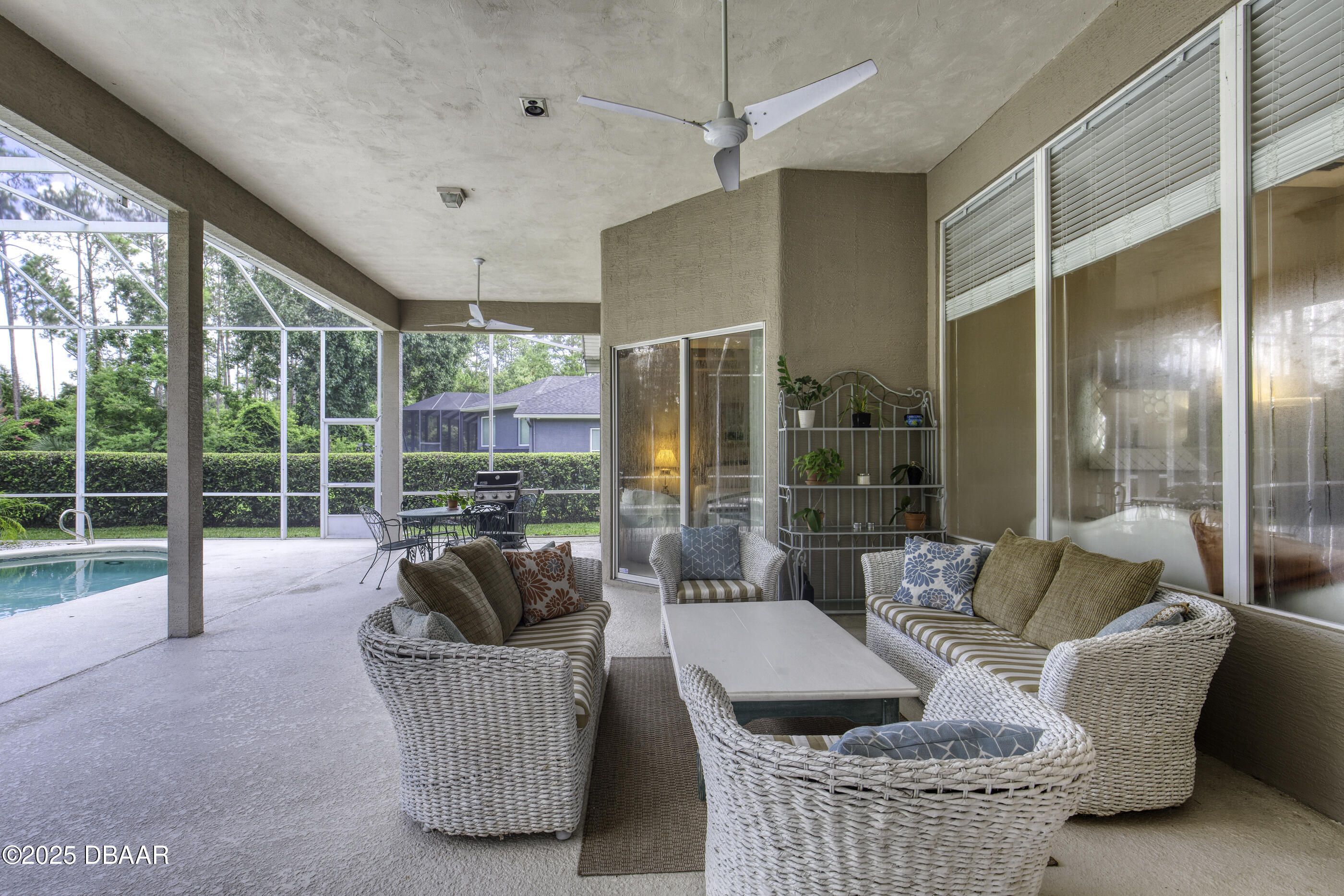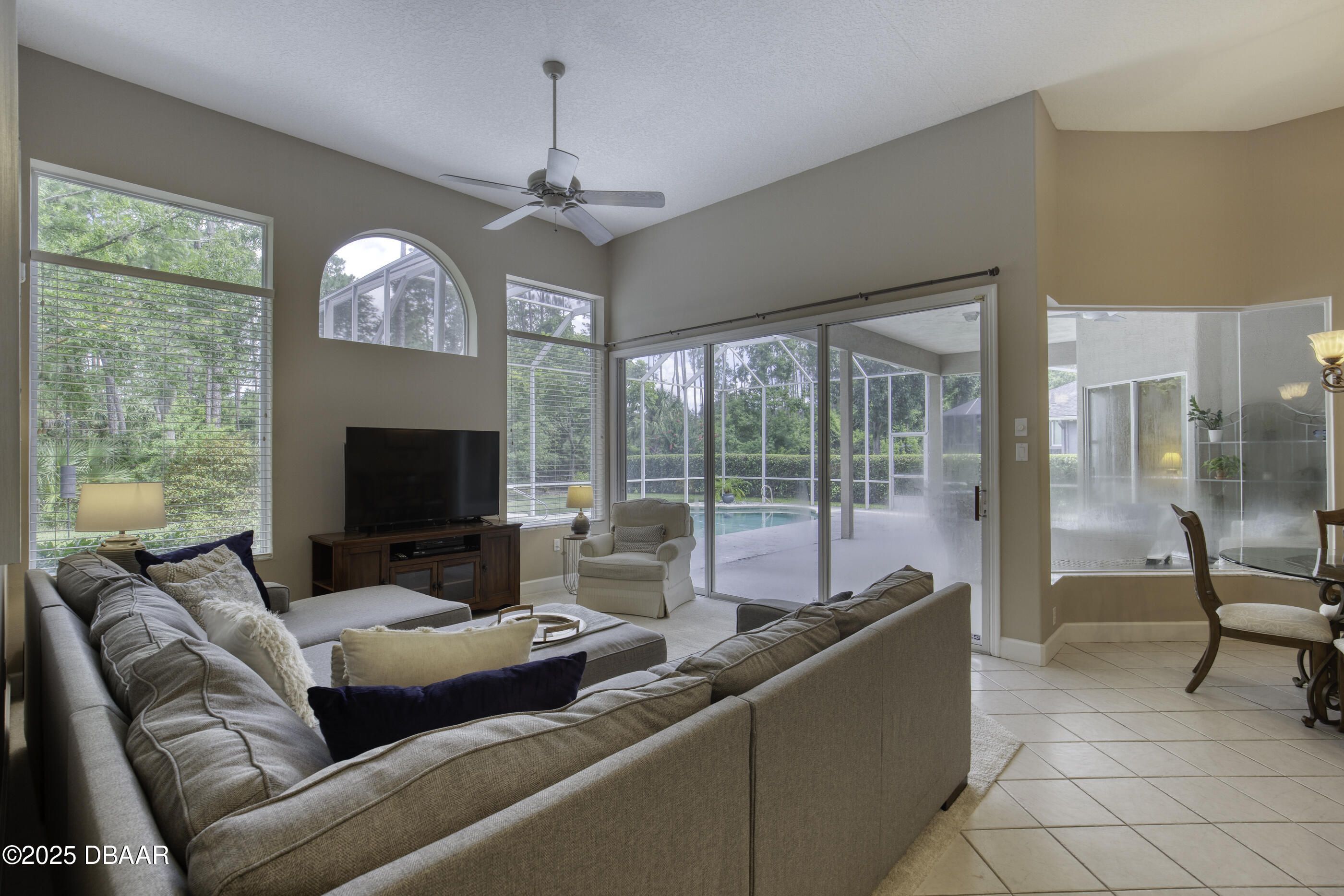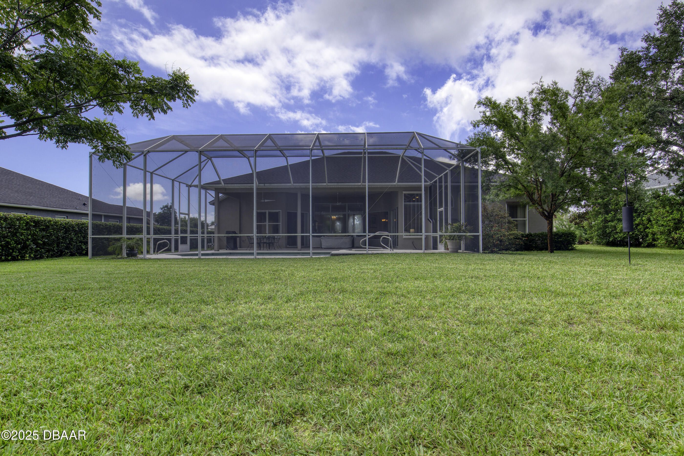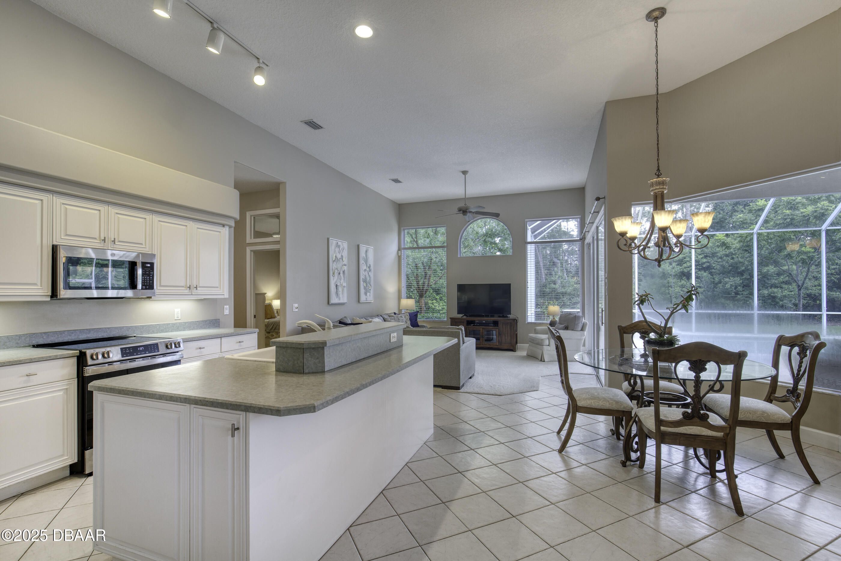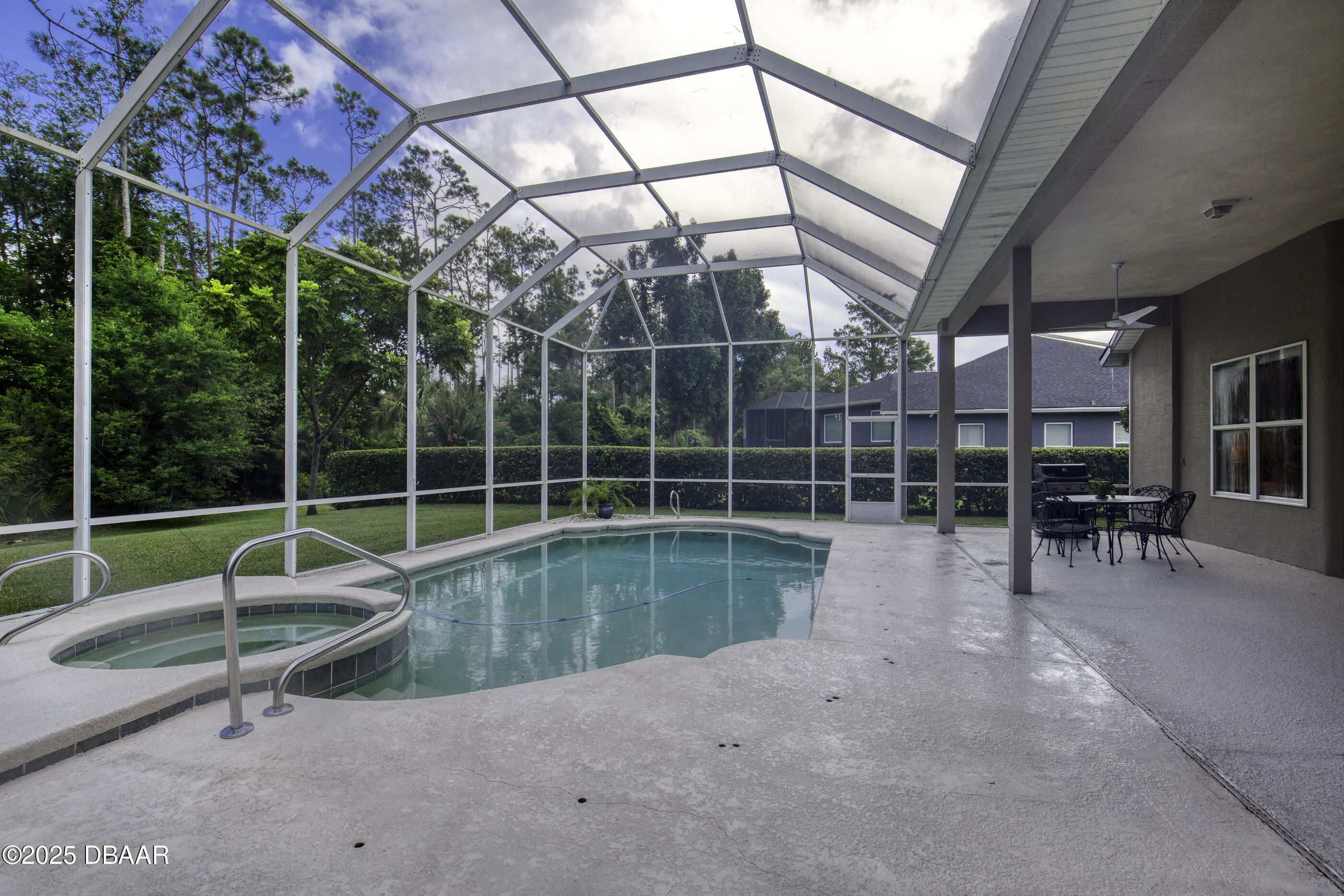 Located in the sought-after Breakaway Trails neighborhood, this stunning pool home offers the perfect combination of comfort, luxury, and convenience. Featuring 4 bedrooms, 3 bathrooms, and an oversized 2-car garage. This home is perfect for a large family or multigenerational living. Some of the many upgrades include a brand-new roof (2024), a new stove and microwave, and a refrigerator just two years old. The primary bathroom boasts updated sink faucets, while a new chandelier adds a modern touch. The driveway has been recently repaired, and fresh landscaping enhances the home's curb appeal. For added peace of mind, the home also includes precut hurricane plywood for windows and a removable child barrier for the pool. Step inside to find a spacious split-floor plan designed for both privacy and functionality. The large kitchen is a chef's dream, featuring a sink in the island, a breakfast bar, and a breakfast nook with a large window overlooking the lanai. Just off the kitchen, the living room boasts expansive windows that offer stunning views of the backyard filling the home with natural light. The split floor plan is thoughtfully designed, with two bedrooms and a guest bathroom located off the kitchen, while the primary suite and a fourth bedroom with an adjacent guest bath are tucked away down a private hall on the opposite side of the home. The primary suite is a true retreat, featuring a private sliding glass door leading to the lanai, a walk-in closet, and an ensuite bathroom with a dual vanity, garden tub, walk-in shower, private water closet, and a linen closet. Outdoor living is just as inviting, with just over 500 Sq Ft under roof screened-in lanai featuring a private pool and spa, over looking a natural preserve perfect for entertaining or unwinding in your own backyard oasis. Lanai ceiling fans provide additional comfort, making this space enjoyable year-round. Situated in a gated community, this home is just minutes from grocery stores, top-rated elementary schools, and popular restaurants. Breakaway Trails offers a wide range of amenities, including pickleball and tennis courts, a basketball court, a park and playground, a dog park, a clubhouse, and a community pool. Don't miss the opportunity to own this beautiful home in one of Ormond Beach's most desirable communities!