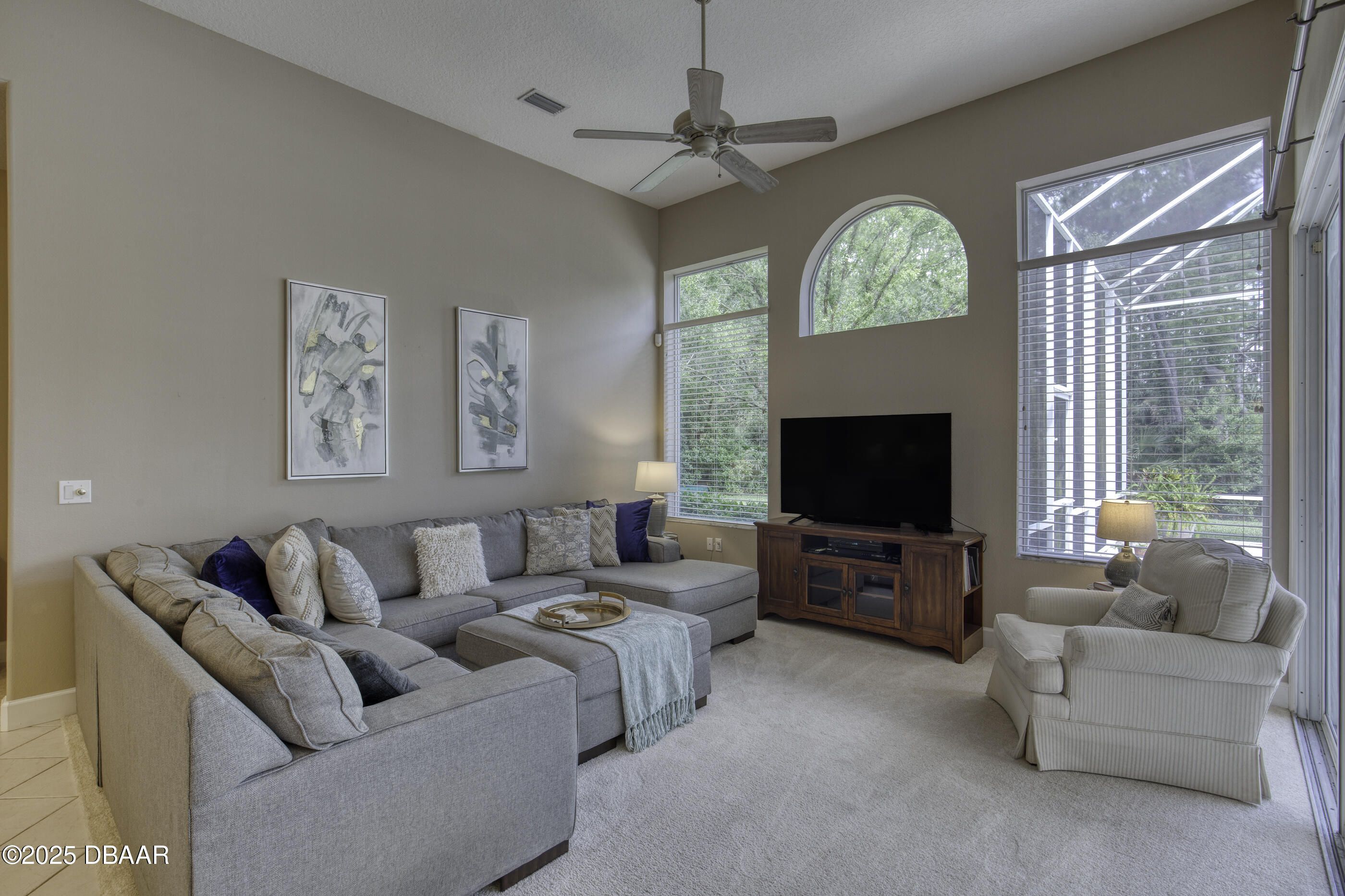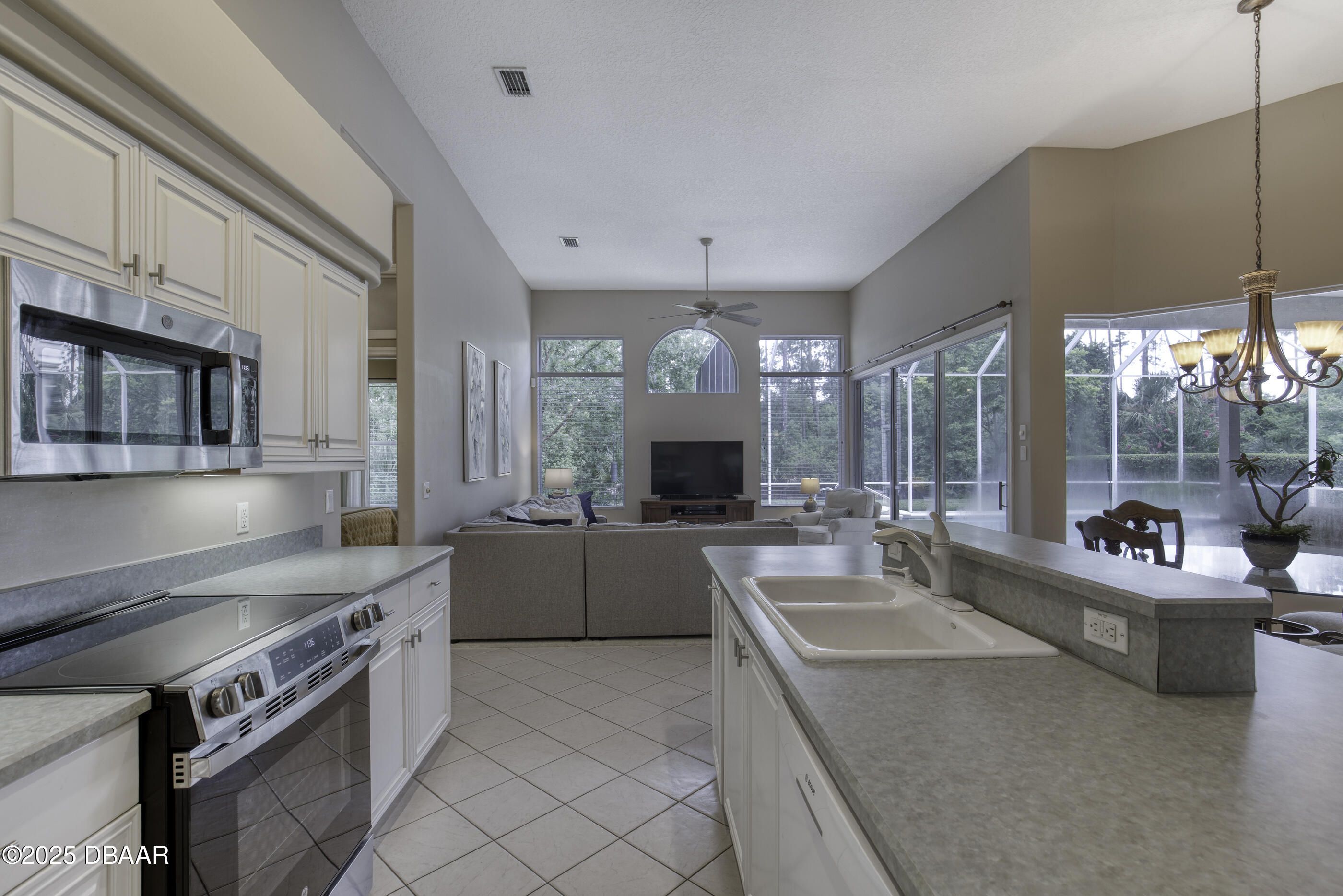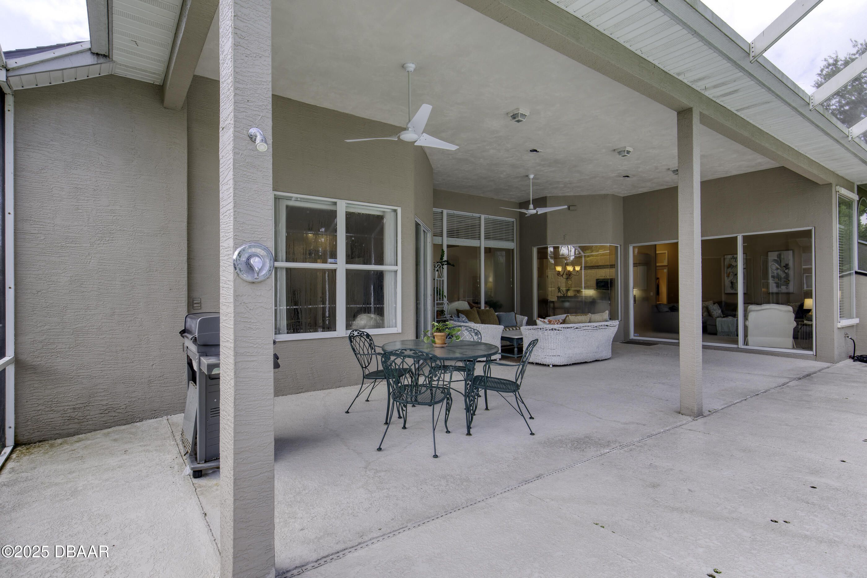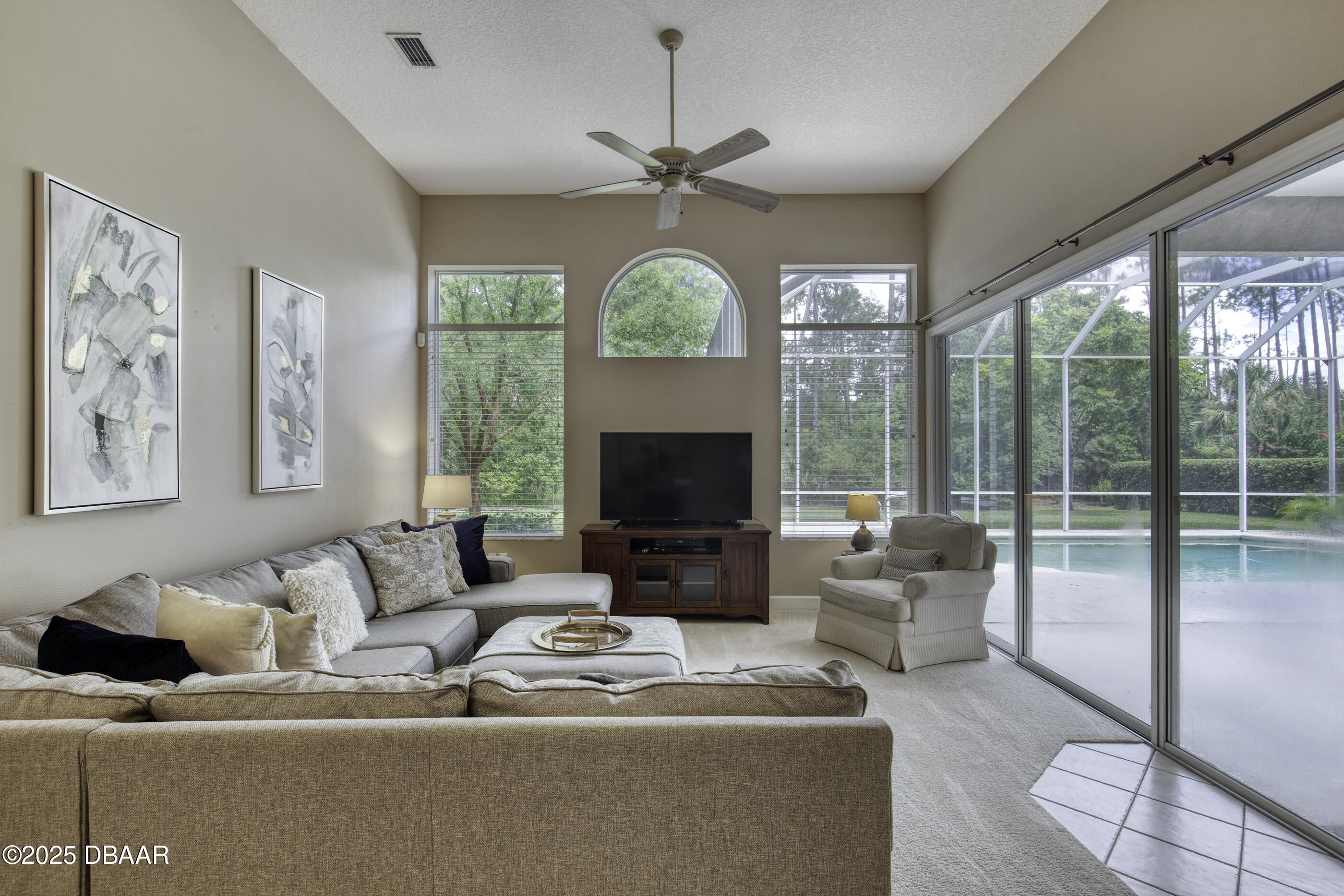 Located in the sought-after Breakaway Trails neighborhood, this stunning pool home offers the perfect combination of comfort, luxury, and convenience. Featuring 4 bedrooms, 3 bathrooms, and an oversized 2-car garage. This home is perfect for a large family or multigenerational living. Some of the many upgrades include a brand-new roof (2024), a new stove and microwave, and a refrigerator just two years old. The primary bathroom boasts updated sink faucets, while a new chandelier adds a modern touch. The driveway has been recently repaired, and fresh landscaping enhances the home's curb appeal. For added peace of mind, the home also includes precut hurricane plywood for windows and a removable child barrier for the pool. Step inside to find a spacious split-floor plan designed for both privacy and functionality. The large kitchen is a chef's dream, featuring a sink in the island, a breakfast bar, and a breakfast nook with a large window overlooking the lanai. Just off the kitchen, the living room boasts expansive windows that offer stunning views of the backyard filling the home with natural light. The split floor plan is thoughtfully designed, with two bedrooms and a guest bathroom located off the kitchen, while the primary suite and a fourth bedroom with an adjacent guest bath are tucked away down a private hall on the opposite side of the home. The primary suite is a true retreat, featuring a private sliding glass door leading to the lanai, a walk-in closet, and an ensuite bathroom with a dual vanity, garden tub, walk-in shower, private water closet, and a linen closet. Outdoor living is just as inviting, with just over 500 Sq Ft under roof screened-in lanai featuring a private pool and spa, over looking a natural preserve perfect for entertaining or unwinding in your own backyard oasis. Lanai ceiling fans provide additional comfort, making this space enjoyable year-round. Situated in a gated community, this home is just minutes from grocery stores, top-rated elementary schools, and popular restaurants. Breakaway Trails offers a wide range of amenities, including pickleball and tennis courts, a basketball court, a park and playground, a dog park, a clubhouse, and a community pool. Don't miss the opportunity to own this beautiful home in one of Ormond Beach's most desirable communities!