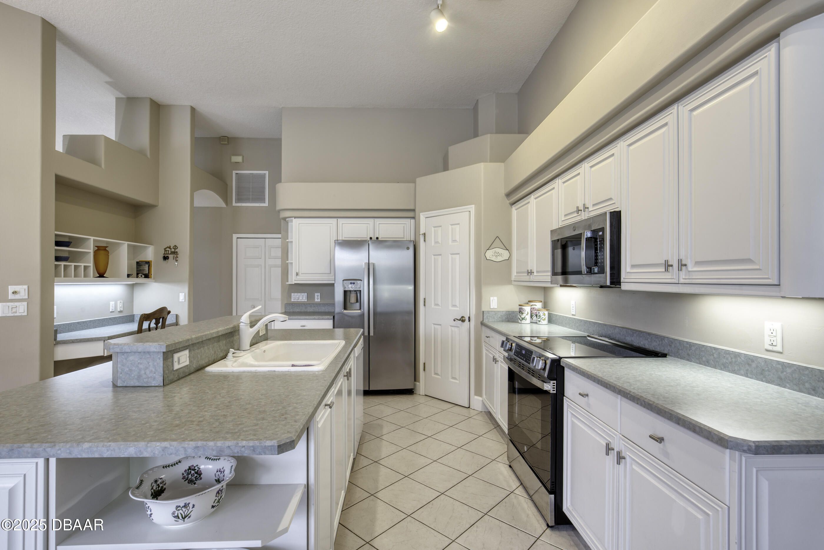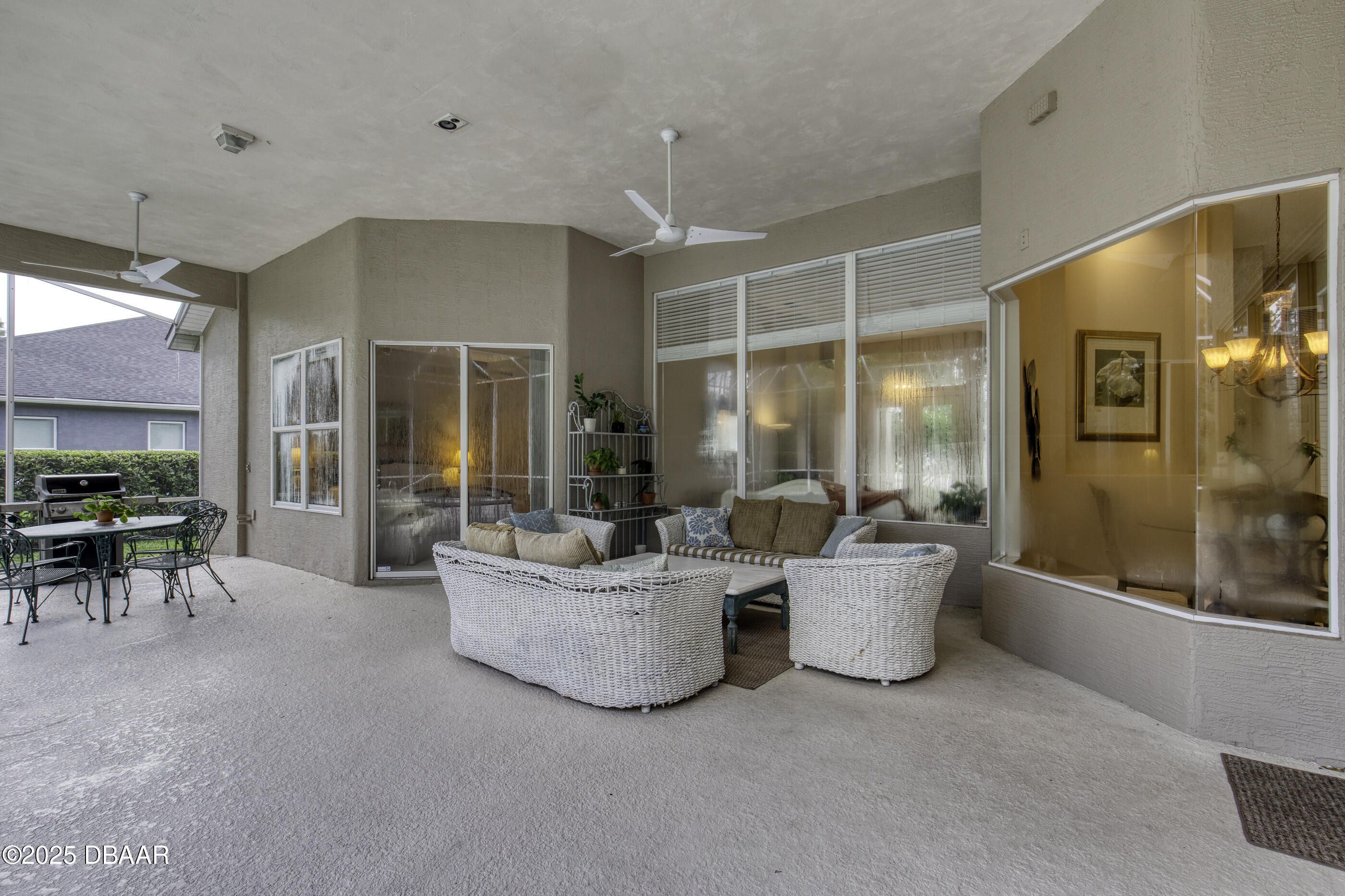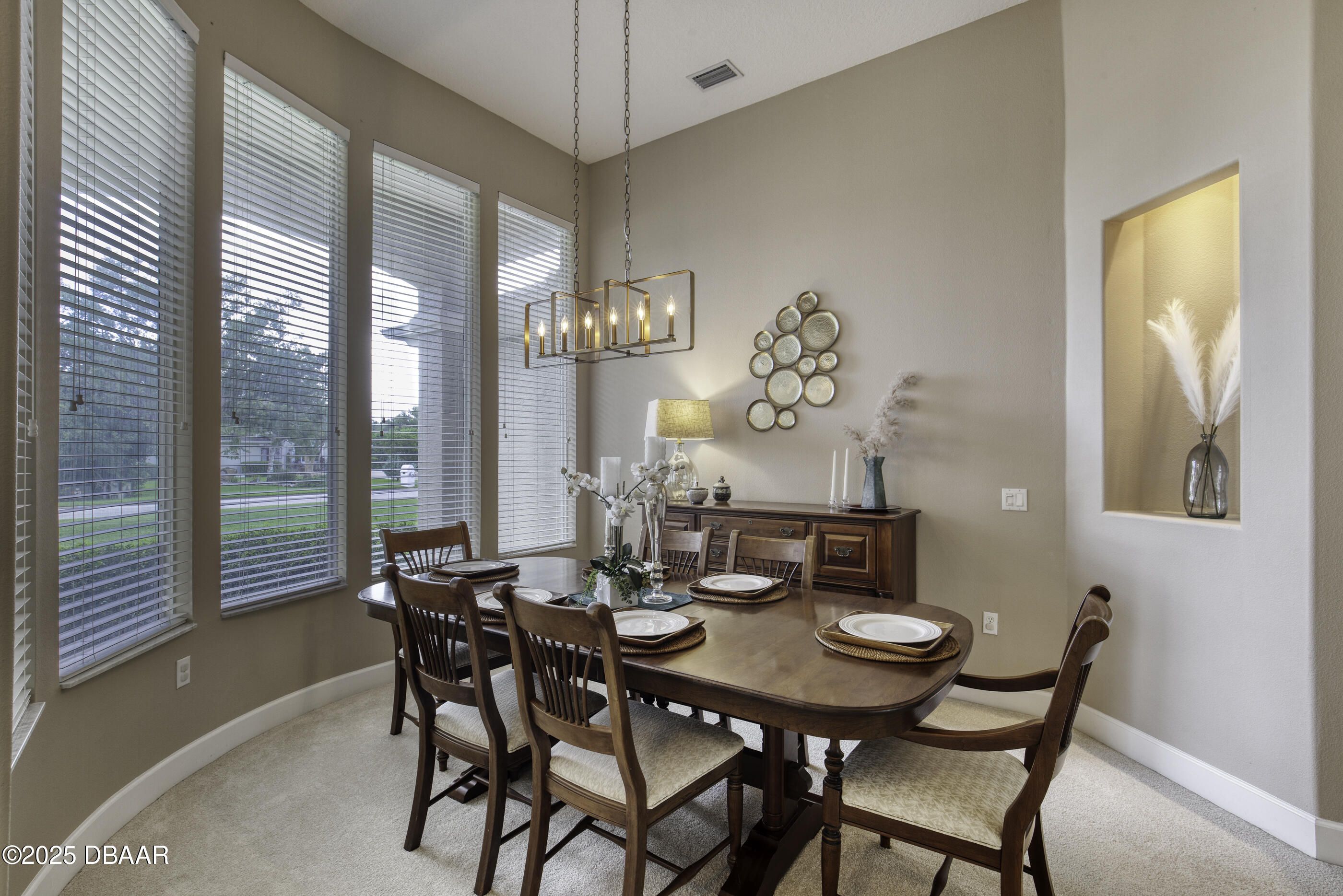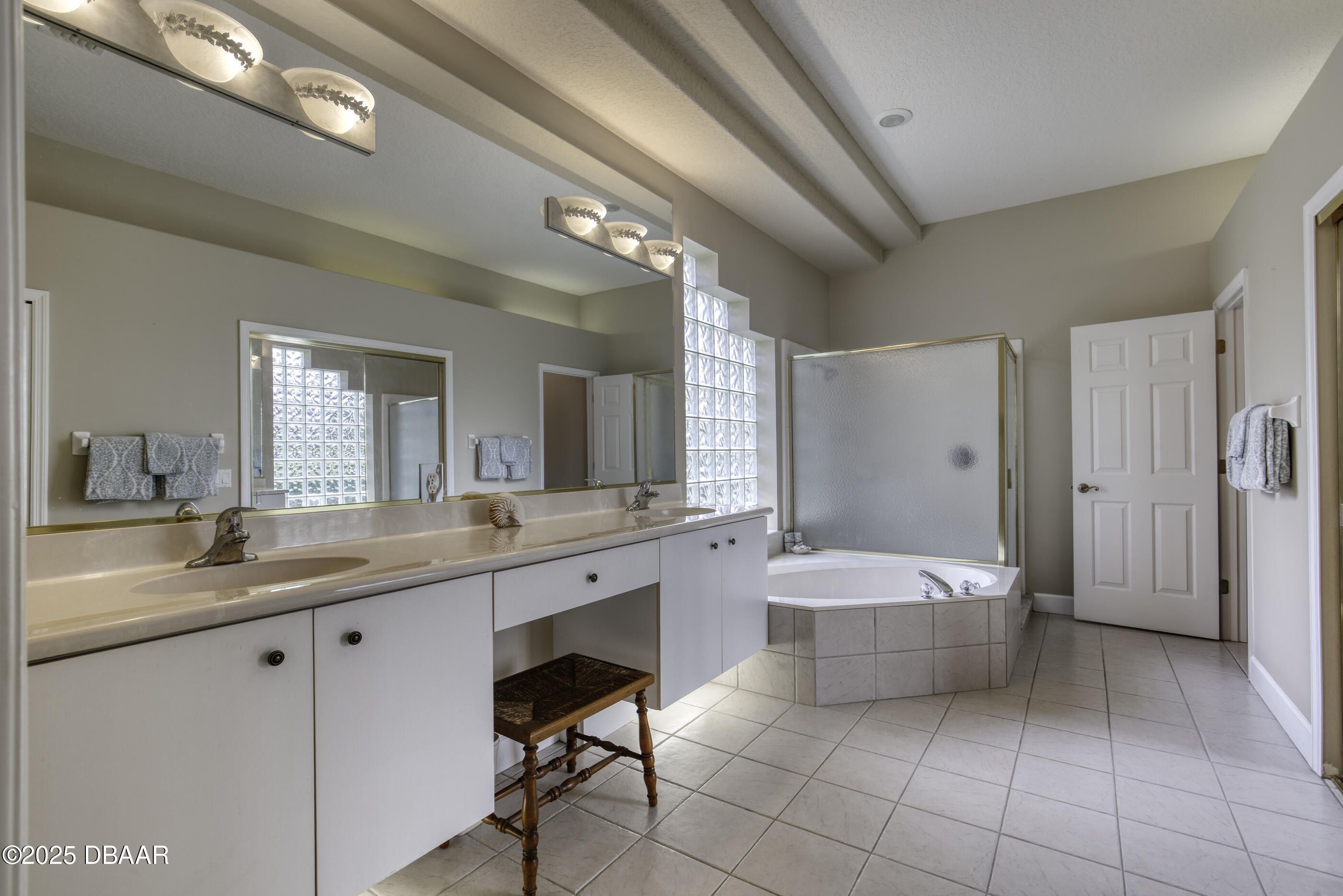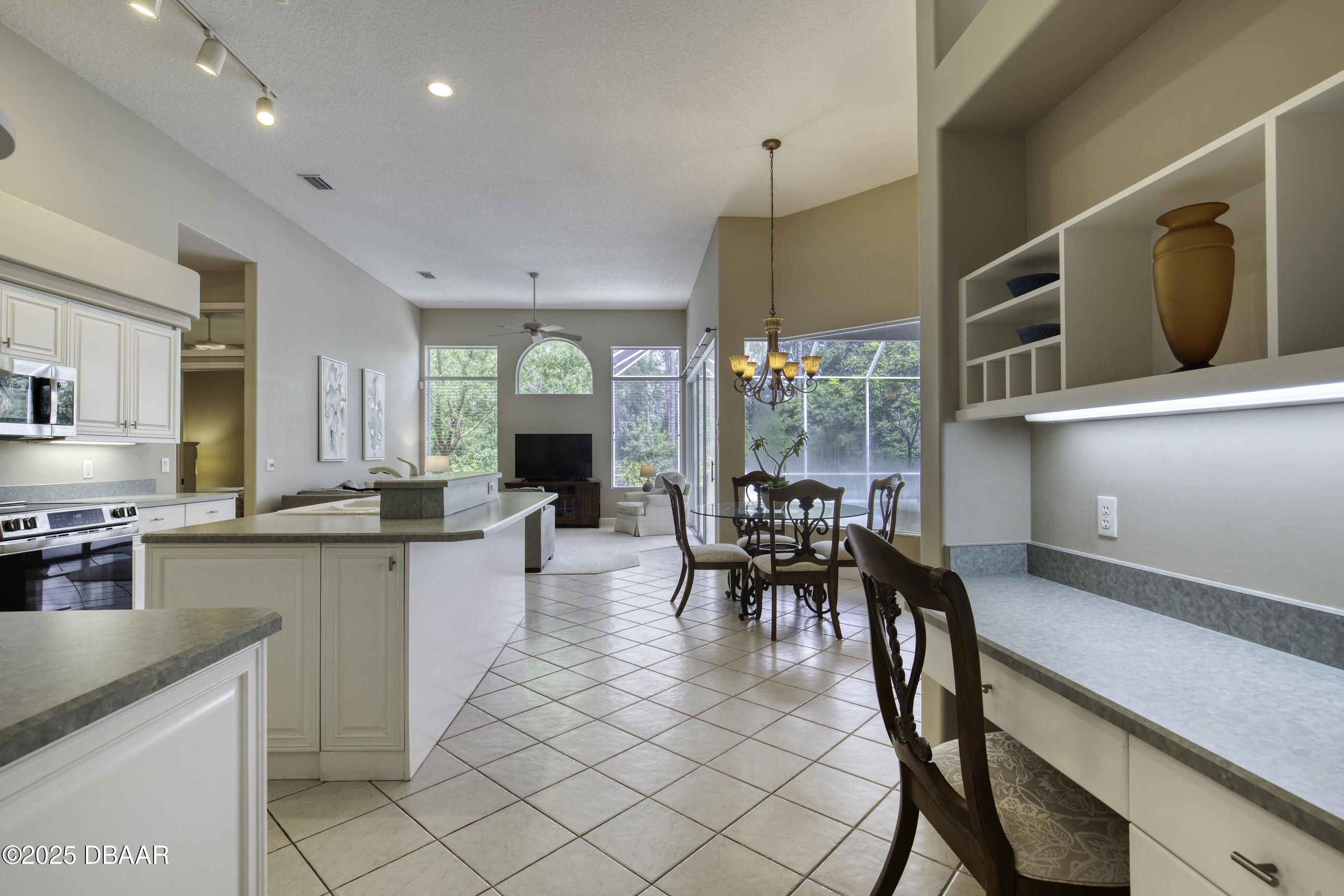 Located in the sought-after Breakaway Trails neighborhood, this stunning pool home offers the perfect combination of comfort, luxury, and convenience. Featuring 4 bedrooms, 3 bathrooms, and an oversized 2-car garage. This home is perfect for a large family or multigenerational living. Some of the many upgrades include a brand-new roof (2024), a new stove and microwave, and a refrigerator just two years old. The primary bathroom boasts updated sink faucets, while a new chandelier adds a modern touch. The driveway has been recently repaired, and fresh landscaping enhances the home's curb appeal. For added peace of mind, the home also includes precut hurricane plywood for windows and a removable child barrier for the pool. Step inside to find a spacious split-floor plan designed for both privacy and functionality. The large kitchen is a chef's dream, featuring a sink in the island, a breakfast bar, and a breakfast nook with a large window overlooking the lanai. Just off the kitchen, the living room boasts expansive windows that offer stunning views of the backyard filling the home with natural light. The split floor plan is thoughtfully designed, with two bedrooms and a guest bathroom located off the kitchen, while the primary suite and a fourth bedroom with an adjacent guest bath are tucked away down a private hall on the opposite side of the home. The primary suite is a true retreat, featuring a private sliding glass door leading to the lanai, a walk-in closet, and an ensuite bathroom with a dual vanity, garden tub, walk-in shower, private water closet, and a linen closet. Outdoor living is just as inviting, with just over 500 Sq Ft under roof screened-in lanai featuring a private pool and spa, over looking a natural preserve perfect for entertaining or unwinding in your own backyard oasis. Lanai ceiling fans provide additional comfort, making this space enjoyable year-round. Situated in a gated community, this home is just minutes from grocery stores, top-rated elementary schools, and popular restaurants. Breakaway Trails offers a wide range of amenities, including pickleball and tennis courts, a basketball court, a park and playground, a dog park, a clubhouse, and a community pool. Don't miss the opportunity to own this beautiful home in one of Ormond Beach's most desirable communities!