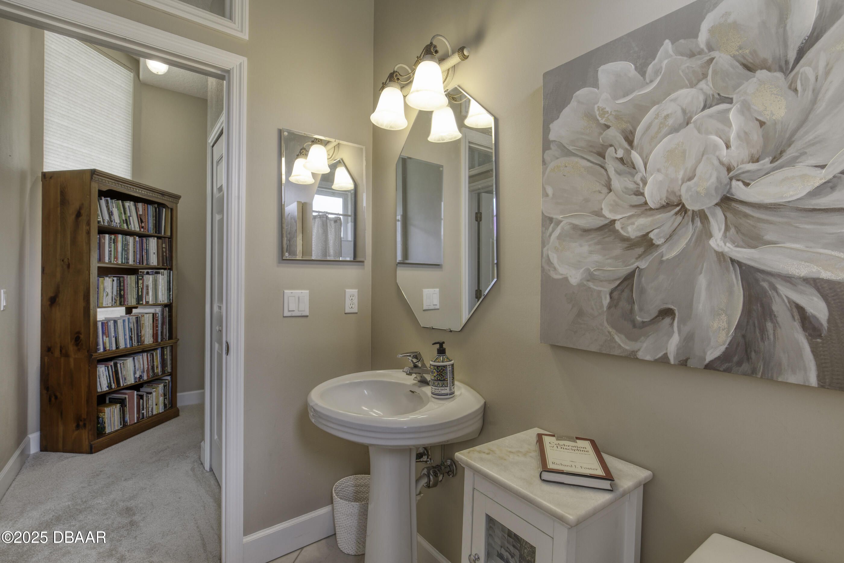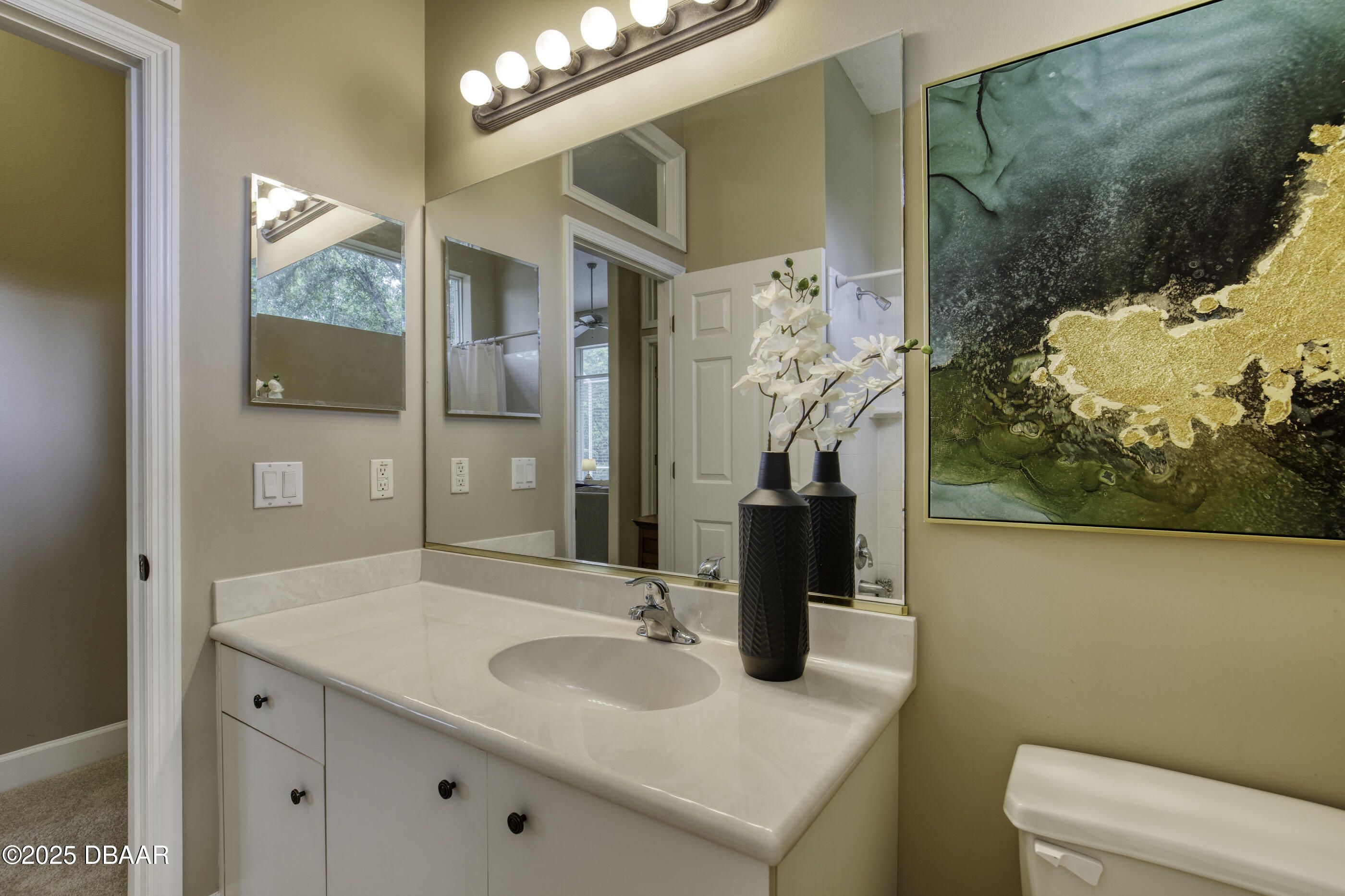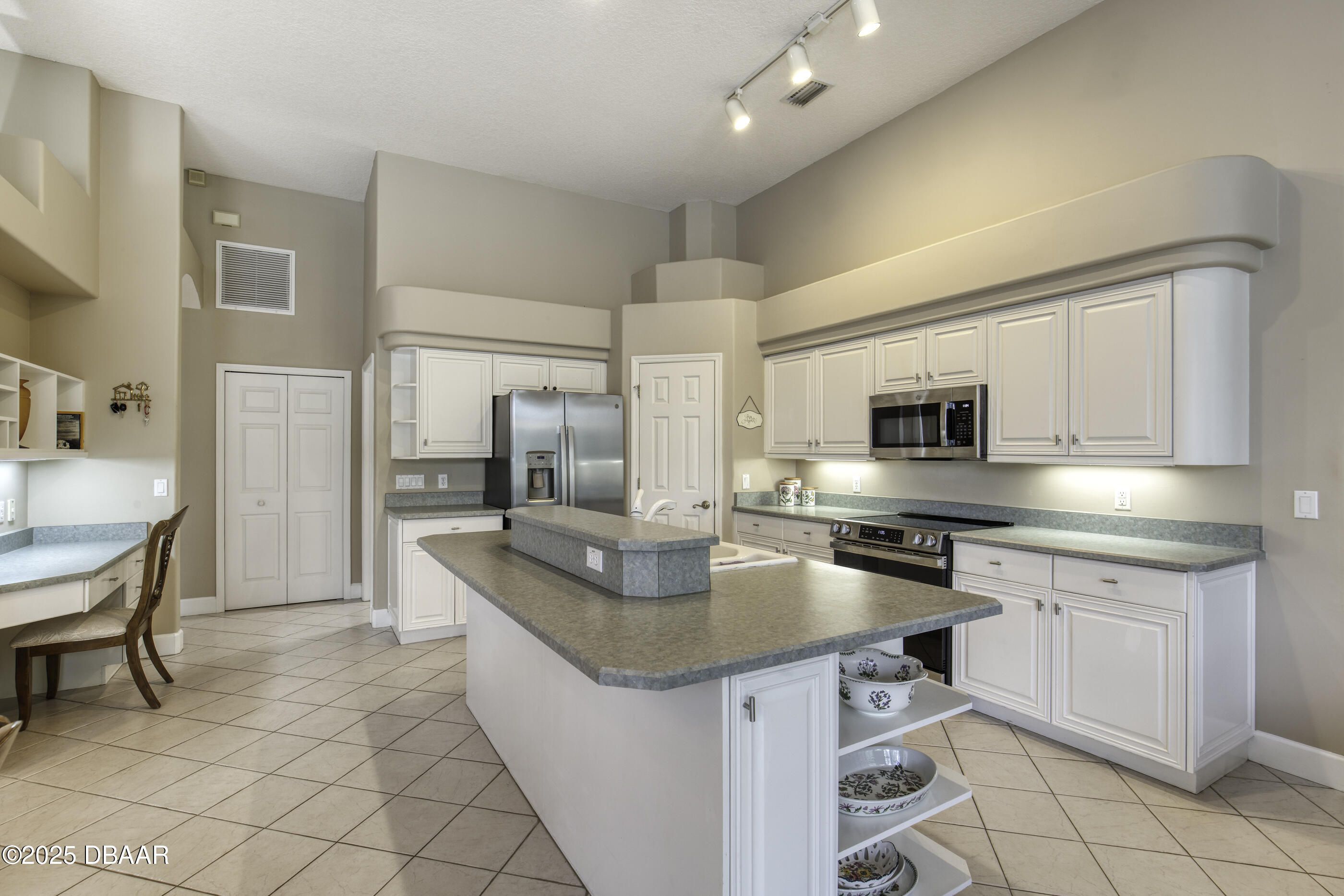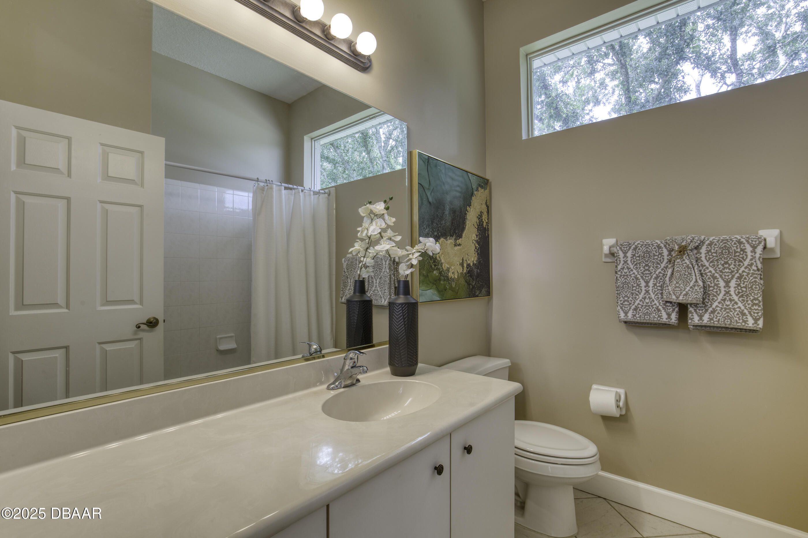 Located in the sought-after Breakaway Trails neighborhood, this stunning pool home offers the perfect combination of comfort, luxury, and convenience. Featuring 4 bedrooms, 3 bathrooms, and an oversized 2-car garage. This home is perfect for a large family or multigenerational living. Some of the many upgrades include a brand-new roof (2024), a new stove and microwave, and a refrigerator just two years old. The primary bathroom boasts updated sink faucets, while a new chandelier adds a modern touch. The driveway has been recently repaired, and fresh landscaping enhances the home's curb appeal. For added peace of mind, the home also includes precut hurricane plywood for windows and a removable child barrier for the pool. Step inside to find a spacious split-floor plan designed for both privacy and functionality. The large kitchen is a chef's dream, featuring a sink in the island, a breakfast bar, and a breakfast nook with a large window overlooking the lanai. Just off the kitchen, the living room boasts expansive windows that offer stunning views of the backyard filling the home with natural light. The split floor plan is thoughtfully designed, with two bedrooms and a guest bathroom located off the kitchen, while the primary suite and a fourth bedroom with an adjacent guest bath are tucked away down a private hall on the opposite side of the home. The primary suite is a true retreat, featuring a private sliding glass door leading to the lanai, a walk-in closet, and an ensuite bathroom with a dual vanity, garden tub, walk-in shower, private water closet, and a linen closet. Outdoor living is just as inviting, with just over 500 Sq Ft under roof screened-in lanai featuring a private pool and spa, over looking a natural preserve perfect for entertaining or unwinding in your own backyard oasis. Lanai ceiling fans provide additional comfort, making this space enjoyable year-round. Situated in a gated community, this home is just minutes from grocery stores, top-rated elementary schools, and popular restaurants. Breakaway Trails offers a wide range of amenities, including pickleball and tennis courts, a basketball court, a park and playground, a dog park, a clubhouse, and a community pool. Don't miss the opportunity to own this beautiful home in one of Ormond Beach's most desirable communities!
