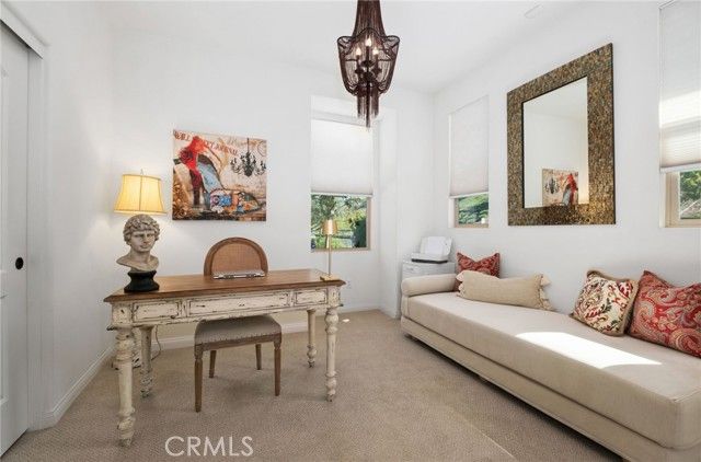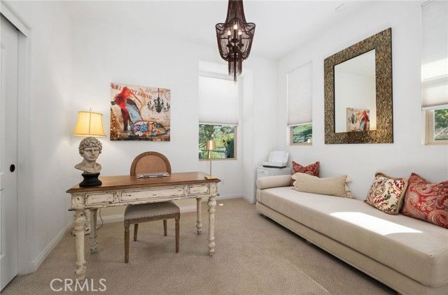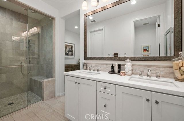 Welcome to the elevated 55+ resort-style community in Rancho Mission Viejo. This immaculate home has 3 Bedrooms and 3 full baths in just over 1,760 square feet. The entry flows right into the open kitchen with a large center island featuring quartz counters and stainless appliances. The 5 burner cooktop is framed with an elegant backsplash and under cabinet lighting. The large Primary is on the main level and includes a spa-like bath with a zero clearance shower with bench seating. The 2nd main floor bedroom is adjacent to a full bath. This makes for a great guest room or office. The laundry room is on the main level for ease of use and has beautiful upper and lower cabinetry and a nice quartz counter for work space. Upstairs is an additional Bedroom with a spacious loft area that can be used for games, movie nights or a private getaway for guests. The upstairs loft also features another full bath. The community of Gavlan at Rancho Mission Viejo is resort like with access directly above the property to Hilltop pool and social areas and also the Lookout pool and BBQ area. As part of the Gavlan over 55+ community, you will have access to all the beautiful pools, fitness centers, social clubs and events that make being a part of this community a very sought after feature.