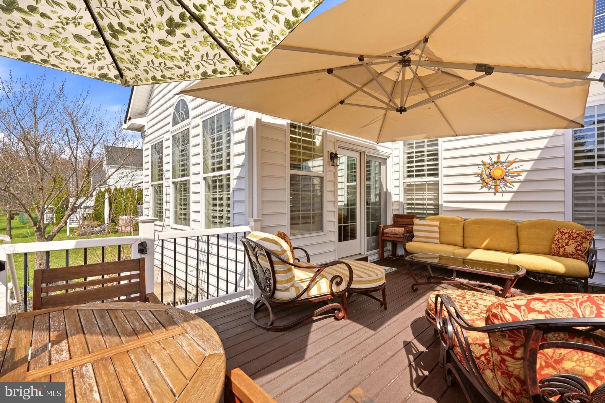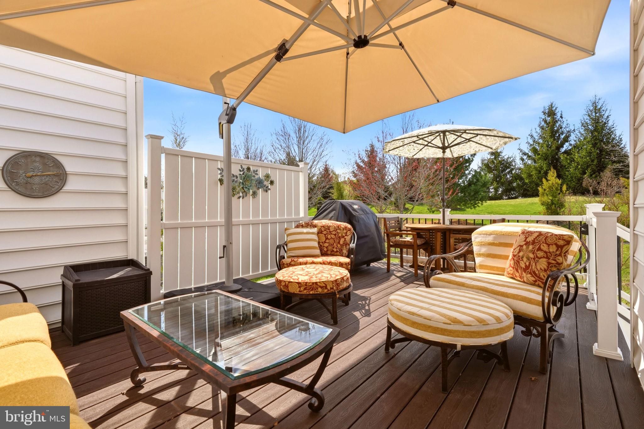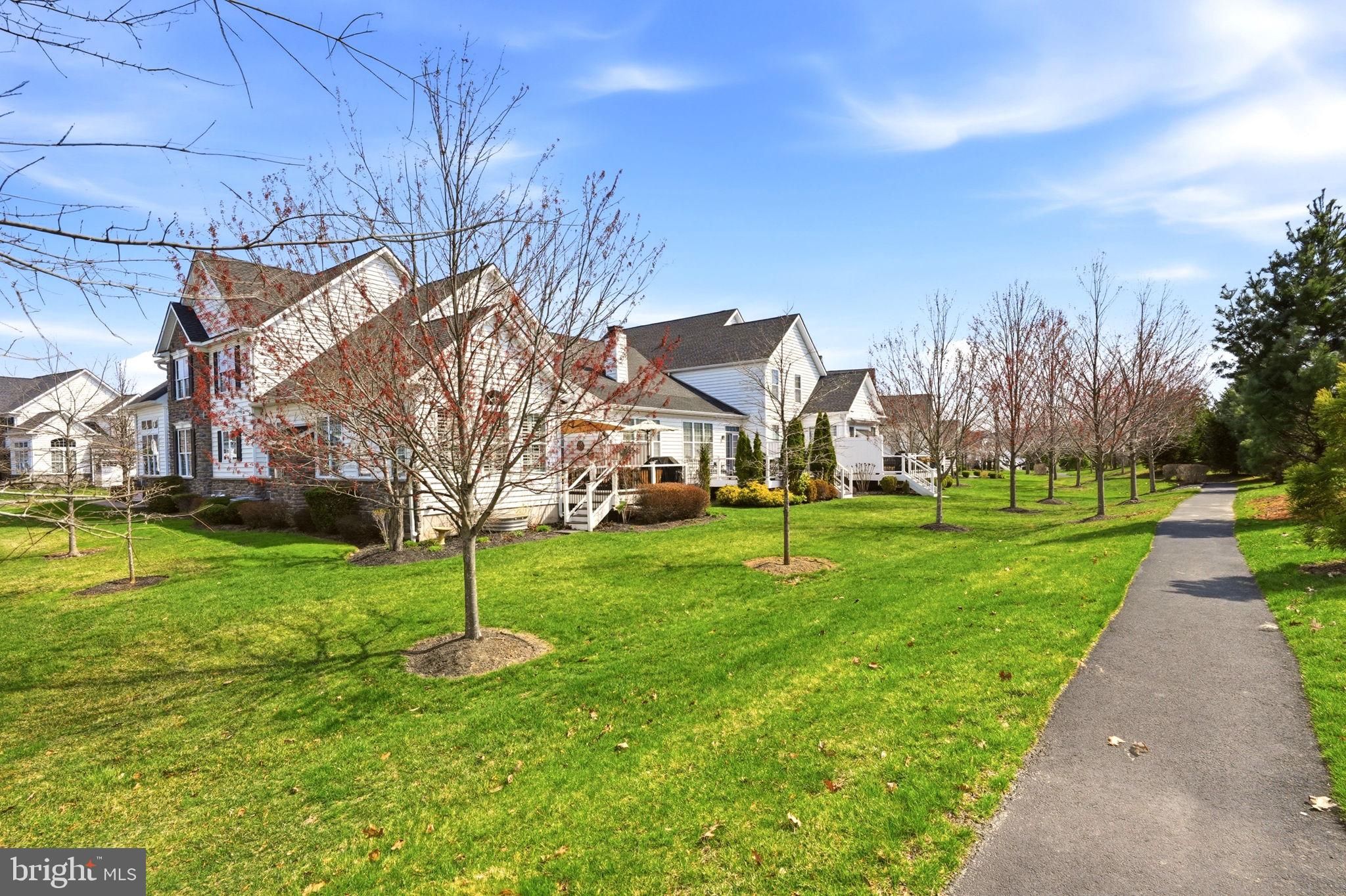 Enjoy maintenance free living in this stunning end unit carriage home located in the highly acclaimed Enclave at Upper Makefield, a desirable active adult community. Offering an open floorplan with sophistication and style filled with designer finishes. A dramatic two-story foyer welcomes you. The main level has hand hewn hardwood flooring, crown molding, and plantation shutters throughout. Off the foyer is the handsome study accented by architectural windows and across the way is the sun‑filled dining room, perfect for hosting friends and family. The stylish gourmet kitchen is enhanced by granite countertops, creamy white cabinetry with glass upper display cabinets, and a large contrasting island with seating. A suite of stainless-steel appliances including a cooktop, combination wall oven/microwave make meal prep a dream. The kitchen opens to the great room and pleasant sunroom flowing together and anchored by a cozy gas fireplace. French doors lead outside to the maintenance free deck where you can enjoy the park-like surroundings. The expanded main floor primary bedroom features a tray ceiling and spa-like bathroom with dual vanities, an expansive, beautifully tiled shower with seat, and a large walk-in closet. Rounding out this floor is the powder room with a beautifully artistic tiled wall and the large laundry room complete with sink and plenty of cabinets. Upstairs you will find a spacious, expanded open loft adorned with architectural columns offering additional living space or another office, offering wonderful versatility. Two large bedrooms and a jack and jill bathroom complete this level. An unfinished lower lever with roughed in plumbing offers unlimited possibilities and fantastic storage. This stunning home shows like a model and is move-in ready. A short drive to Newtown Boro, New Hope, or Yardley for fabulous shopping and dining along with easy access to the I-295/95 corridor. Easy commute to Princeton, Philadelphia, NYC, and Jersey Shore. Don’t miss this wonderful opportunity. Now is the perfect moment to start living the maintenance‑free life you’ve been dreaming about.