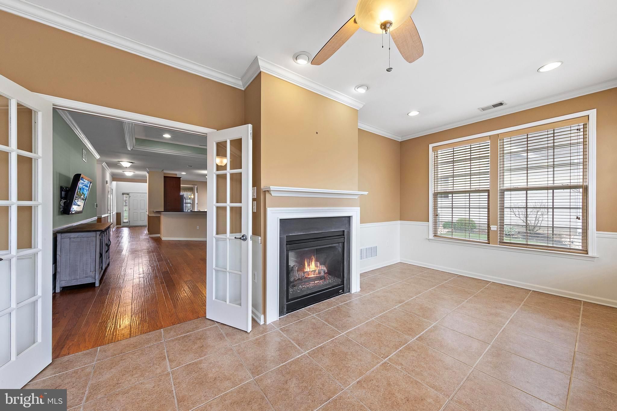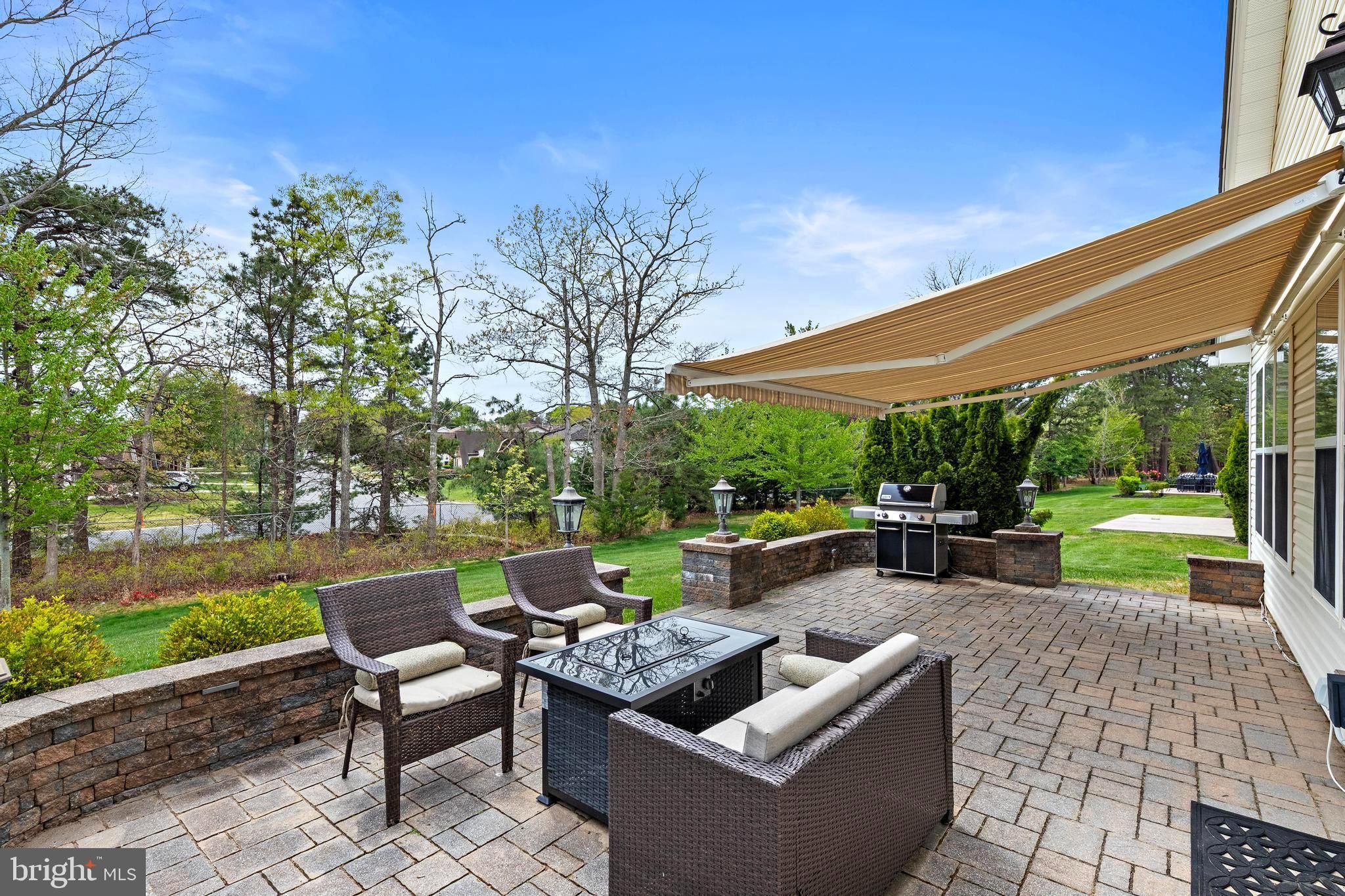 Welcome home to this over 2200 square feet 2-bedroom, 2 bathrooms 2 car garage with a massive sunroom all-brick front Capri model, ideally located in the highly sought-after Paramount Homes at Ocean Breeze 55+ community on the Manahawkin side. This beautifully maintained residence is filled with upscale finishes and thoughtful design throughout. Step inside to find elegant tray ceilings, crown molding, and detailed lighting that create a refined yet inviting atmosphere. The expansive kitchen is a true centerpiece, featuring granite countertops, a stylish tile backsplash, stainless steel appliances, and a spacious pantry. An eat-in area compliments the kitchen, while a generous formal dining room offers flexibility as a home office or additional living space. The open-concept floor plan is perfect for both everyday living and entertaining, highlighted by a large family room with a double-sided fireplace that seamlessly connects to an oversized sunroom filled with natural light from walls of windows. From there, step out onto the brick paver patio complete with a custom awning and grill-ideal for relaxing or hosting guests. The home features luxury vinyl plank flooring and tile throughout most areas, with carpeting in the primary and second bedrooms for added comfort. The expansive primary suite offers peaceful views of the wooded backyard and patio, along with two walk-in closets. The en-suite bathroom includes a granite countertop vanity, and a beautifully tiled shower and soaking tub. The second bedroom is generously sized with two closets and is conveniently located next to the laundry room that houses custom cabinets and a full bathroom that is lightly used and finished with tile throughout. Situated on a premium, tree-lined lot with serene pond views, this home also includes custom blinds and valances throughout, lots of storage and closets throughout, and shows like a model. Don't wait because this beauty won't last!