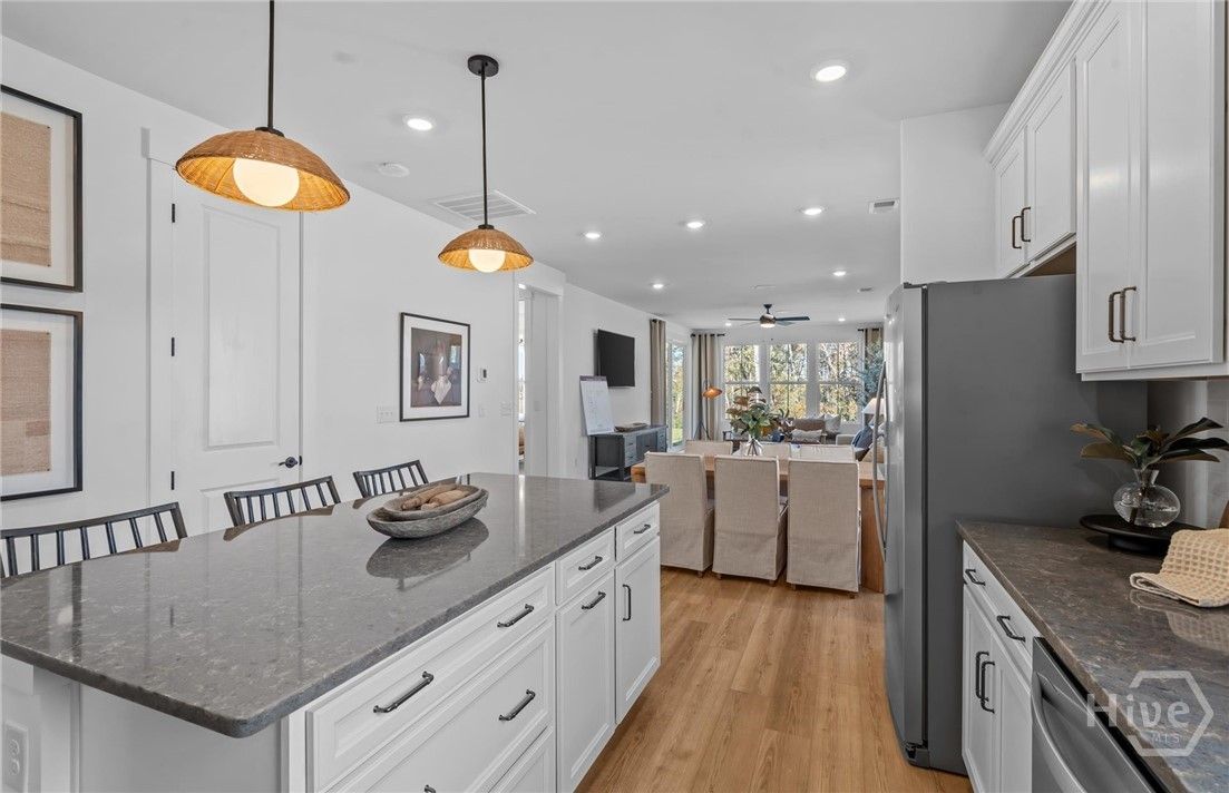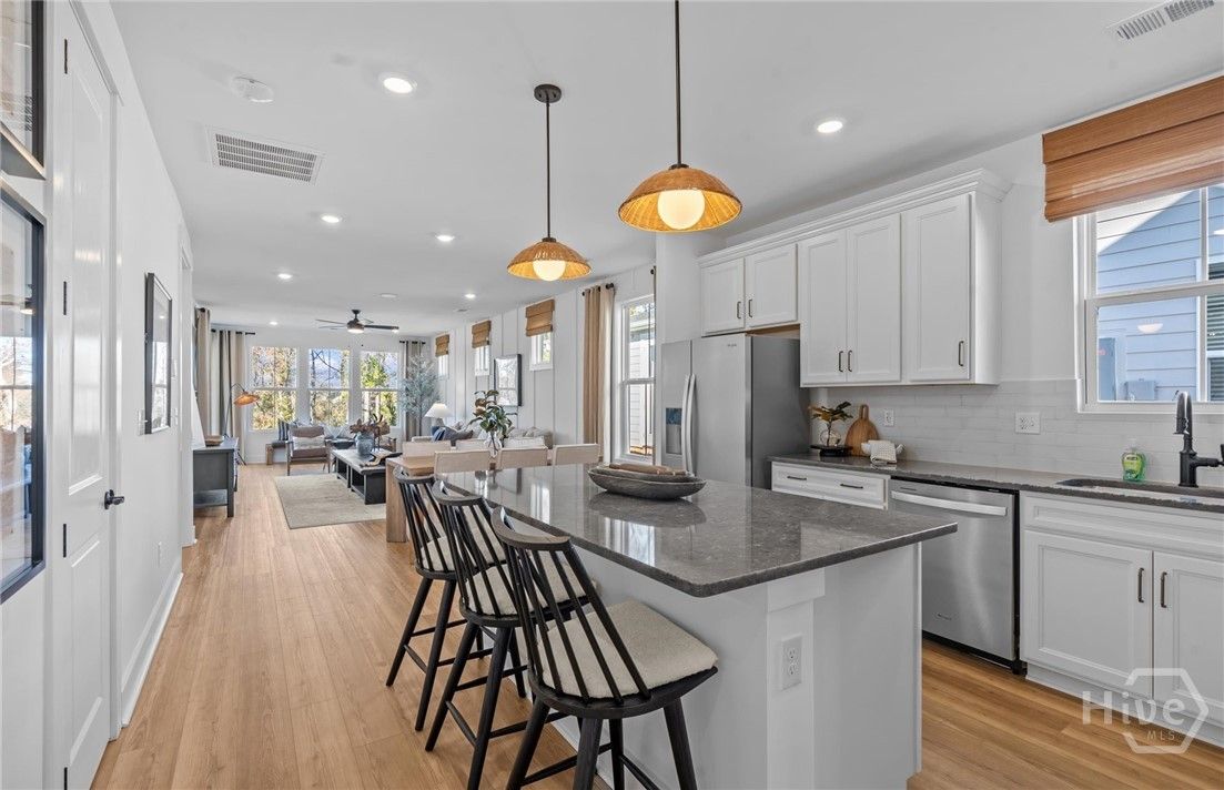 Discover the Contour floorplan! An inviting 2-bedroom, 2-bath home designed for comfort and style. The open-concept layout features a spacious kitchen with a large island, stainless steel appliances, flowing into a bright gathering room ideal for entertaining. The Owner’s Suite includes a walk-in closet and dual-sink vanity. A versatile flex room offers space for a home office or hobby area. Located in Del Webb Savannah at Heartwood, a vibrant 55+ community with resort-style amenities, this home blends functionality with modern charm.