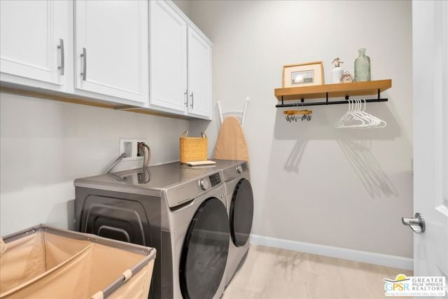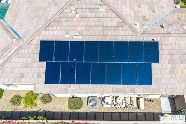 Welcome to Del Webb, where luxury meets effortless desert living. This exquisite Encore Series Plan 8 Serenity, nestled in the coveted Phase 6, boasts EXPANSIVE PANORAMIC MOUNTAIN VIEWS and an abundance of custom upgrades throughout. Designed with elegance and functionality in mind, this thoughtfully customized home offers two spacious bedroom suites, a versatile den/media/guest space with a powder room, and seamless indoor-outdoor living. From the moment you step through the upgraded courtyard entry - complete with a tranquil bubbling fountain - you'll be immersed in style. Designer-selected finishes elevate every space, including statement wallpaper, 12"x24" tile flooring, and custom window treatments that frame the stunning desert light. The chef-inspired kitchen is the heart of the home, featuring upgraded cabinetry, a striking custom range hood, quartz countertops with full backsplash, and an executive island offering generous storage and seating. Adjacent to the kitchen, a custom-built beverage center provides dedicated wine and glassware storage - perfect for entertaining. Open to the kitchen, the great room showcases soaring tray ceilings, designer lighting, and an impressive quad-panel glass sliding door system that invites you to enjoy the quintessential indoor-outdoor lifestyle. Step outside to your private desert retreat, where a custom saltwater PebbleTec pool and spa await - complete with a tanning shelf and waterfall feature. The backyard oasis also features a built-in fireplace and entertainment center, a gas BBQ with refrigerator, and bar seating - ideal for alfresco gatherings. The primary suite is a private sanctuary, with upgraded ceiling details, direct outdoor access, and breathtaking views of the mountains, nearby park, and your own firepit and pool. The spa-like primary bath includes dual quartz vanities, brushed nickel finishes, and an expansive glass-enclosed rain shower with dual shower heads and a built-in bench. On the opposite side of the home, your guests will enjoy a full ensuite bedroom with dual sinks, modern finishes, and ample privacy. The den, with glass-inset French doors, offers flexible use as an office, media room, or additional guest room. Additional highlights include, OWNED SOLAR, a spacious laundry room with upgraded cabinetry and a utility sink, a hand-selected chandelier and custom wood beam ceiling in the dining area, a rain gutter system, and a climate-controlled 2.5-car garage. Located in the prestigious 55+ community of Del Webb Rancho Mirage, residents enjoy access to world-class amenities, including a stunning clubhouse, resort-style pool and spa, state-of-the-art fitness center, bar, tennis, pickleball, and much more. This is more than a homeit's a lifestyle. Welcome to luxury desert living at its finest.