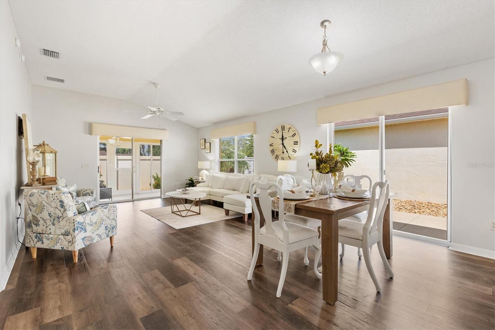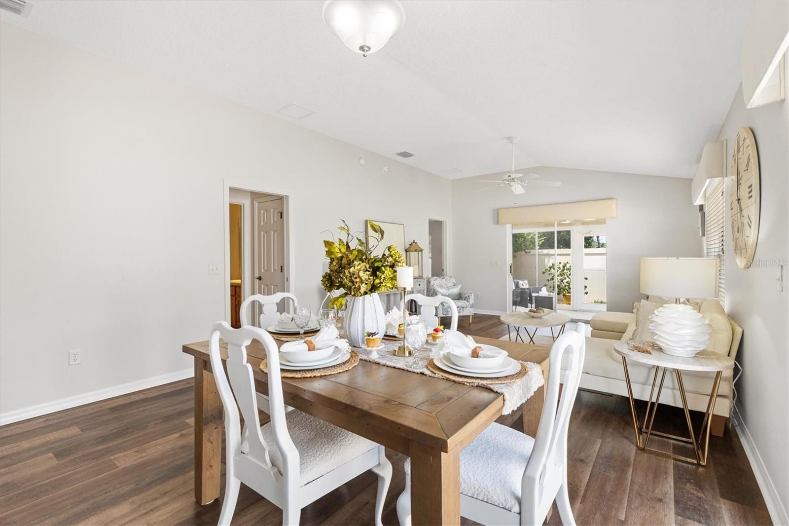 - Ceiling Fan(s), Living/Dining Room, Open Floorplan, Main Level Primary, Split Bedrooms, Vaulted Ceiling(s), Walk-In Closet(s)