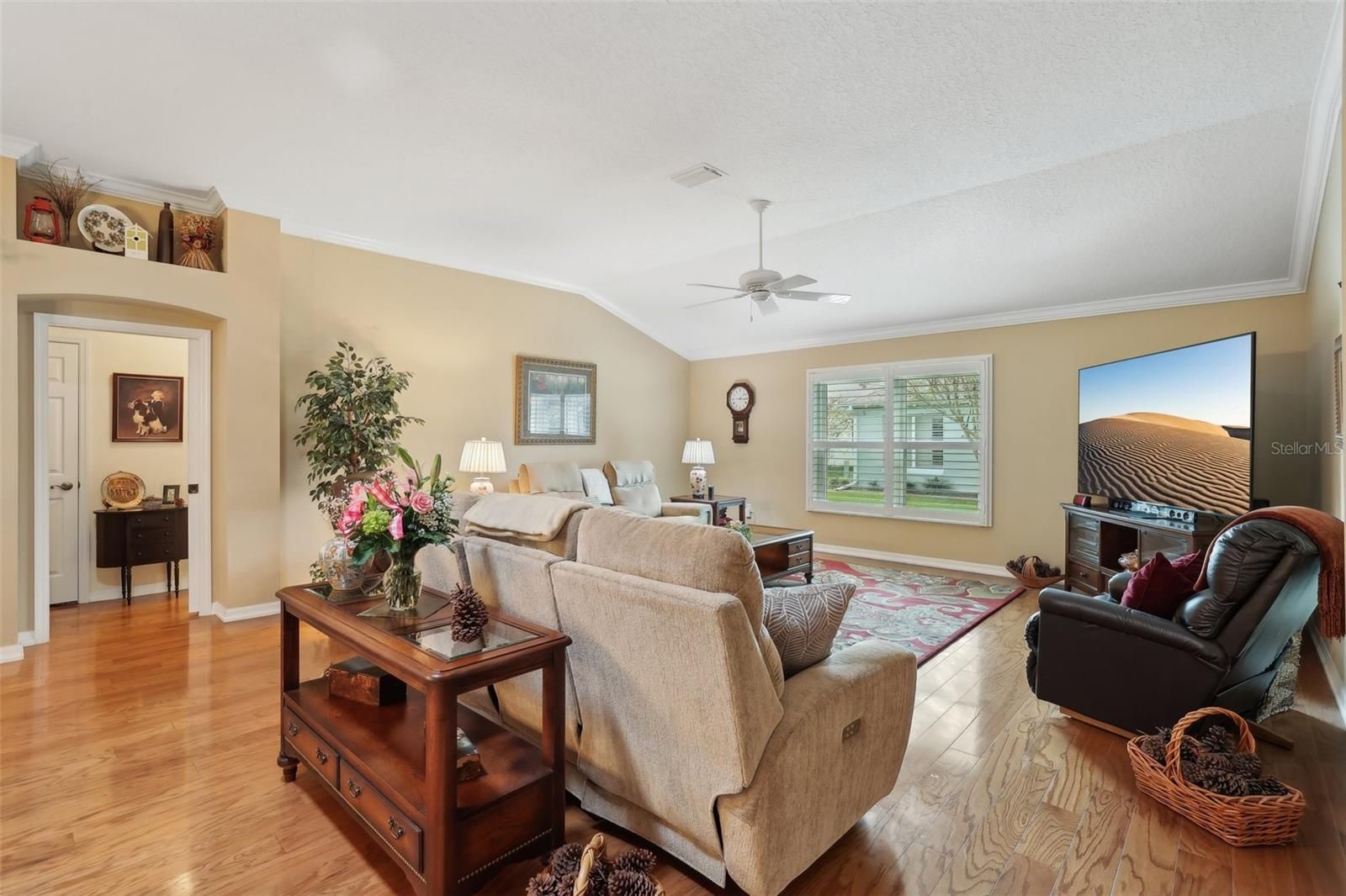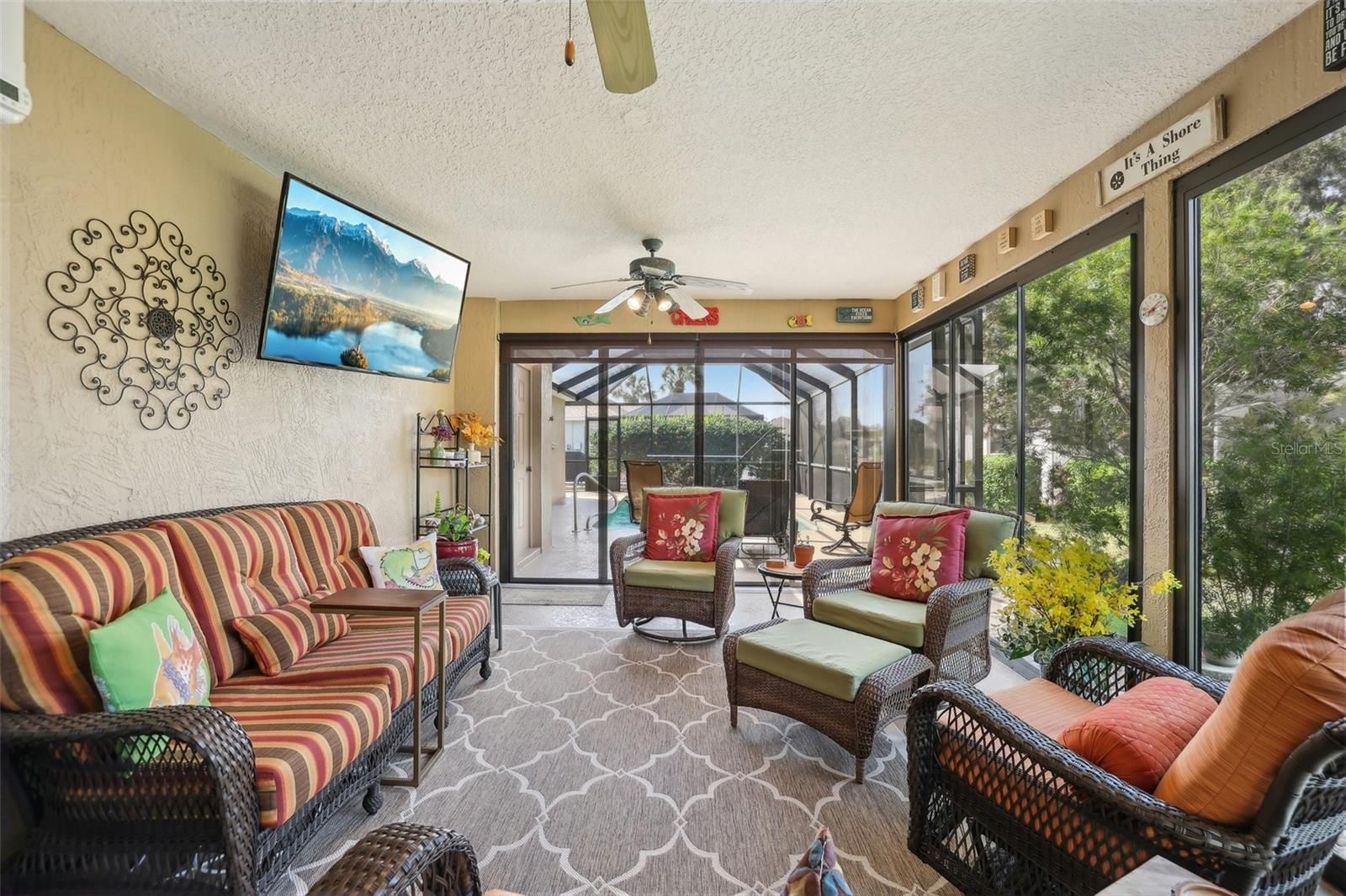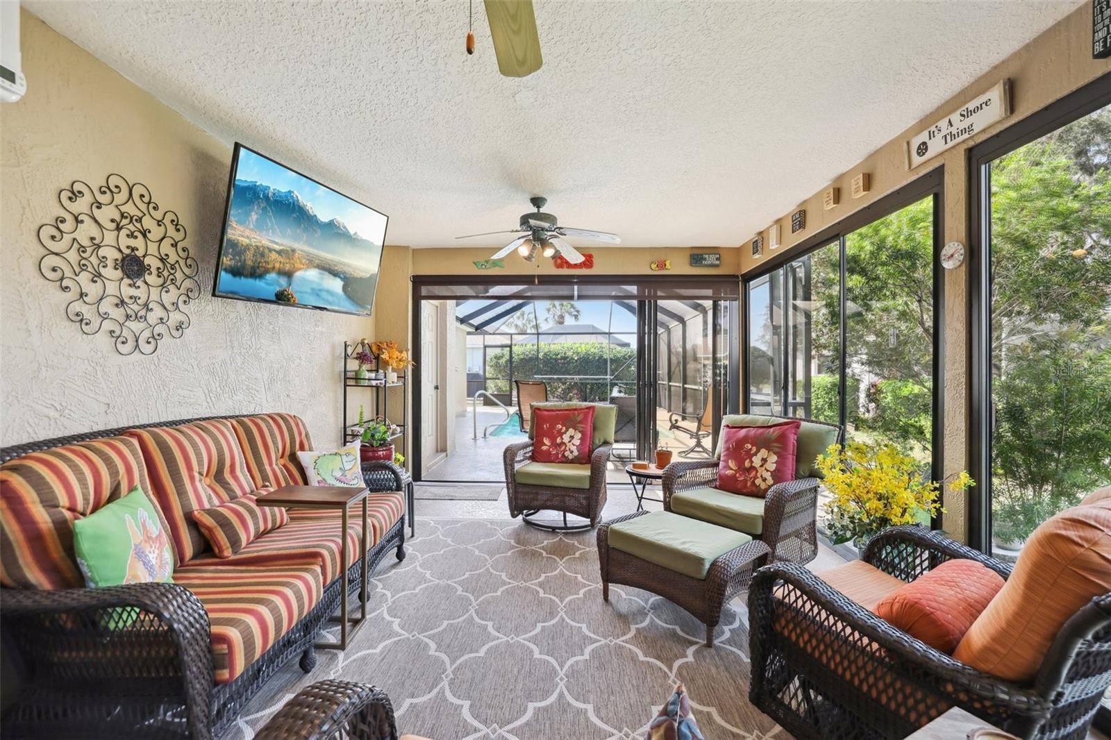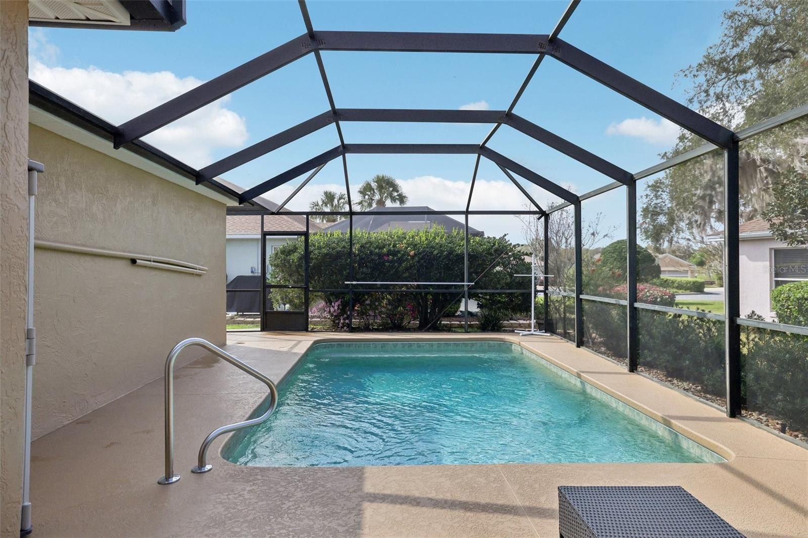 No Bond. Yes, Back on the Market and a Lower Price. Sellers want it sold. Stunning Very Private Saltwater Pool Home in Tierra Del Sol. Welcome to your dream home in the highly sought-after Tierra Del Sol Country Club community—where The Villages lifestyle truly begins! Nestled on the quiet and charming street of España, this beautifully upgraded saltwater pool home is designed to exceed expectations. Inside, you’ll find a spacious, expanded floor plan with thoughtful upgrades throughout. The kitchen, completely renovated in 2023-2024, features soft-close drawers and cabinets, granite countertops, a large island, and an eat-in area that outshines the rest. The HVAC system was replaced in 2023, and an additional unit was installed in 2020 for the Florida Room, ensuring year-round comfort. New appliances were added in 2023, along with new windows in 2018 that enhance insulation and natural light. The roof was replaced in 2018, and the water heater in 2020, providing peace of mind for years to come. Elegant plantation shutters, installed in 2019, complement the crown molding found in every room. The master bath, updated in 2015, features luxurious finishes, while the radiant barrier in the attic adds to the home’s energy efficiency. Designed for entertaining and relaxation, the Florida Room/Enclosed Lanai opens seamlessly to the pool deck, creating the perfect indoor-outdoor living experience. A dedicated pool bath adds convenience, and the insulated garage doors help keep the home cool year-round. This home is truly a must-see! Schedule your private showing today—or request a FaceTime tour if you’re out of the area—and experience all this beautiful property provides.