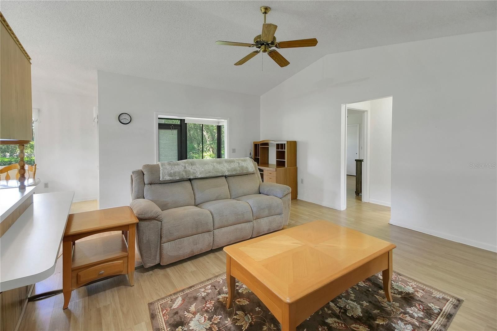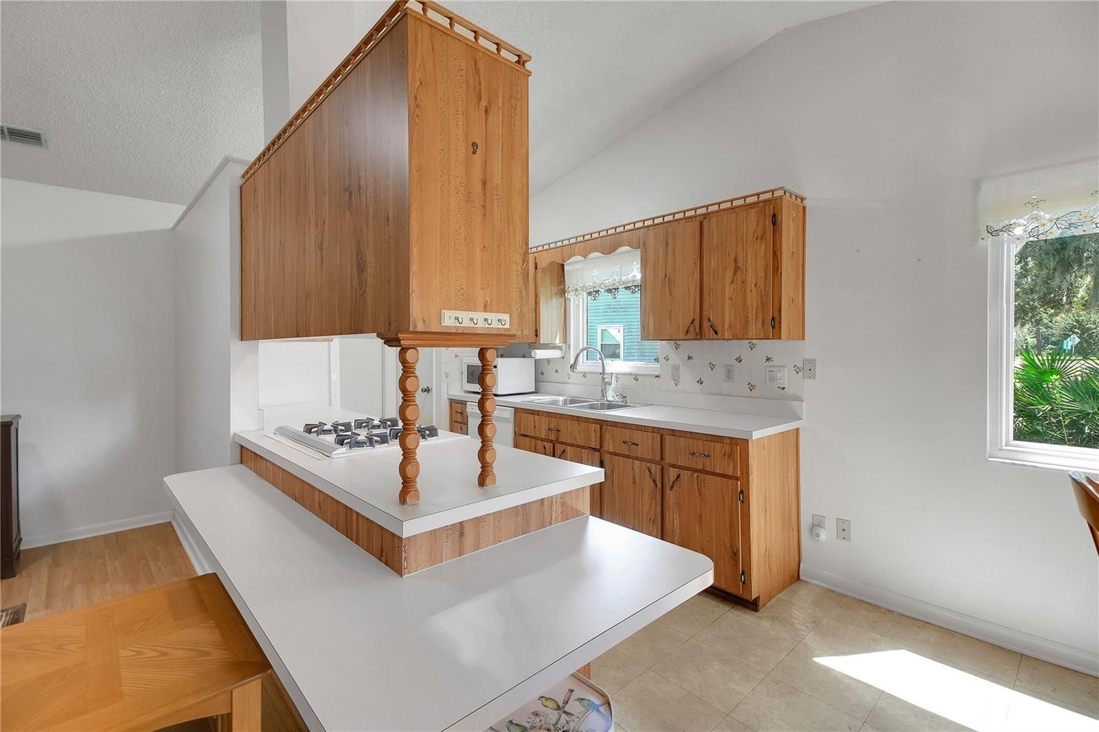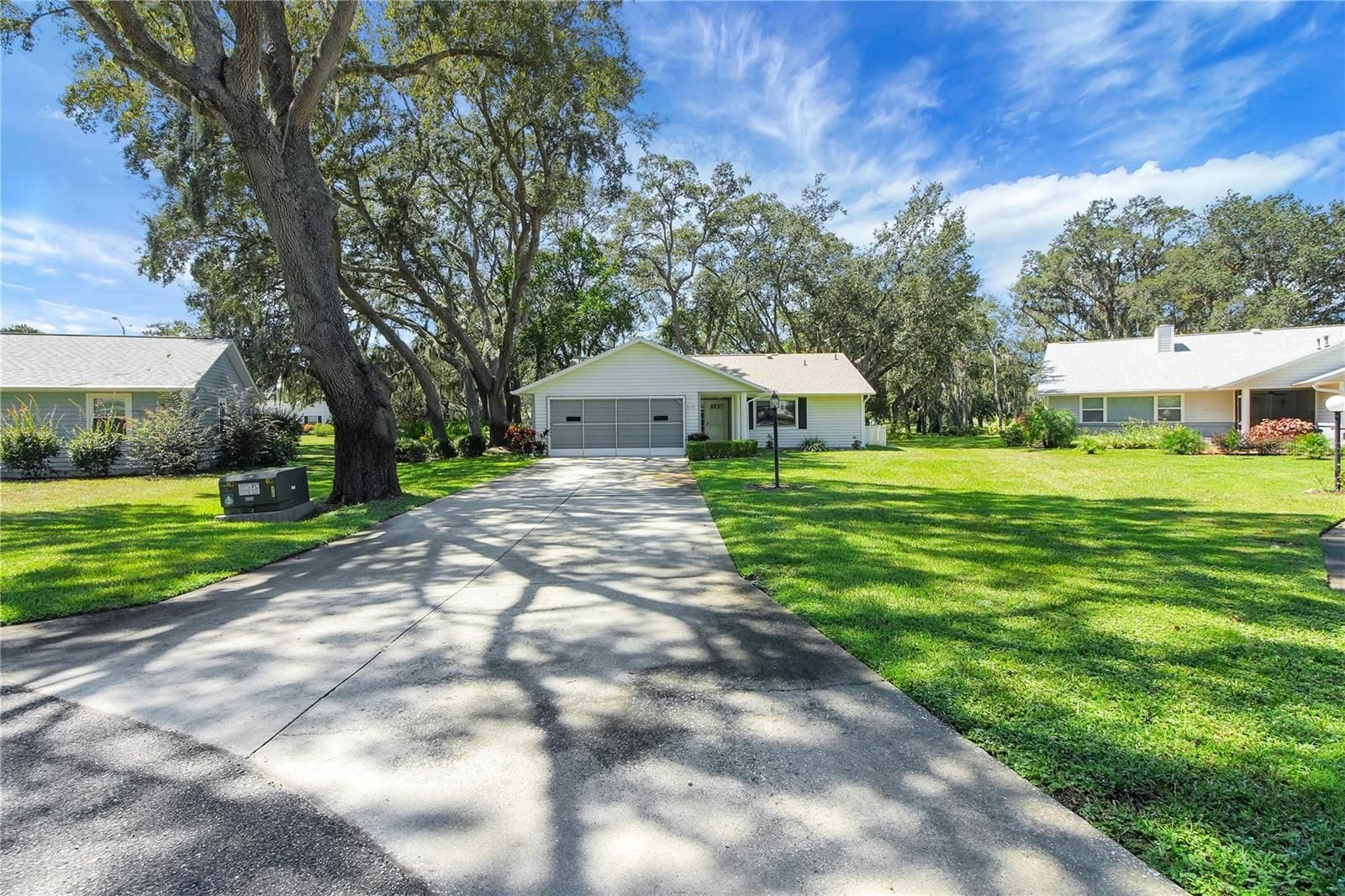 NEW IMPROVED PRICE -SCOTTISH HIGHLANDS HARD TO FIND WITH 2 CAR GARAGE WITH LONG DRIVEWAY ON DEAD END ROAD (NO THRU TRAFFIC) ON A BEAUTIFUL TREED LOT – WELL FOR IRRIGATION – NEWER ROOF IN 2022 –NEWER DOUBLE PANE WINDOWS – SCREENED GARAGE DOOR – NO CARPET --- FURNITURE STAYS (not tv’s) - Front covered porch with tiled flooring 19x6. Open floorplan with large living room with cathedral ceilings opening up to kitchen and dining room. Kitchen has breakfast bar, gas stove, closet pantry and loads of cabinetry. Primary bedroom has two closets, laminate flooring, ceiling fan. Primary bath has walk-in shower, toilet and tiled floors. Guest bedroom in front of home has 6x6 walk-in closet. Guest bath has tile floors with walk-in tub. Florida room has glass windows and tiled floors. Garage is 21x19 with pegboard, pull down stairs, utility tub, side service entry and screened garage doors. Solar tubes in living room and guest bathroom. Gutters. Lovely lot located on a cul-de-sac with nice backyard with beautiful trees. Make this move in condition home your next address and live in a great community which offers loads of activities to choose from. Indoor Olympic pool, spa, outdoor pool, recreation buildings, tennis, pickleball, bocci ball. Storage for your rv/boat available for extra fee. Great convenient location close to shopping, restaurants, medical and worship facilities Make appointment today to view!