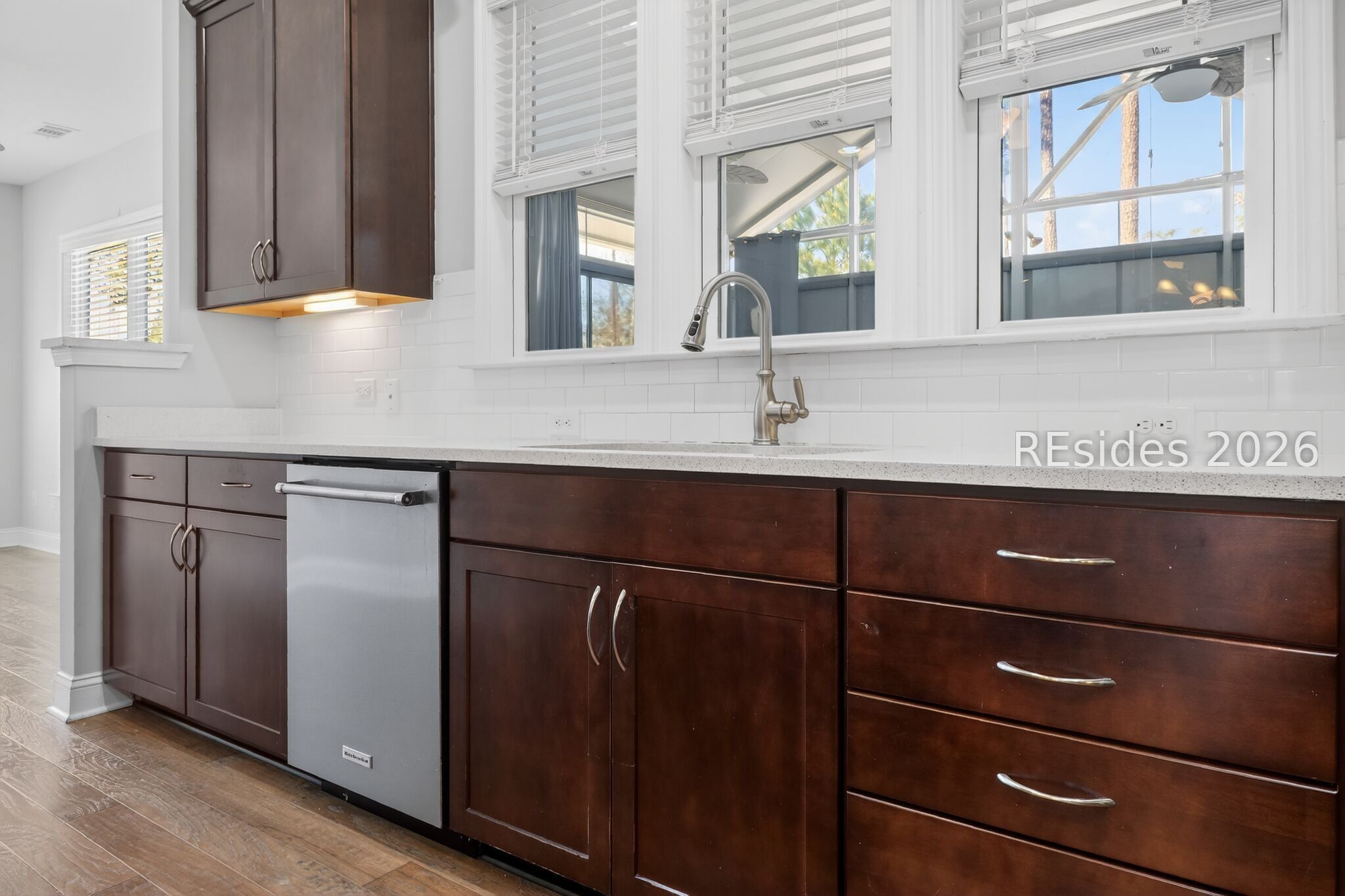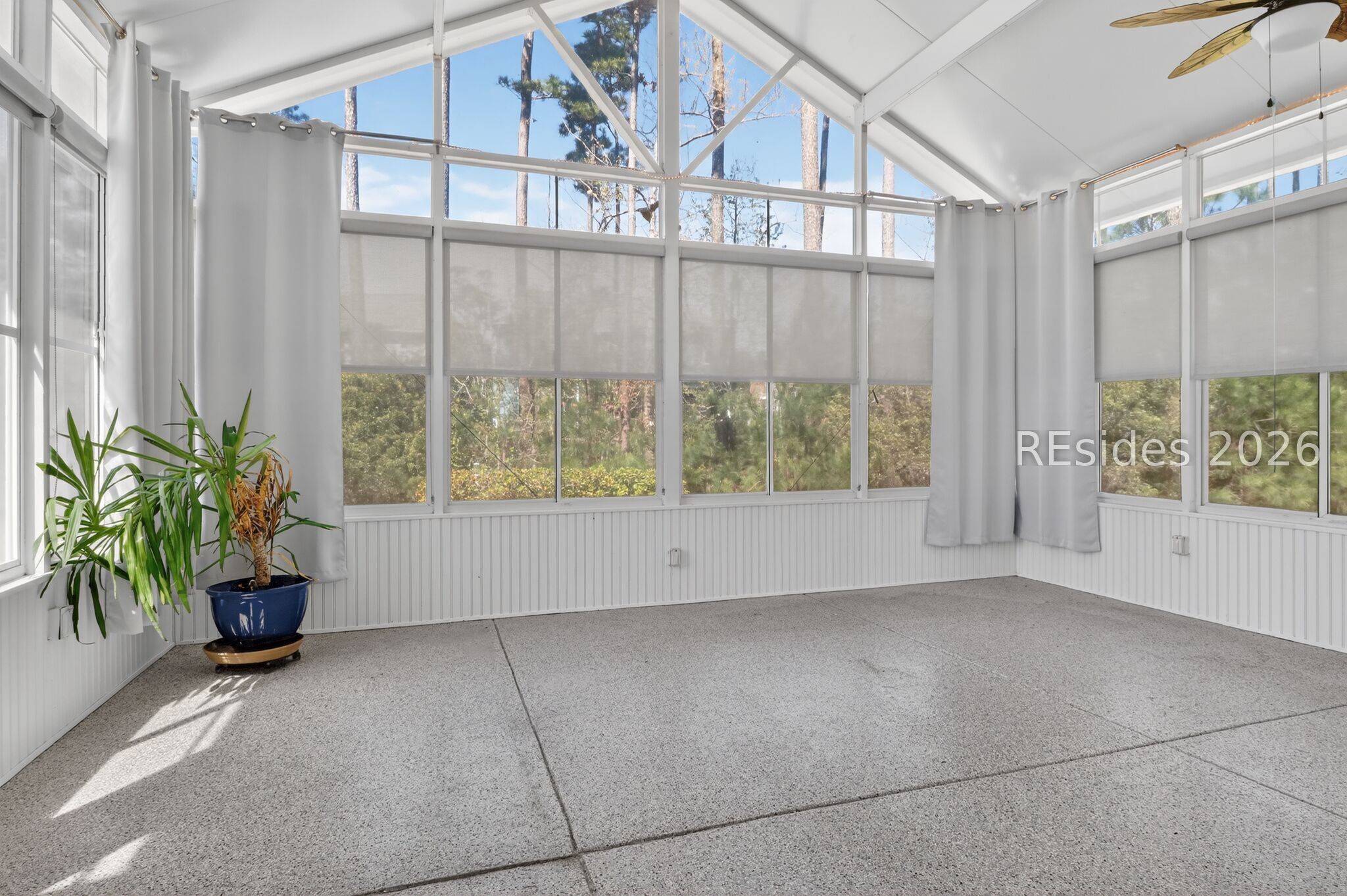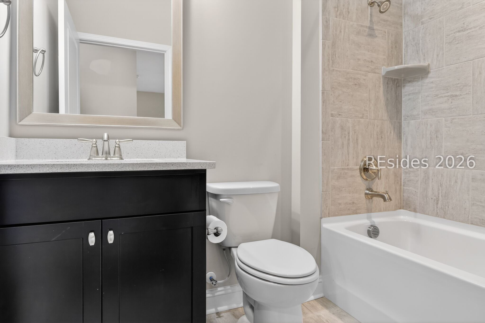 Welcome to 610 Northlake Village Court, a beautifully upgraded home tucked away on a private cul-de-sac in the heart of Sun City Hilton Head-one of the Lowcountry's premier active adult communities. This thoughtfully designed 2-bedroom, 2-bath home with a den and Carolina room blends comfort, quality, and lifestyle. Inside, you'll find hand-scraped hardwood floors throughout the main living areas and bedrooms, complemented by upgraded tile in the bathrooms and laundry room. The open-concept layout is enhanced by custom touches including tray ceilings in the owner's suite, upgraded baseboards, ceiling fans throughout, and abundant natural light. The kitchen is both functional and elegant, featuring upgraded quartz countertops, stainless steel gas range, new stainless refrigerator, newer microwave, tiled backsplash, soft-close drawers and cabinetry, slide-out hood vent, and enhanced pantry shelving. The owner's suite offers a relaxing retreat with natural stone flooring and shower walls in the bath. One of the standout features of this home is the incredible approximately 18x24 enclosed lanai-heated and cooled with vinyl windows, UV protection, epoxy flooring, and a storm door that opens to a patio overlooking a peaceful lagoon and wooded backdrop. This space is perfect for year-round enjoyment, entertaining, or simply relaxing in a private, scenic setting. Additional upgrades include a 4-foot garage extension with attic storage, utility sink, solar screen, and extra outlets; cement fiber composite siding; tech shield radiant barrier for energy efficiency; tankless water heater; and upgraded laundry cabinetry. Beyond the home, Sun City Hilton Head offers an unmatched lifestyle with world-class amenities including championship golf courses, resort-style pools, fitness centers, tennis and pickleball courts, walking trails, clubs, social events, and more-all just a short drive to Hilton Head Island beaches, dining, and shopping. This is more than a home-it's a lifestyle. Don't miss the opportunity to experience Lowcountry living at its finest.